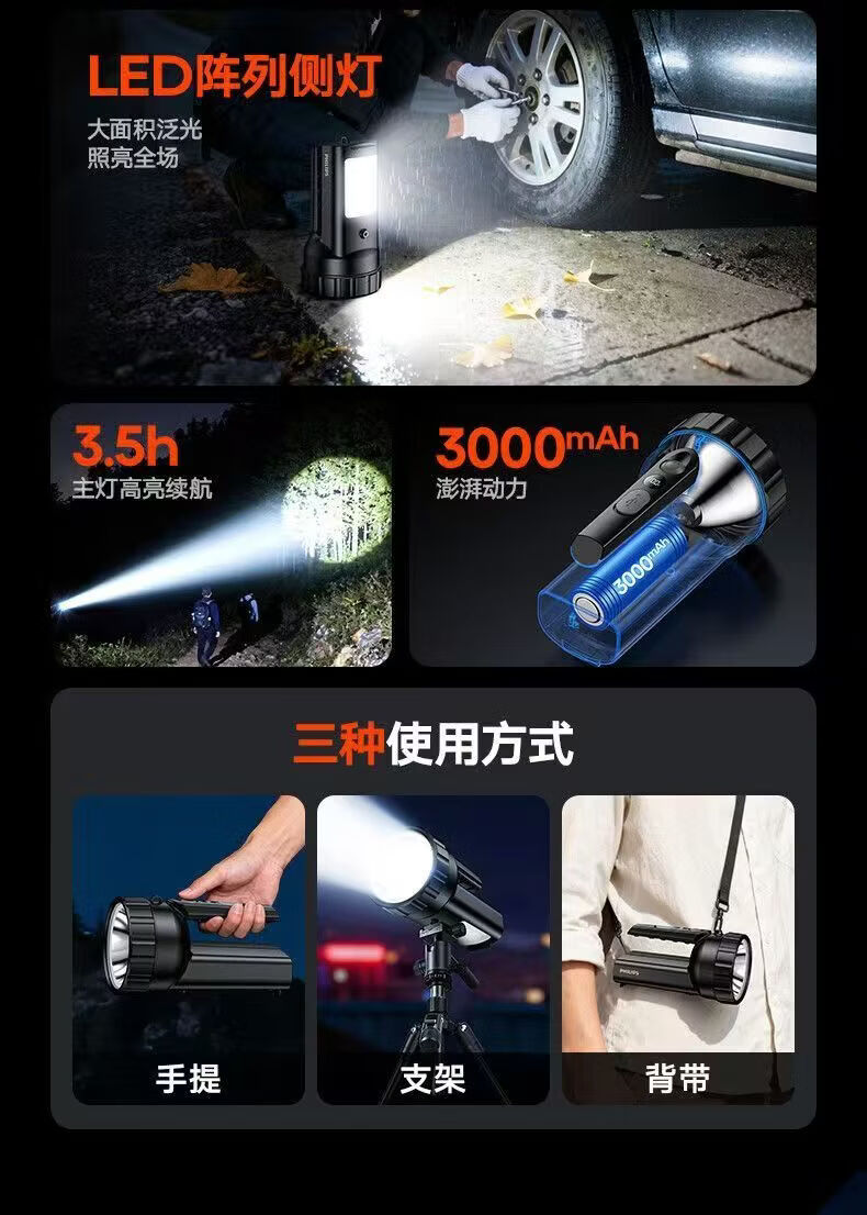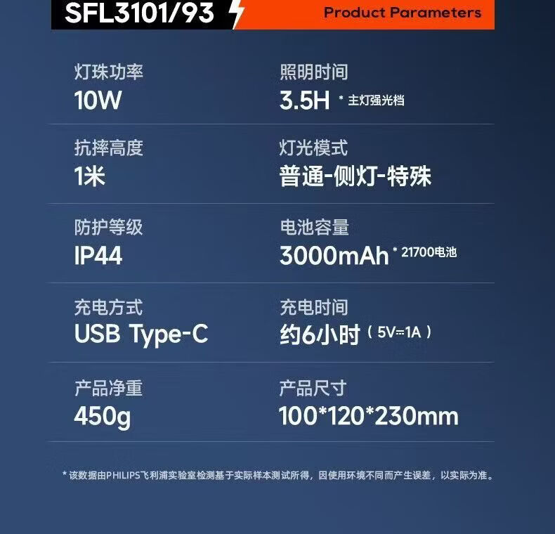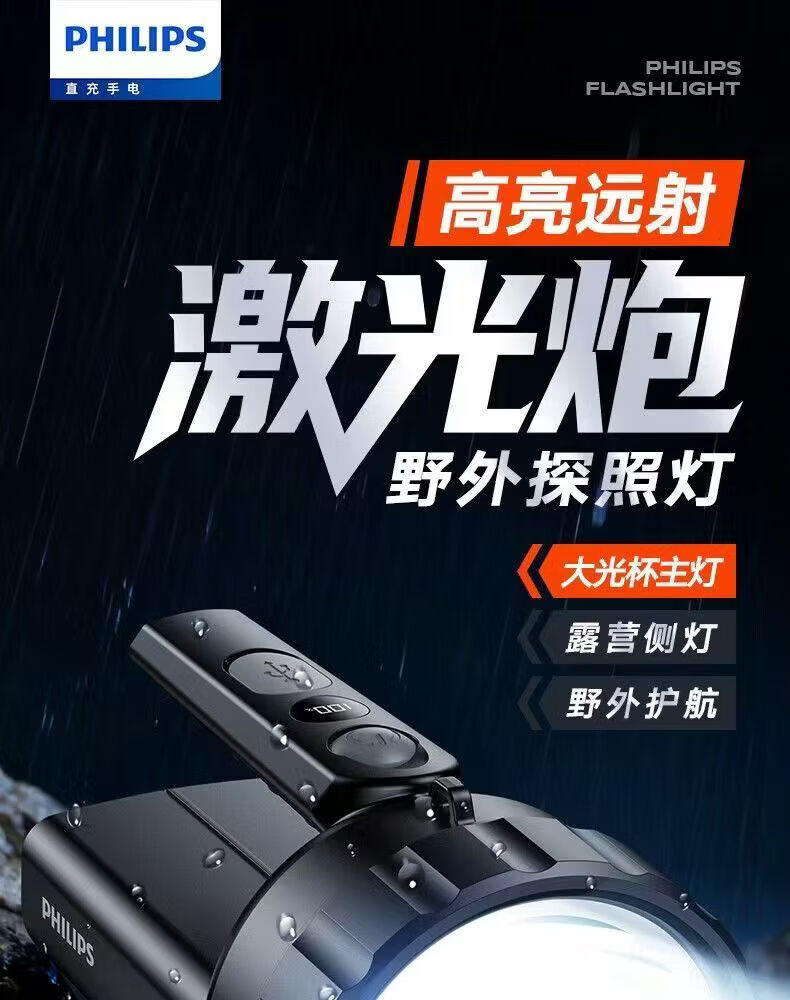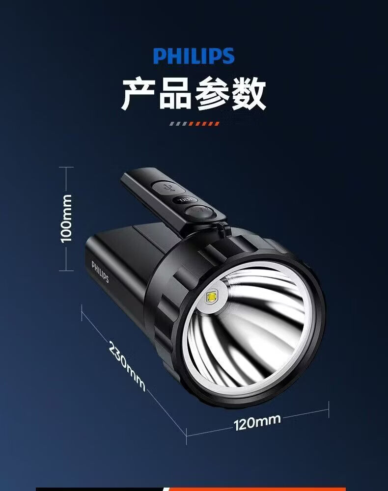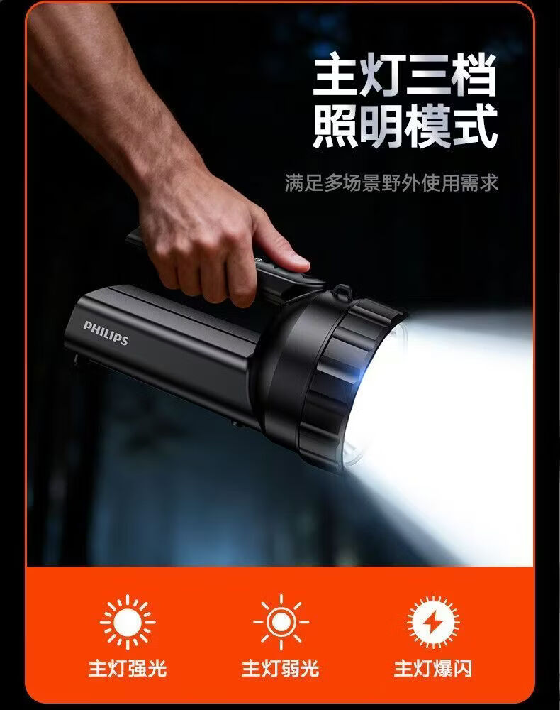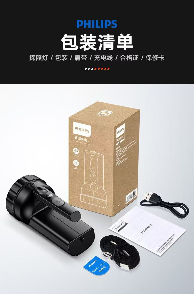 飞利浦(PHILIPS)强光探照灯远射大泛光长续航高亮户外巡逻应急灯SFL3101 10W/3000毫安/SFL3101