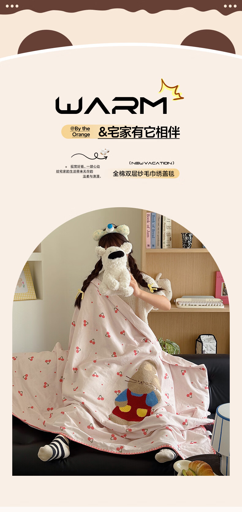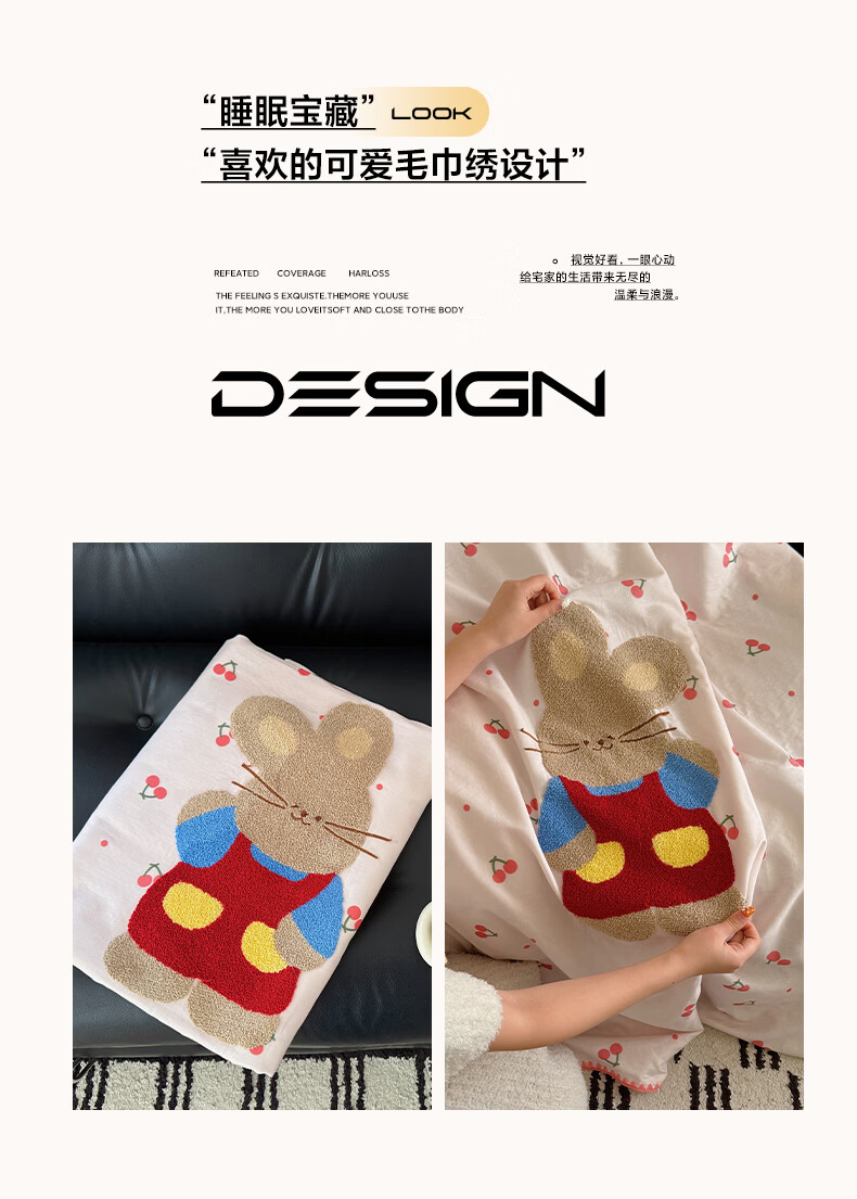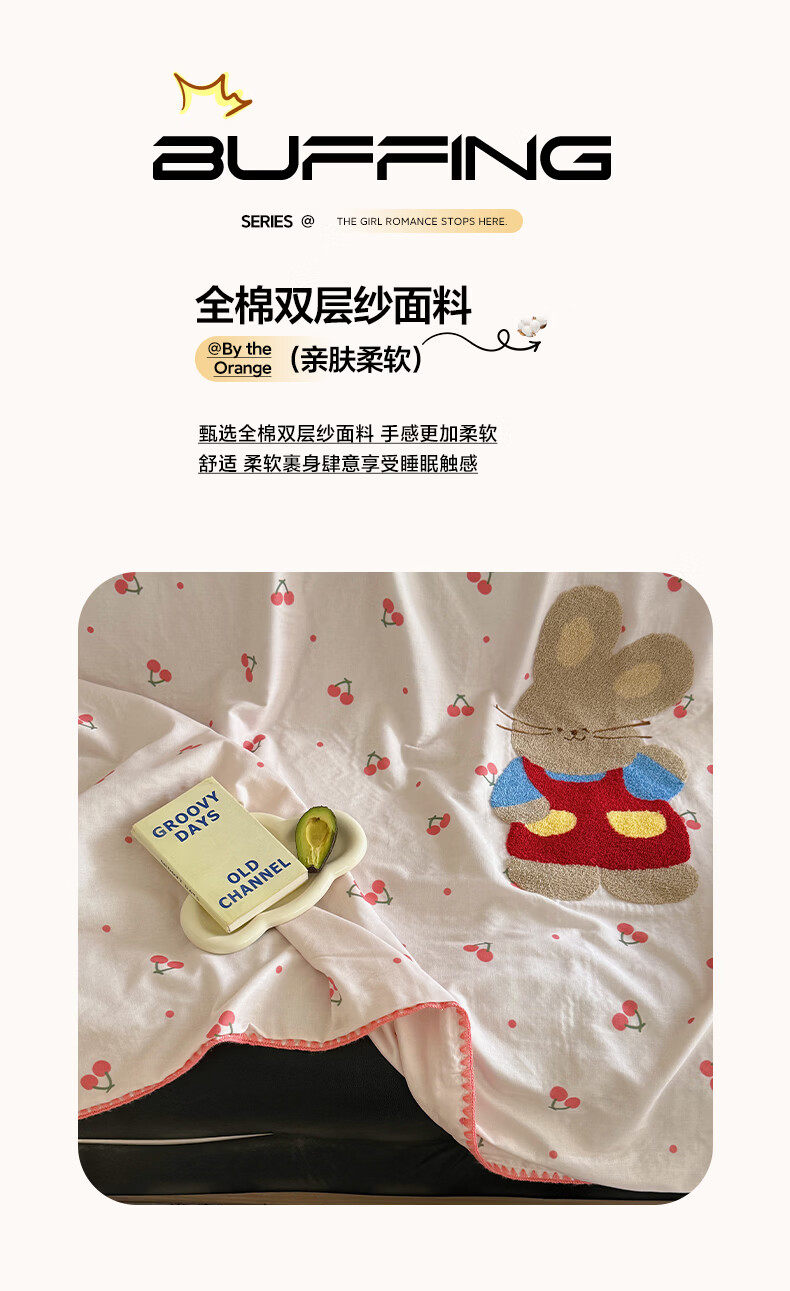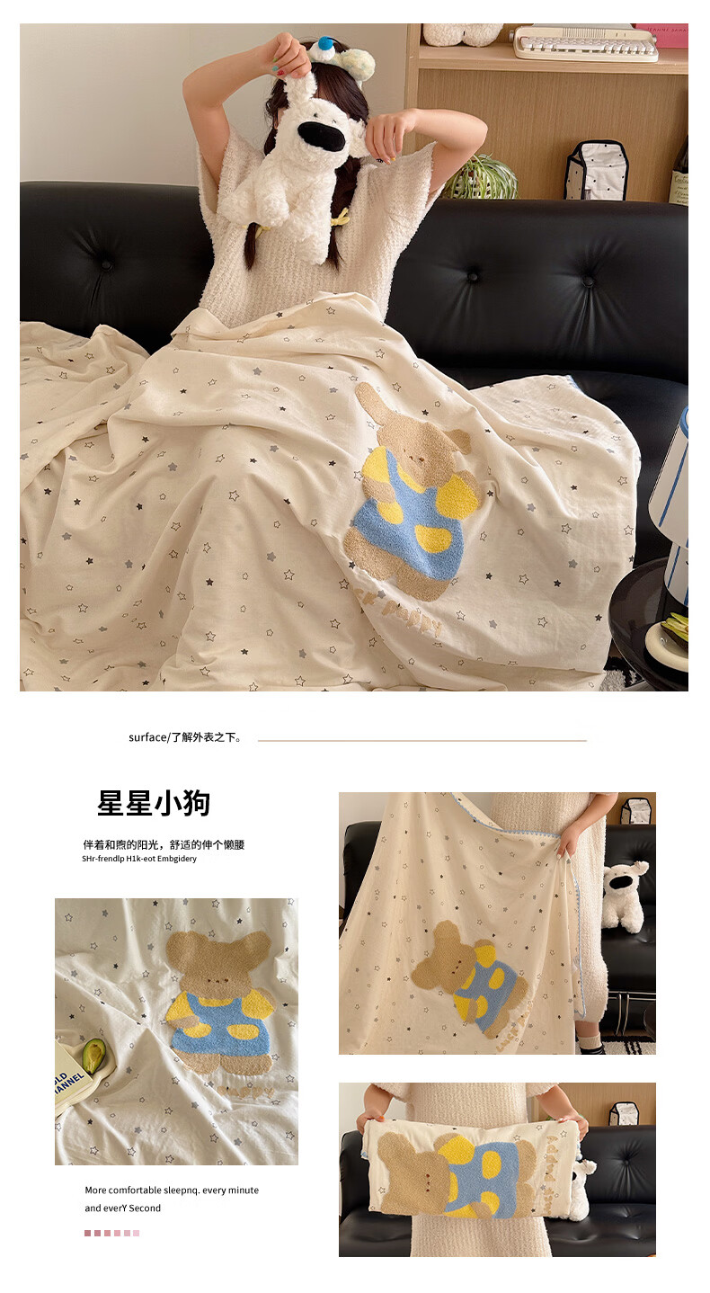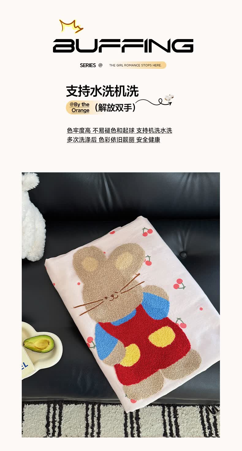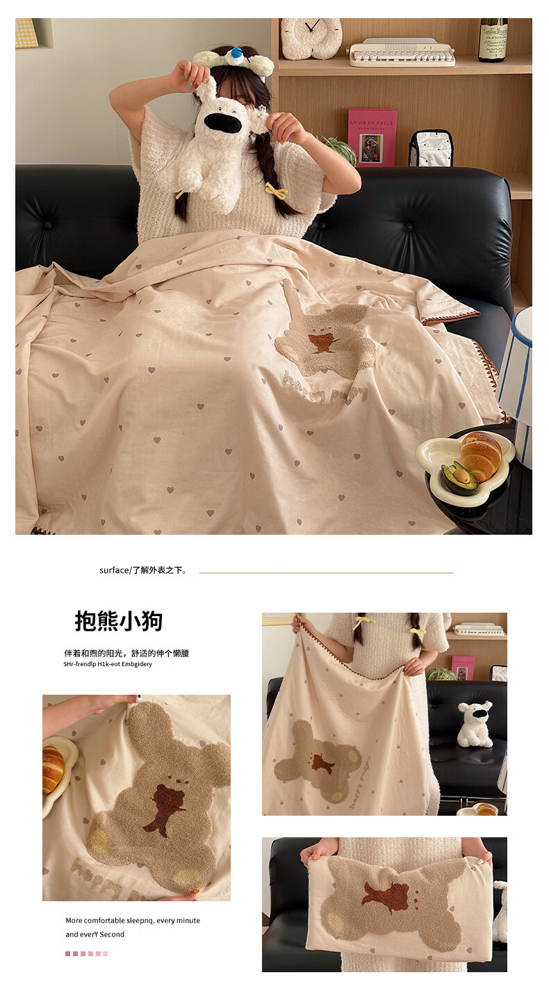 无印良品纯棉全棉毛巾绣毛毯被子办公室午睡毯午休毯子铺床单人双人盖毯 樱桃小兔【100%全棉 软糯亲肤 舒适透气】 100*150cm沙发毯