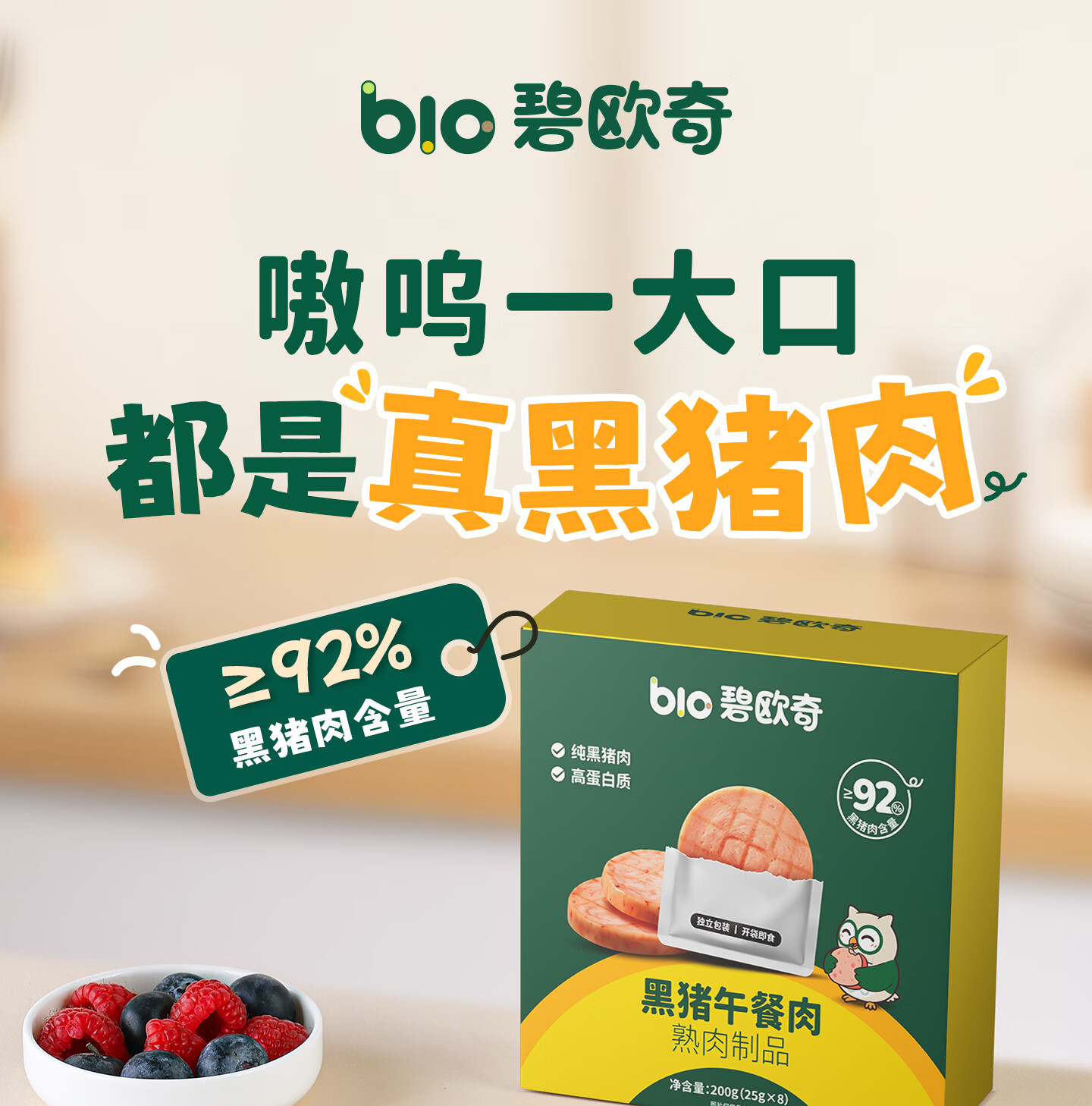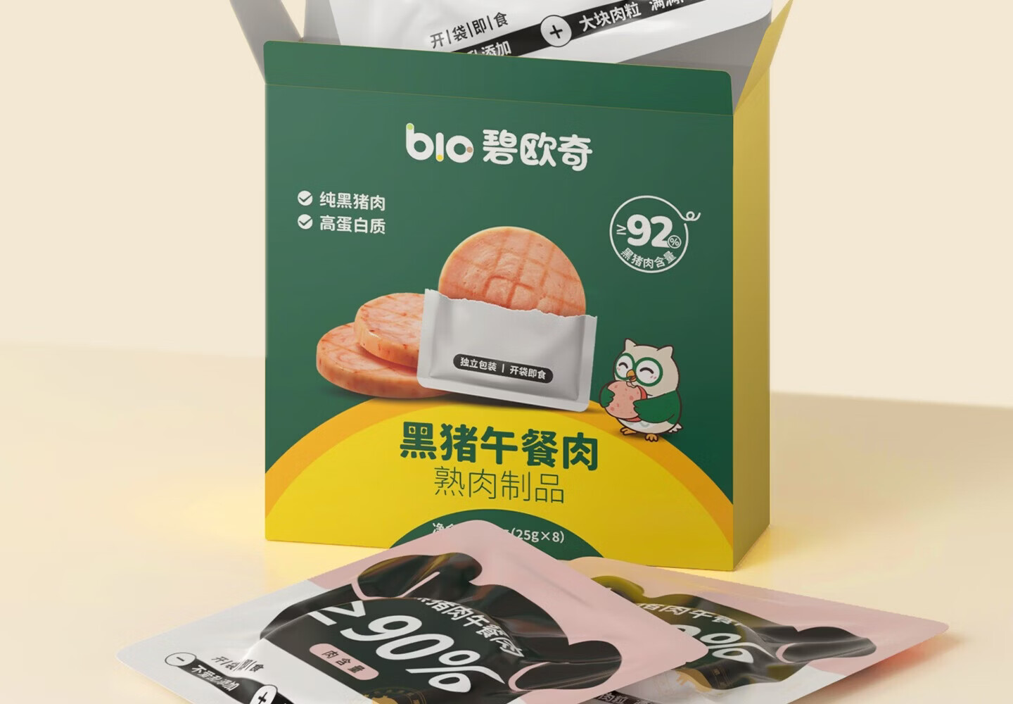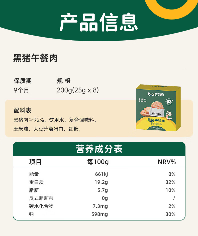 碧欧奇黑猪午餐肉儿童宝宝零食无添加香精宝宝辅食早餐肉肠零食搭配 【4盒32片】午餐肉200g*4
