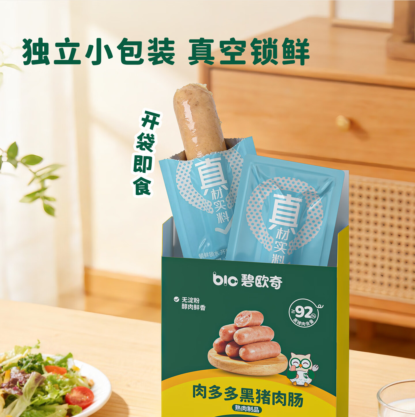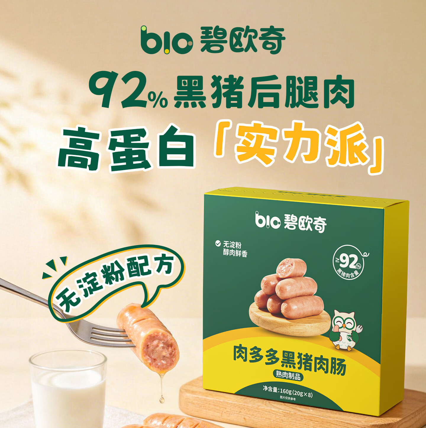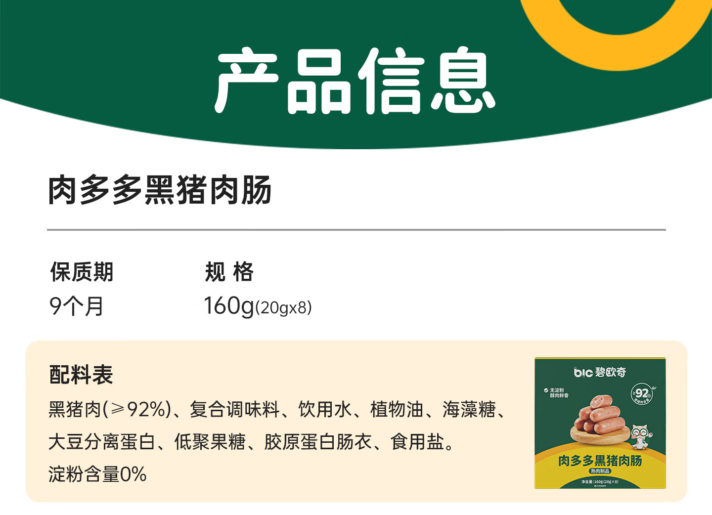 碧欧奇黑猪午餐肉儿童宝宝零食无添加香精宝宝辅食早餐肉肠零食搭配 【4盒32片】午餐肉200g*4