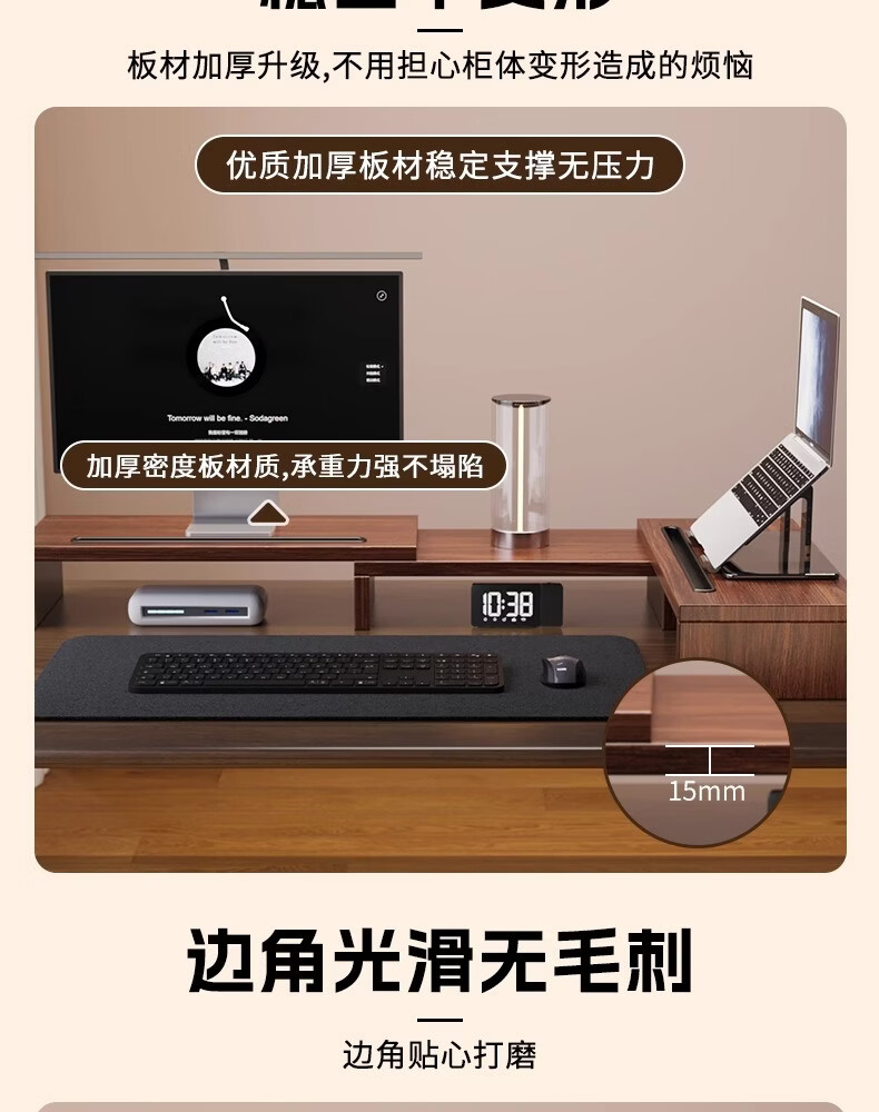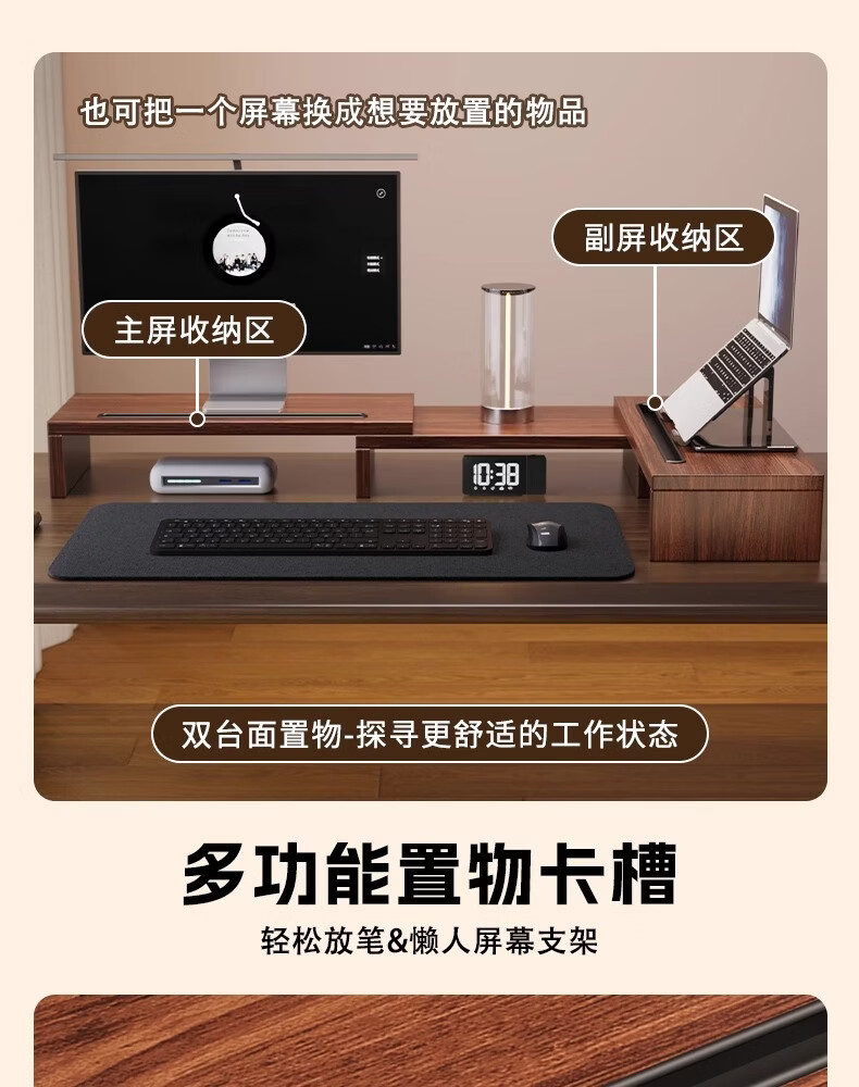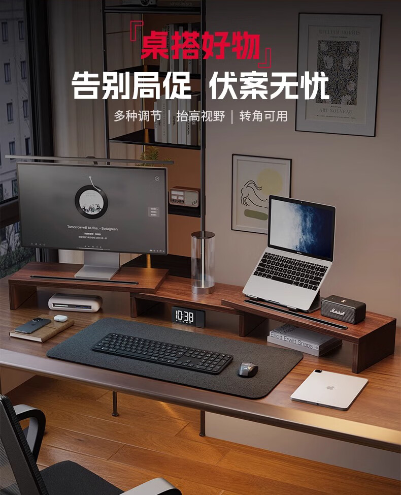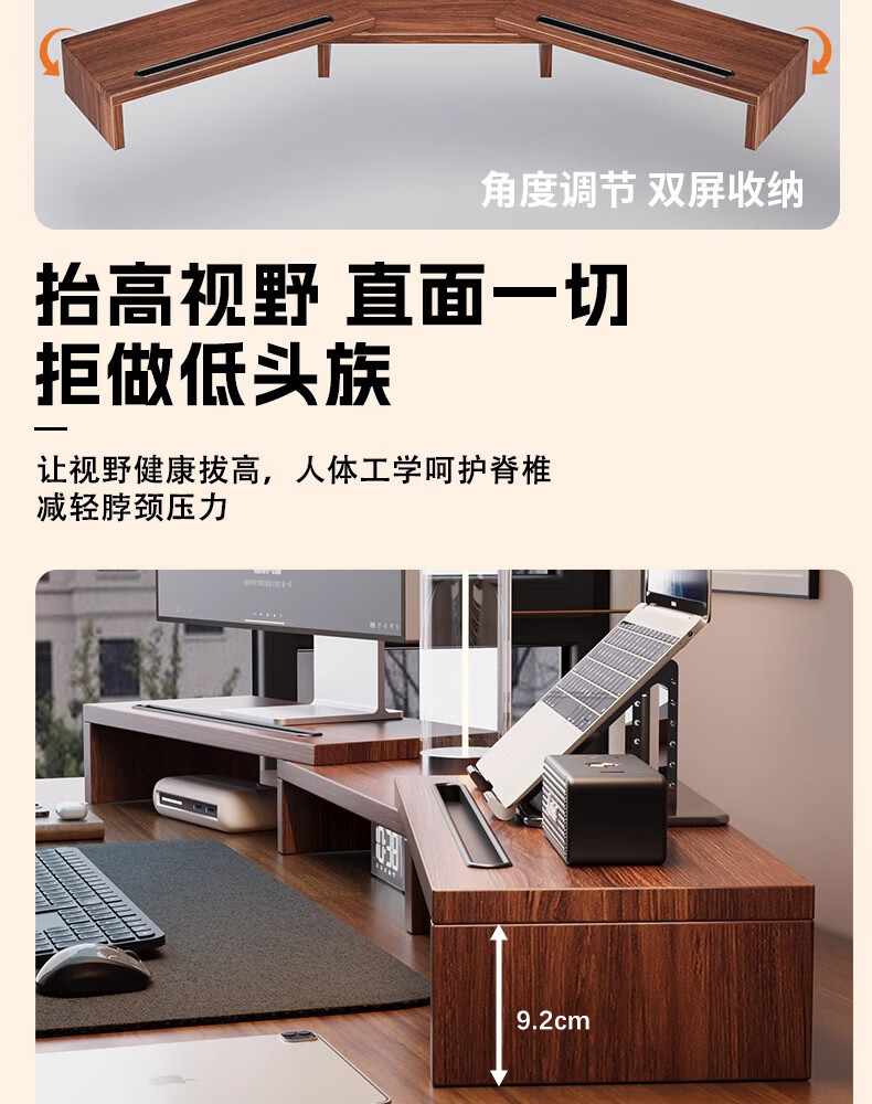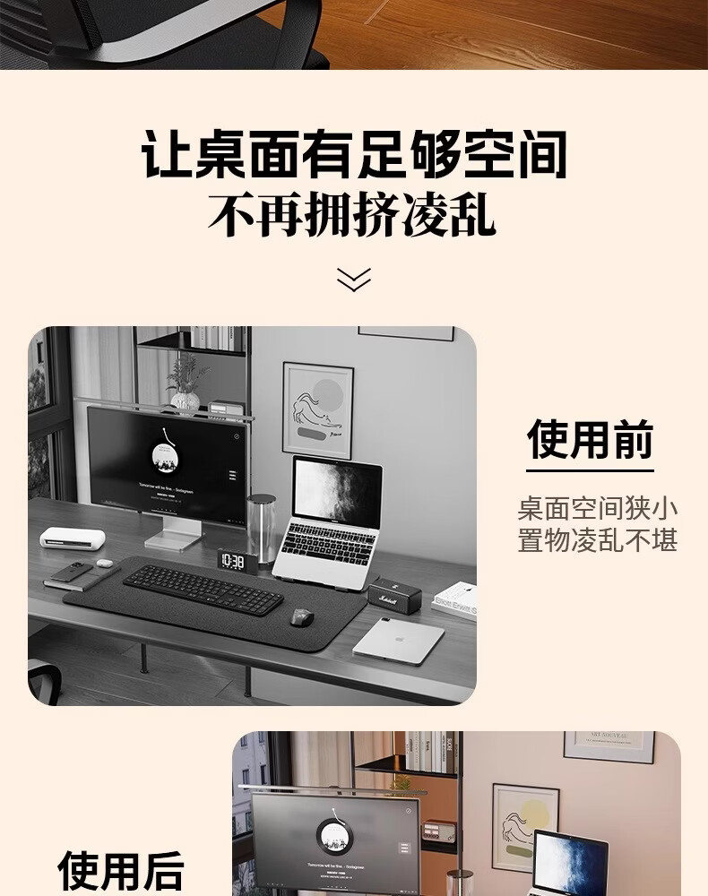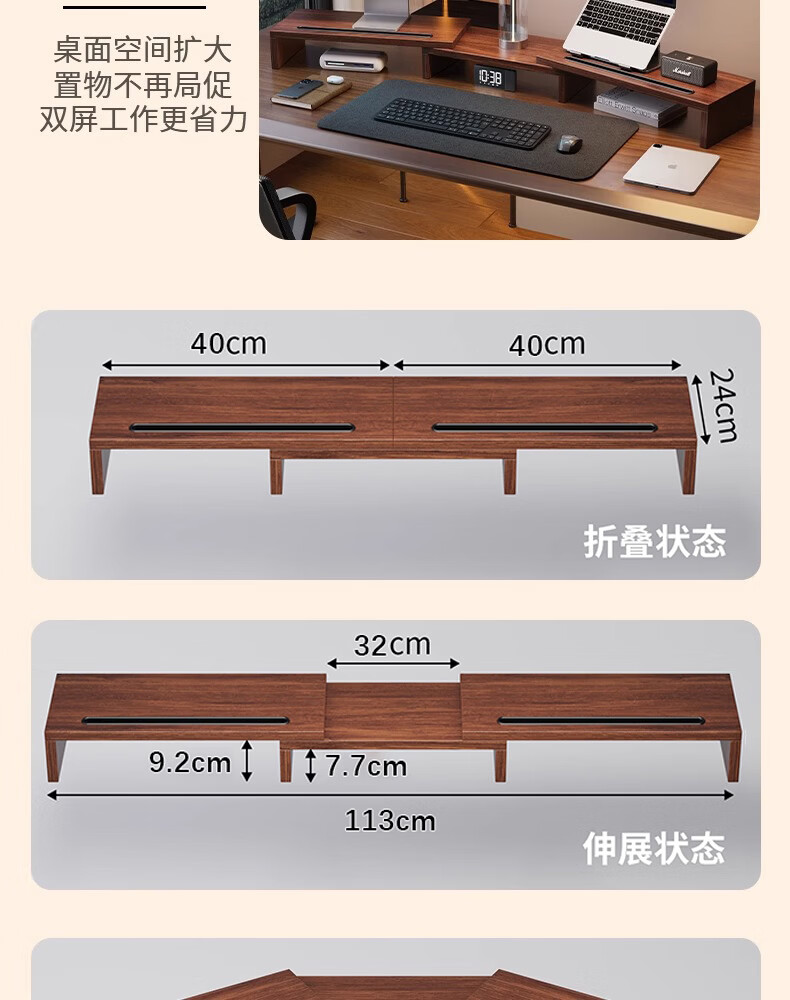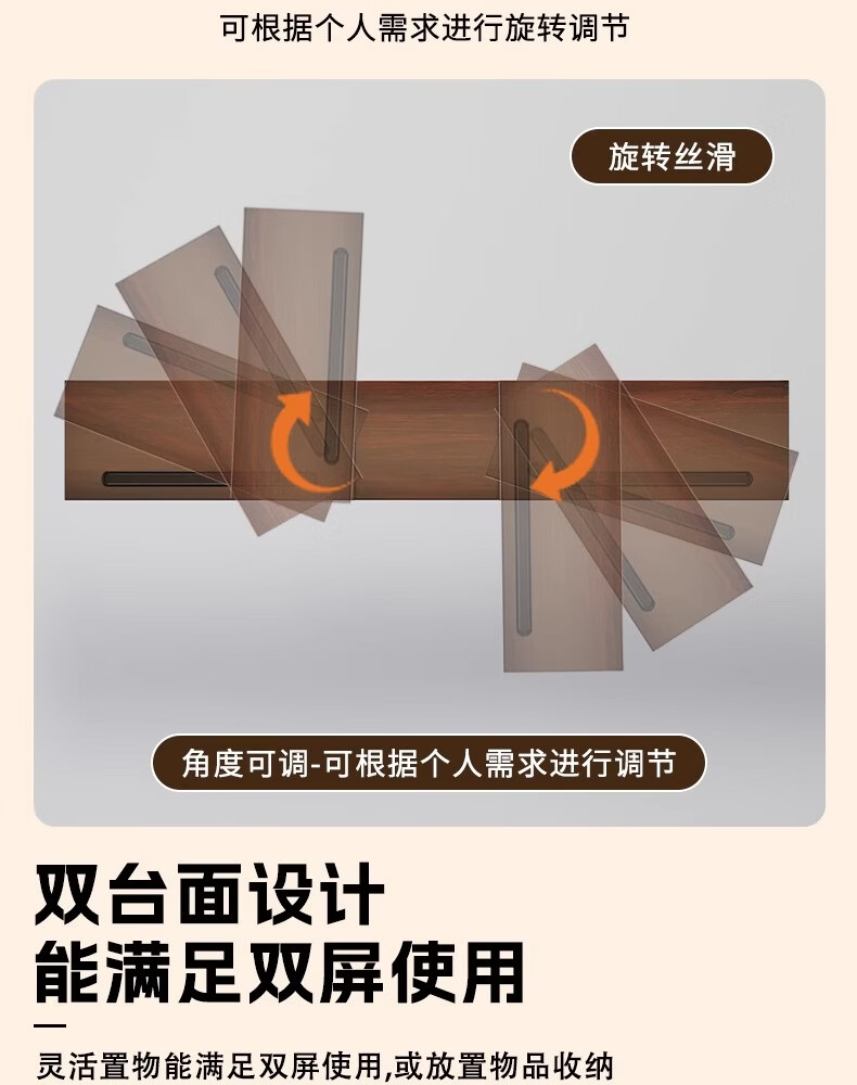 树浩电脑增高架可旋转伸缩双显示屏支撑架桌面置物架子工位笔记本托架 可伸缩-双边旋转-黑色(无卡槽)