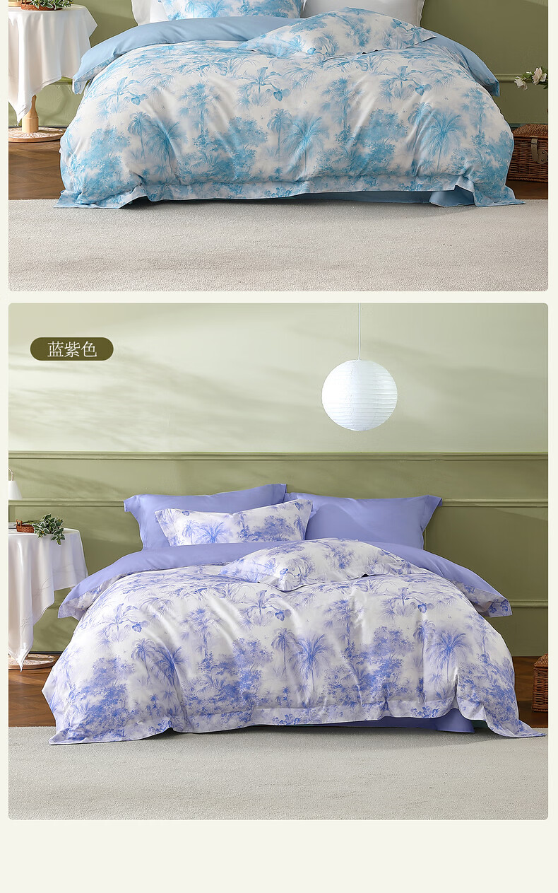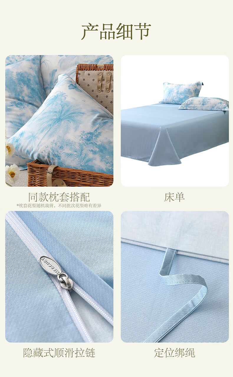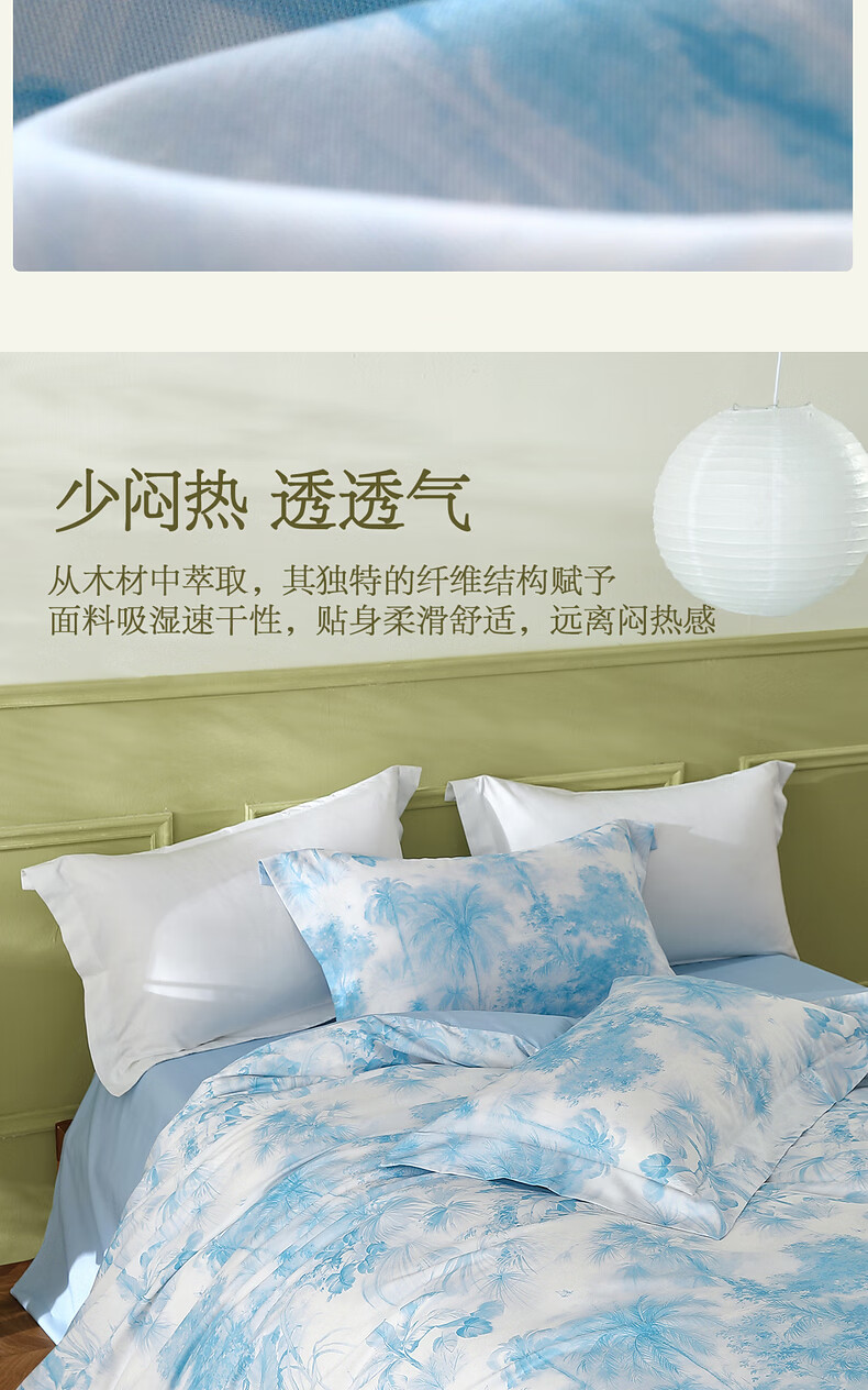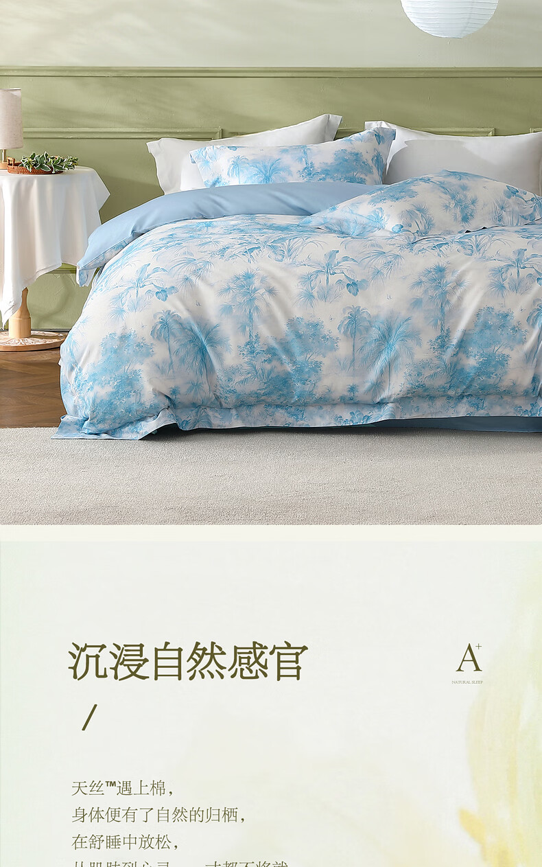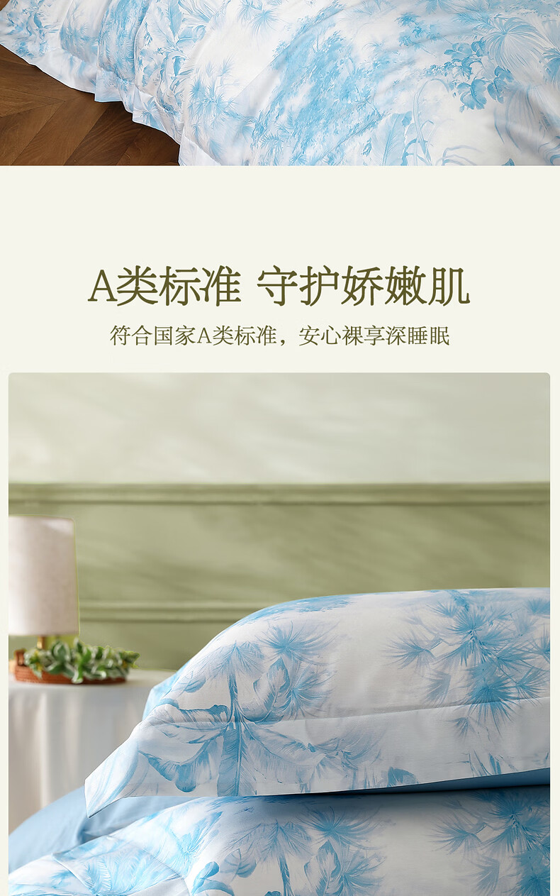 水星家纺四件套床上A类天丝™棉凉感莱赛尔被套枕套床单26年新款套件 花园·棕榈密林床单式(海蓝色) 床单款 (被套150*210cm)