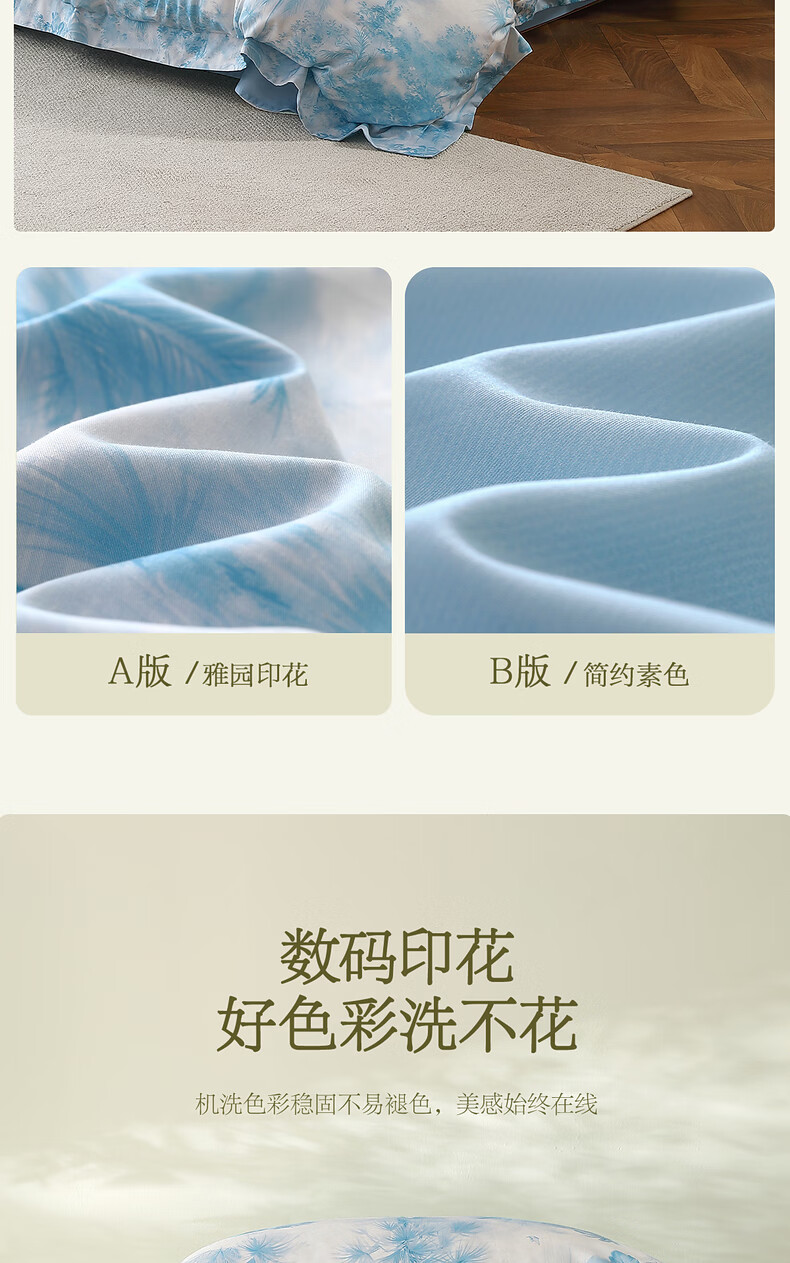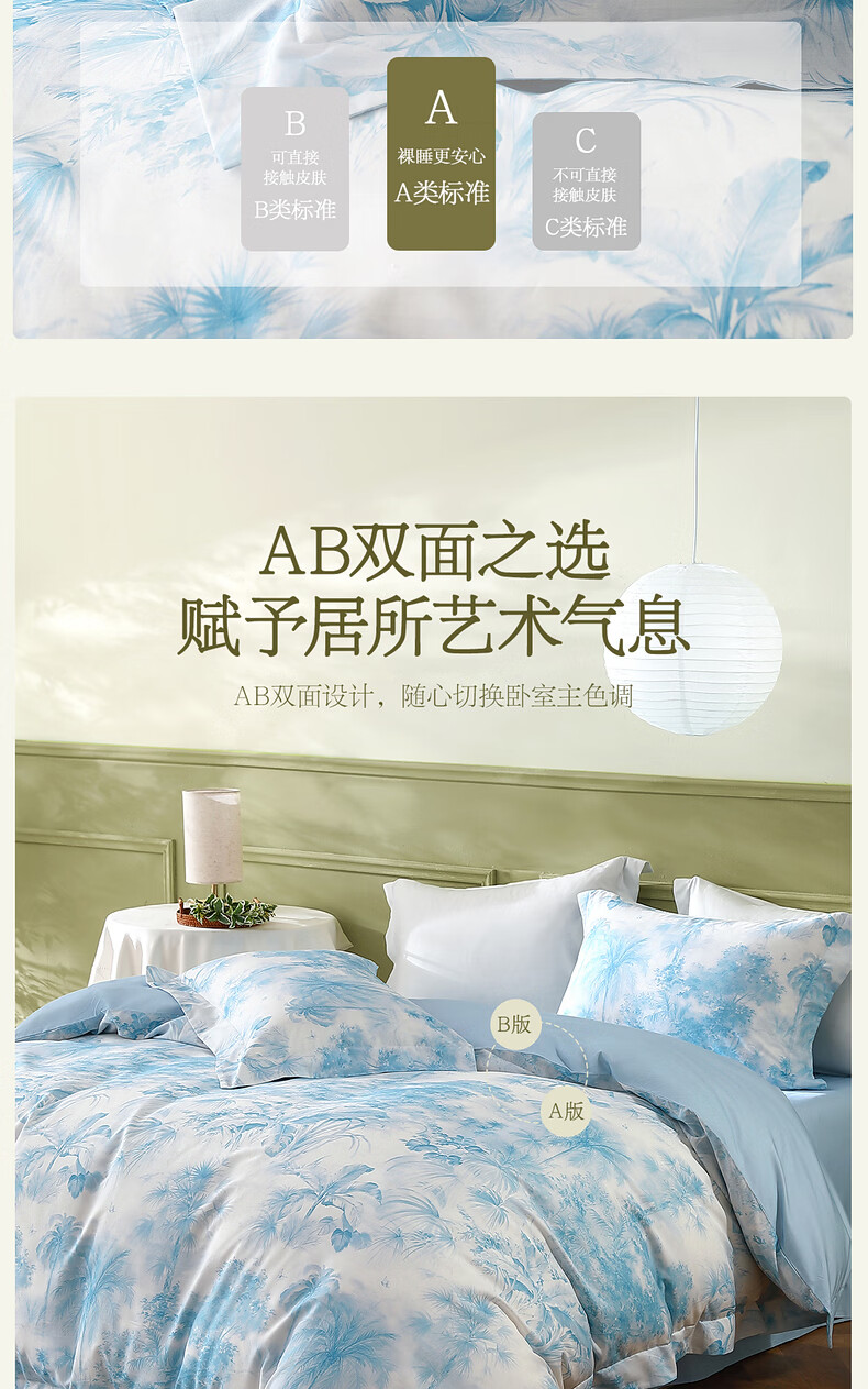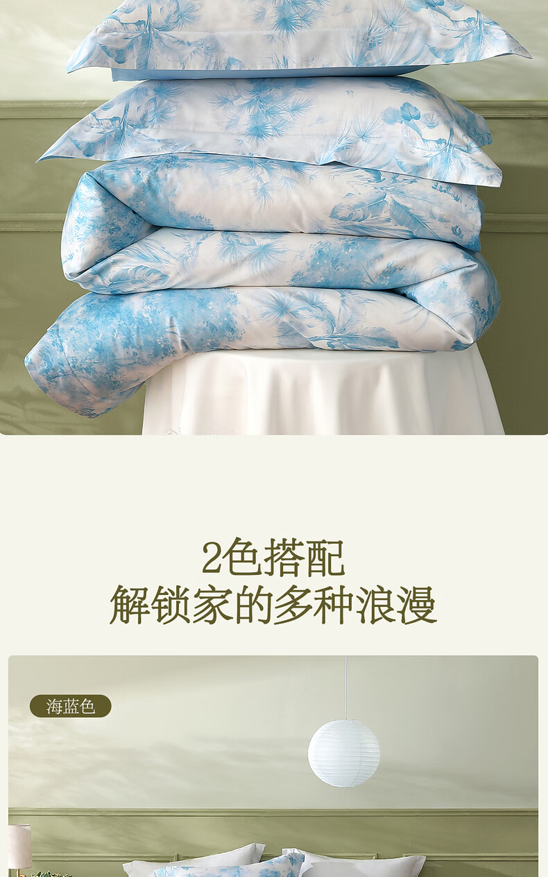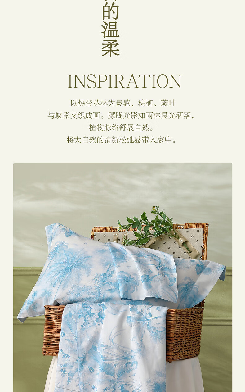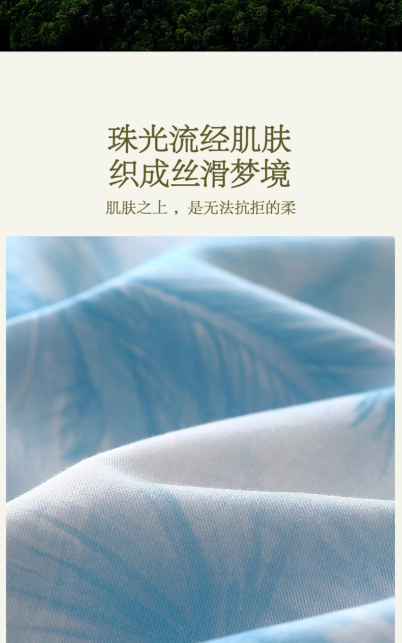 水星家纺四件套床上A类天丝™棉凉感莱赛尔被套枕套床单26年新款套件 花园·棕榈密林床单式(海蓝色) 床单款 (被套150*210cm)