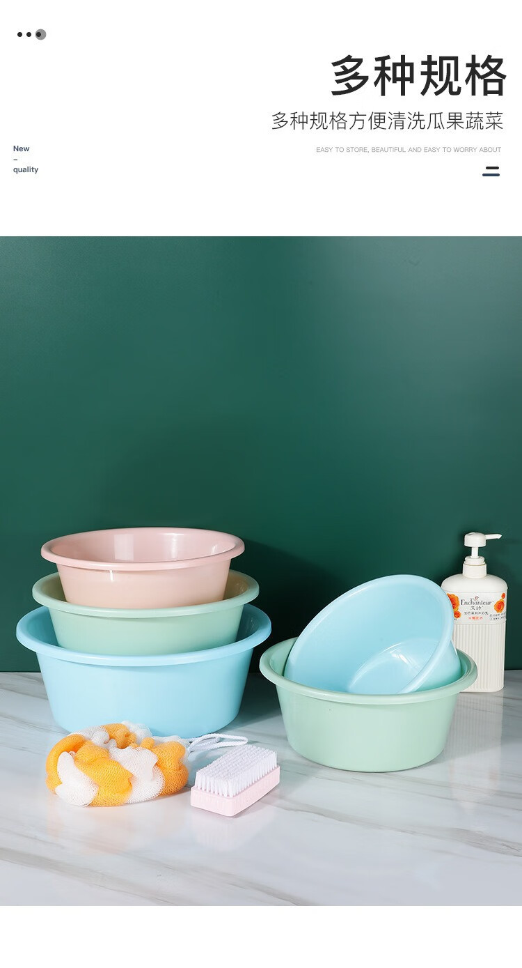 家用脸盆塑料盆子洗衣盆洗脸盆大号加厚学生宿舍洗衣服盆洗脚盆 脸盆 蓝色小号1个(22cm)