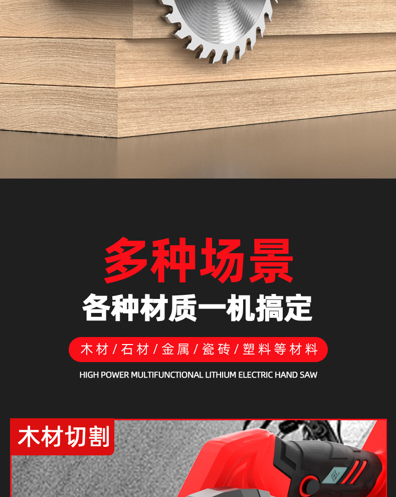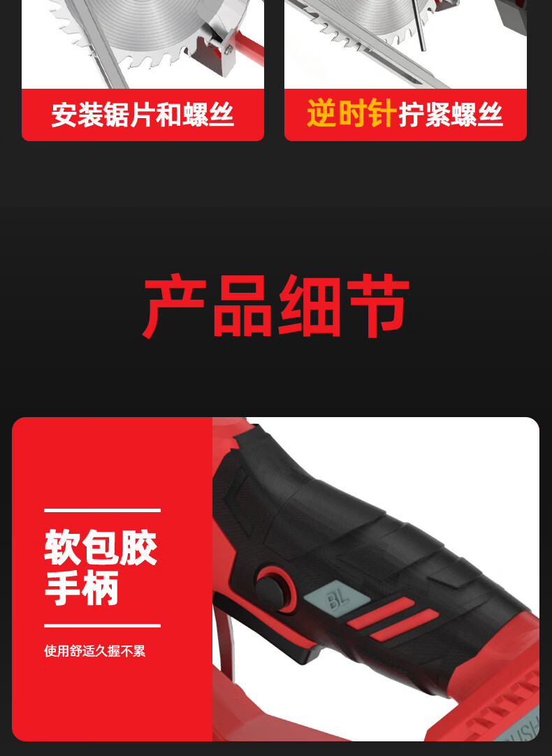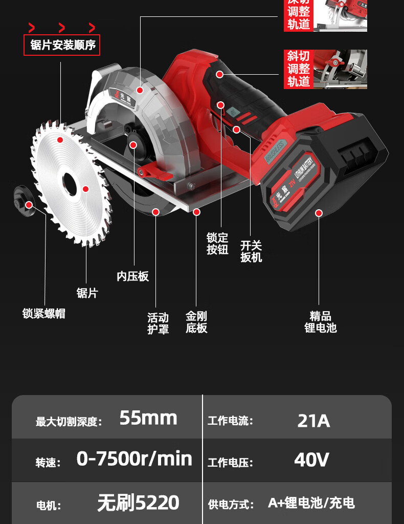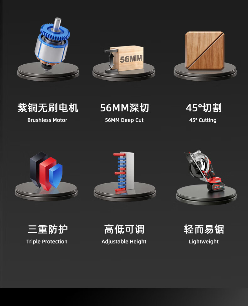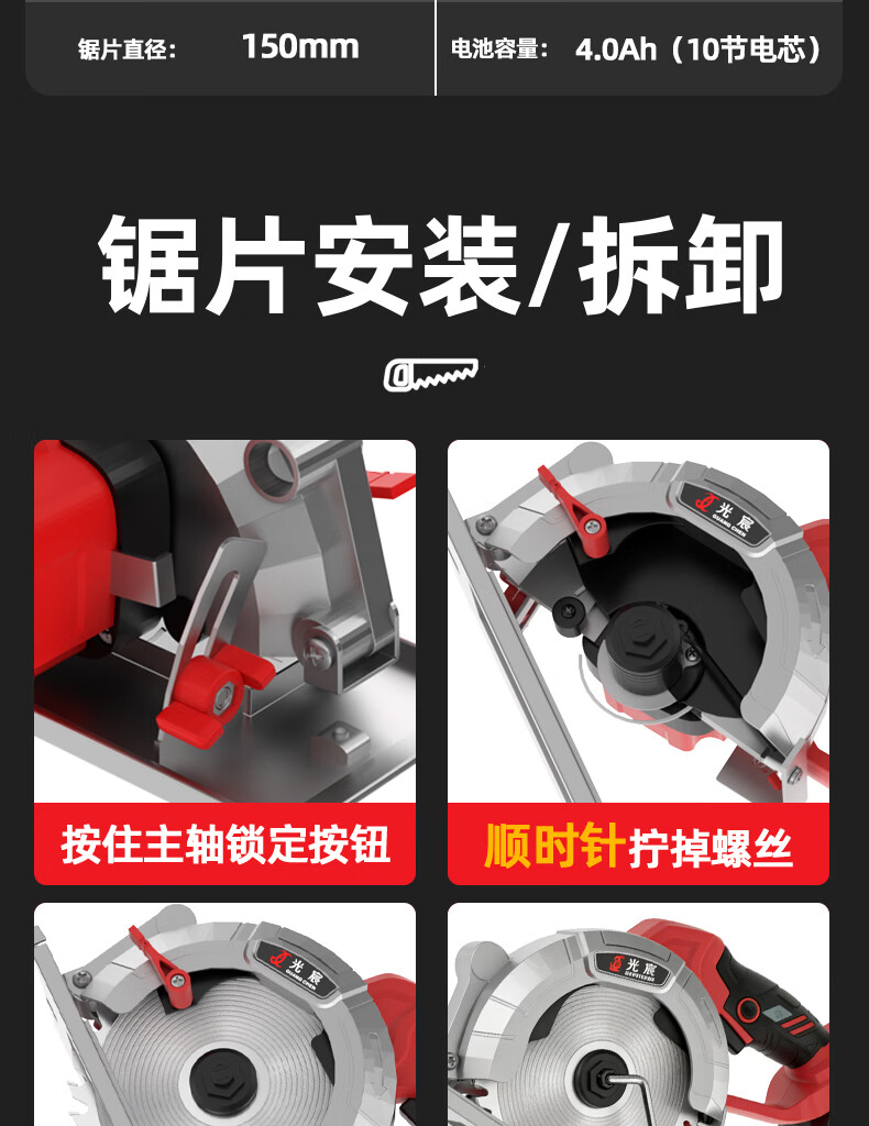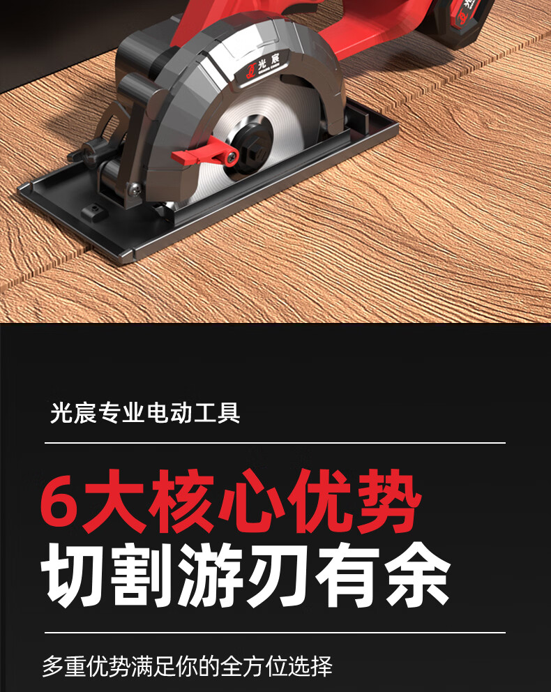 光宸6寸无刷电圆锯锂电充电木工手提电锯云石机切割机锯木圆盘锯 无刷6寸电圆锯10节一电+锯片