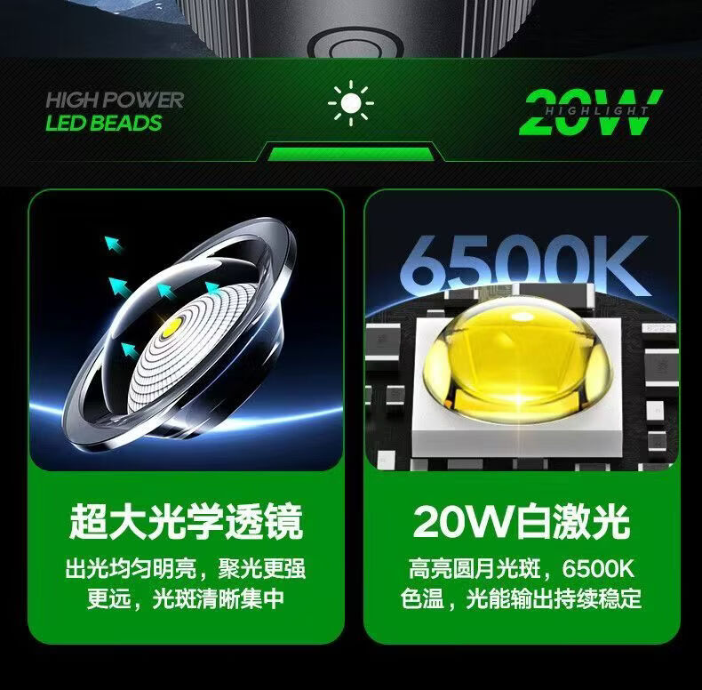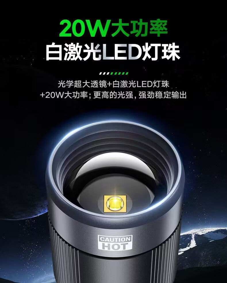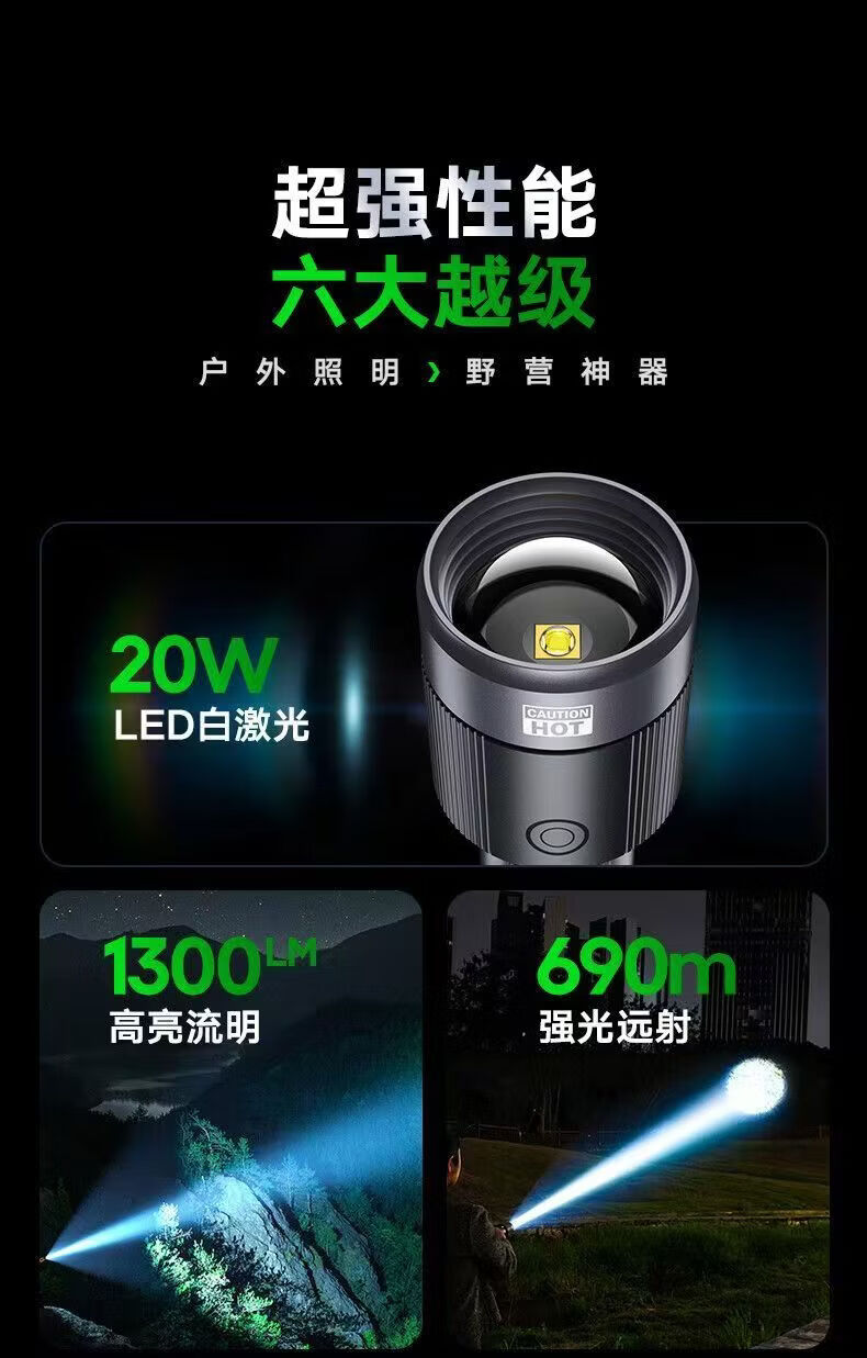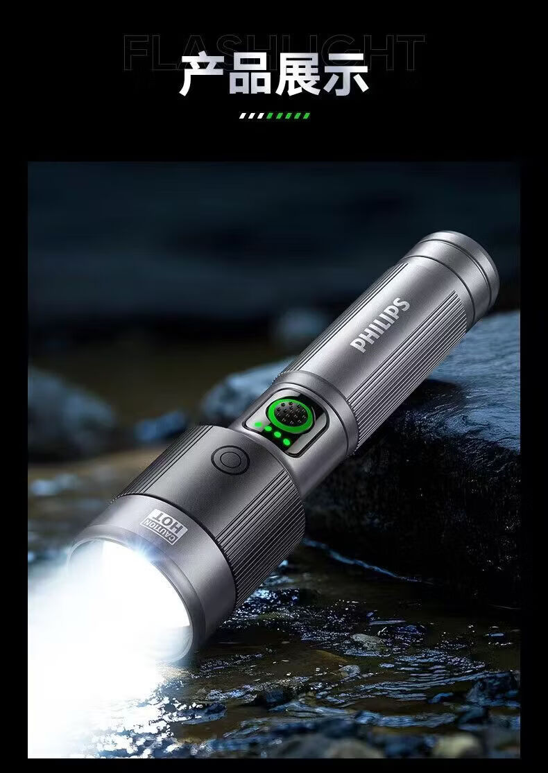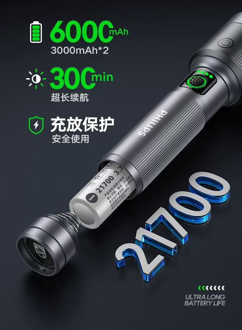 飞利浦强光手电筒可拆卸锂电池户外高亮变焦远射便携持久续航SFL2101P 20W/3000毫安/变焦/SFL2101P