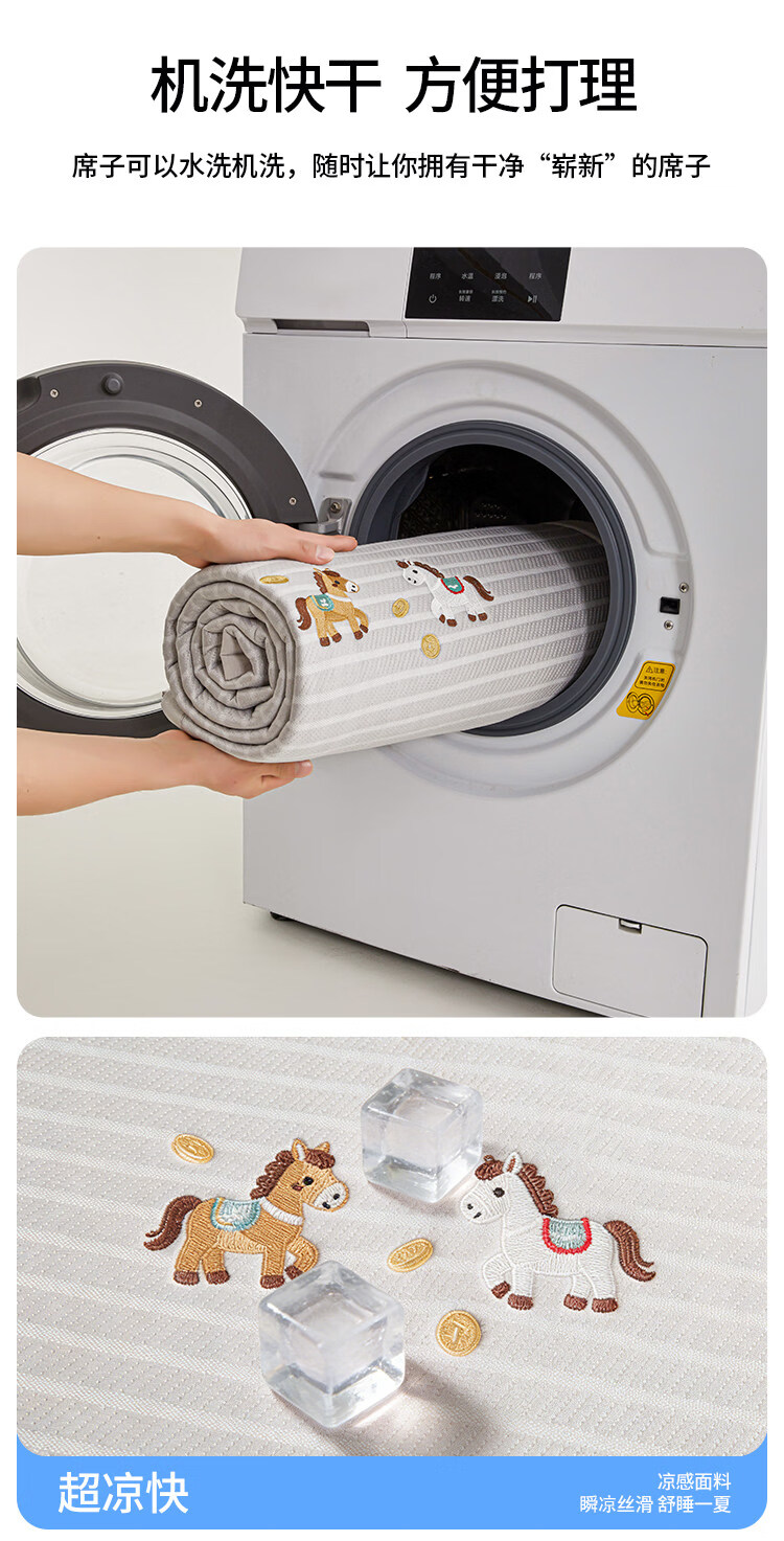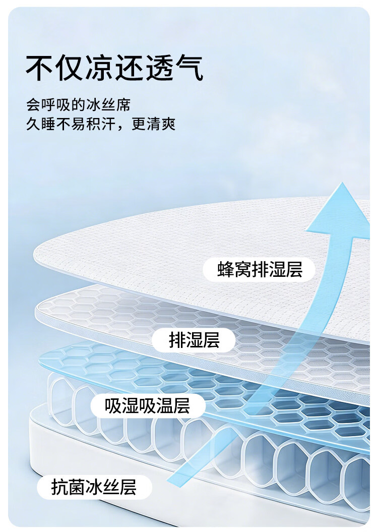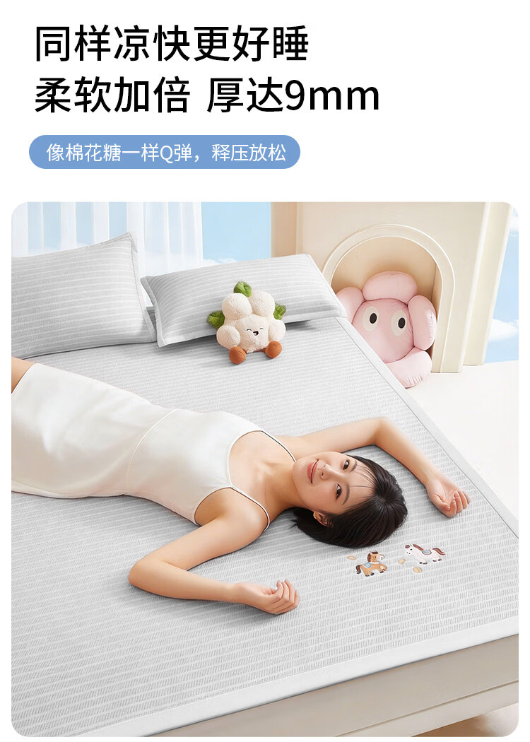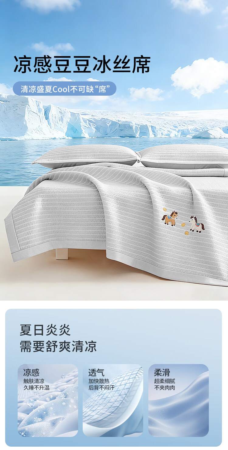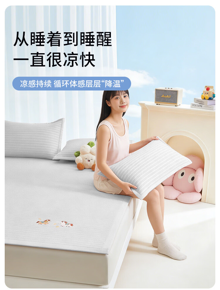 名创优品(MINISO)凉席冰丝凉席1.5米x2米 夏季软席子单双人宿舍夏凉席豆豆席 床席款-马上有钱-灰单席无枕套 90cm*200cm