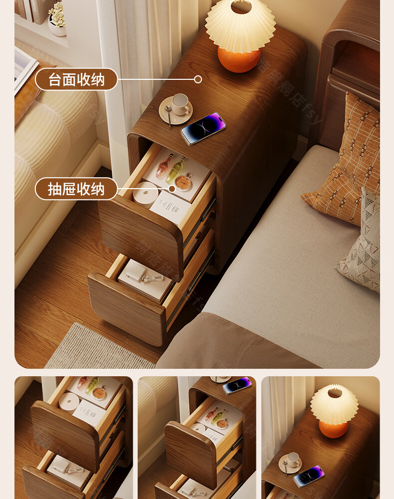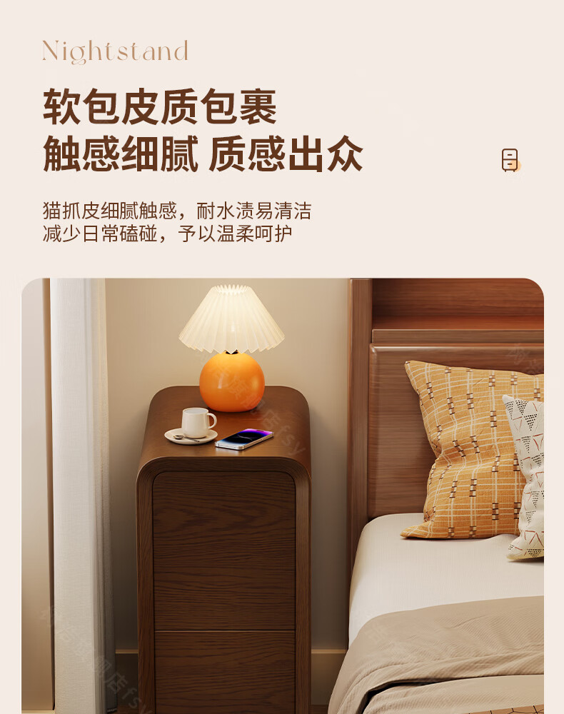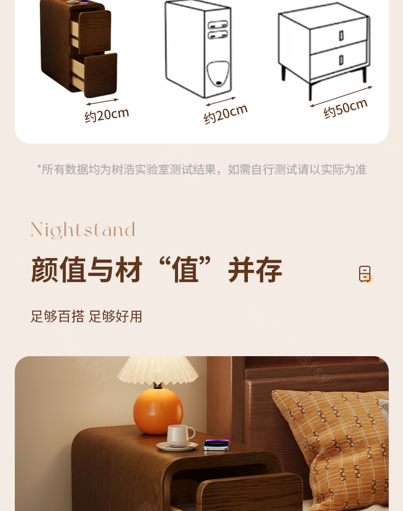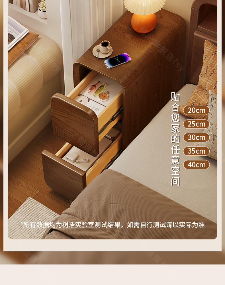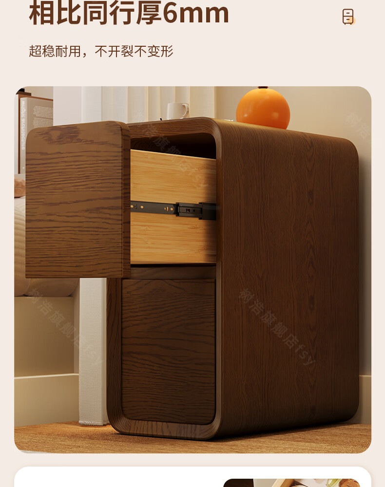 树浩床头柜卧室收纳柜家用置物柜客厅沙发边柜小户型储物柜抽屉式柜子 胡桃色【升级猫抓皮 整装发货】 20x40x47cm