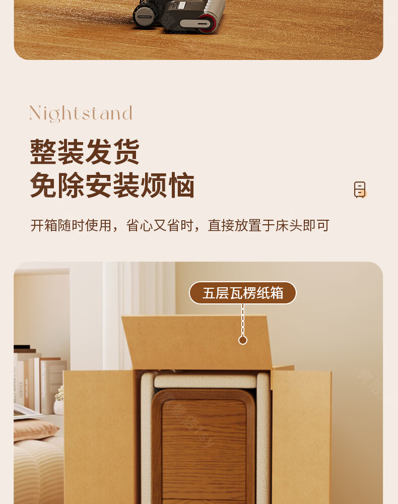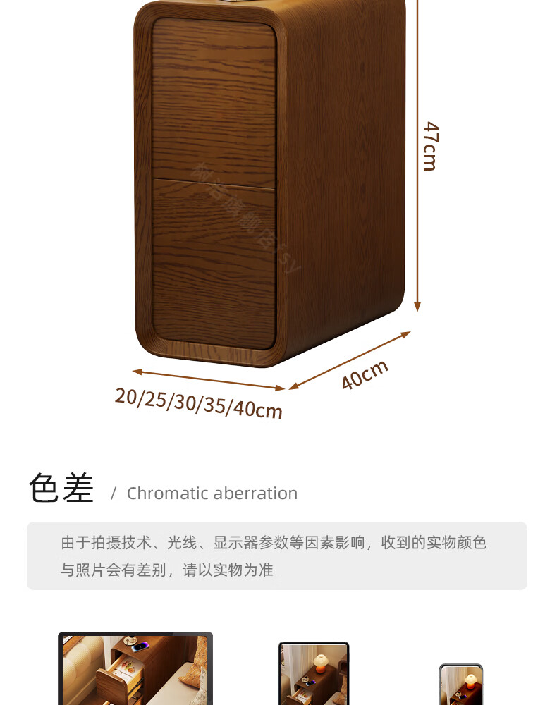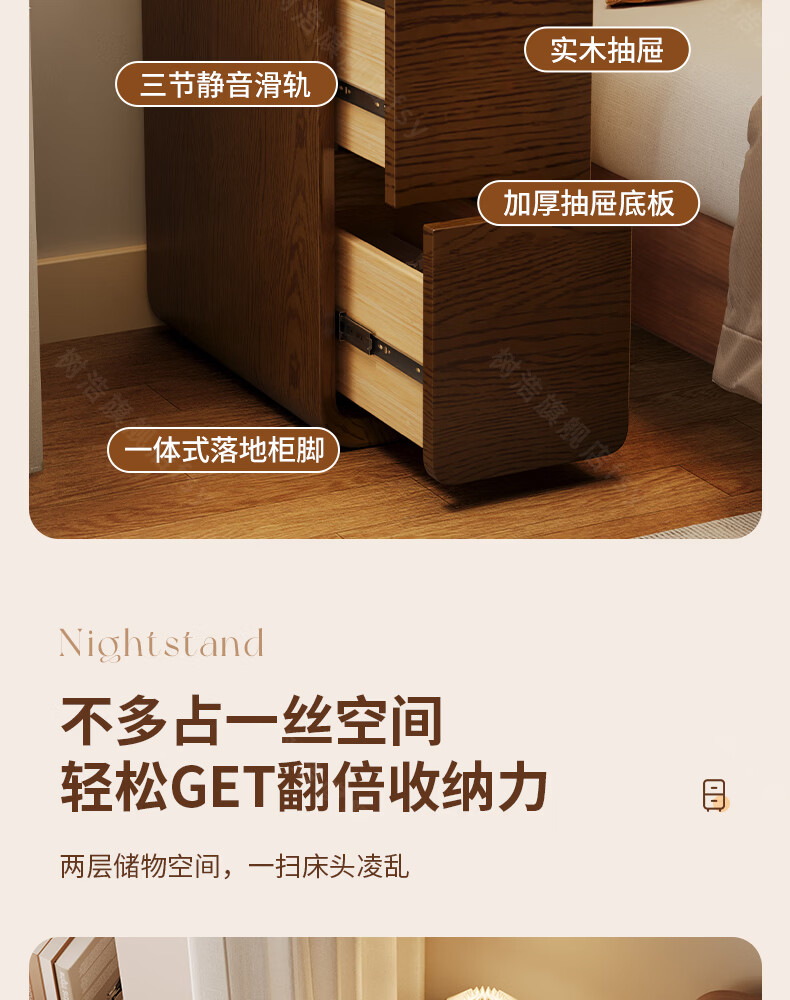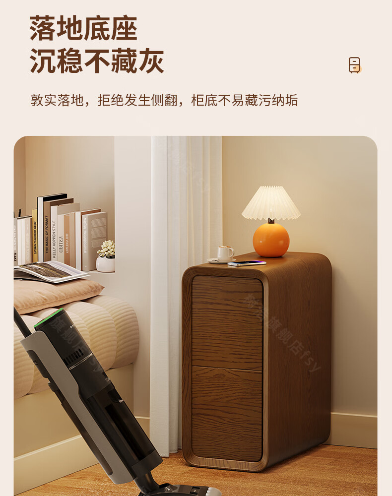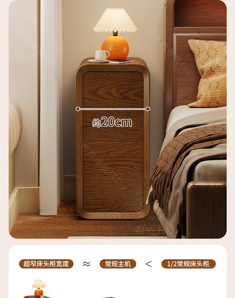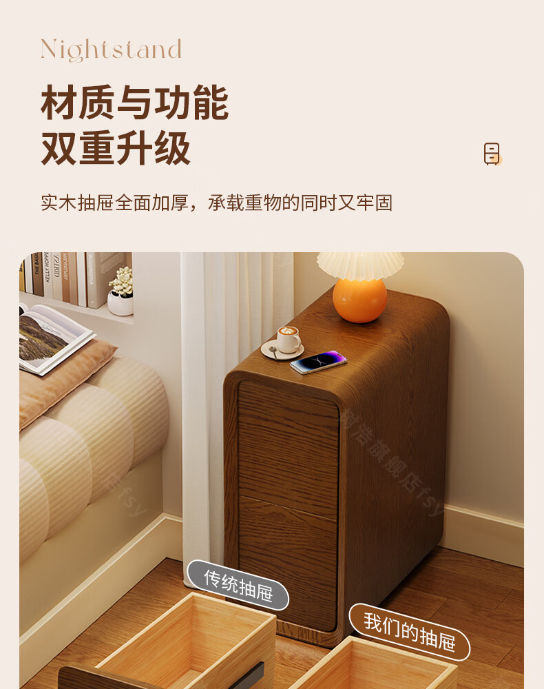 树浩床头柜卧室收纳柜家用置物柜客厅沙发边柜小户型储物柜抽屉式柜子 胡桃色【升级猫抓皮 整装发货】 20x40x47cm