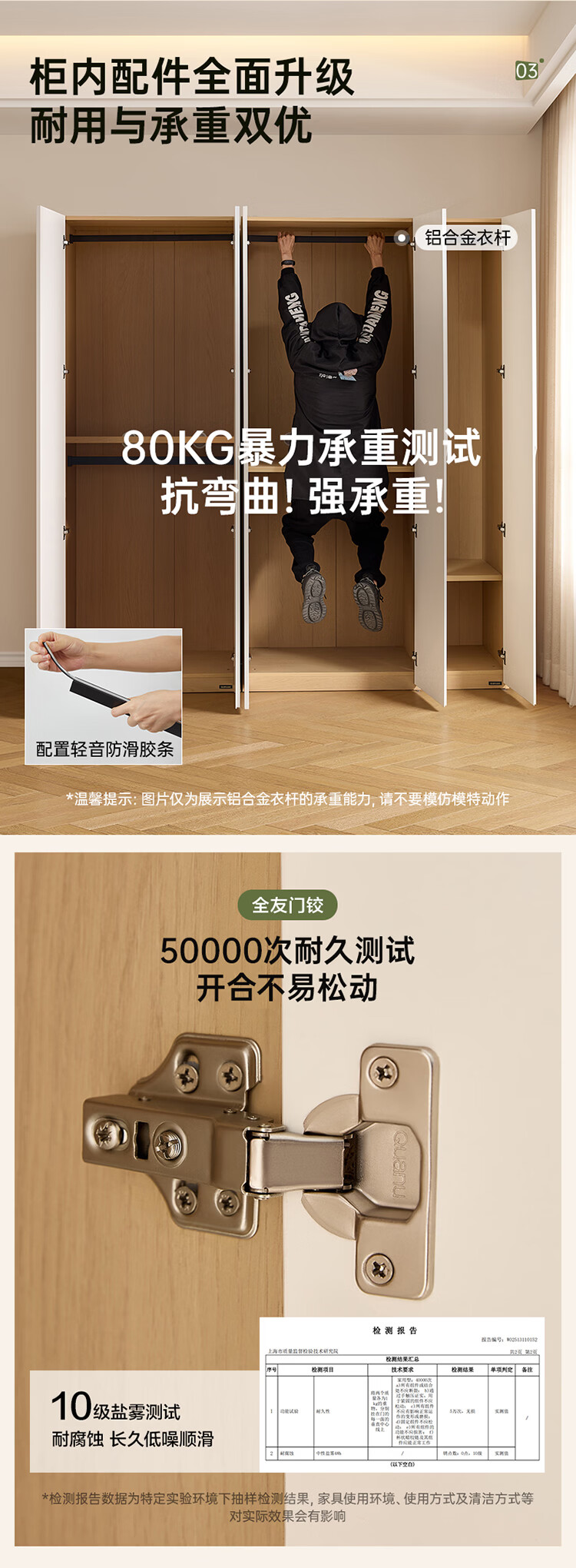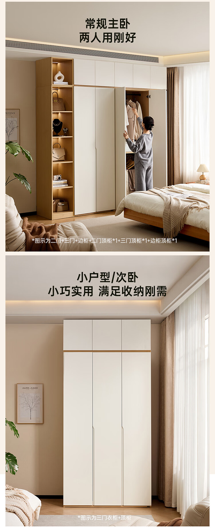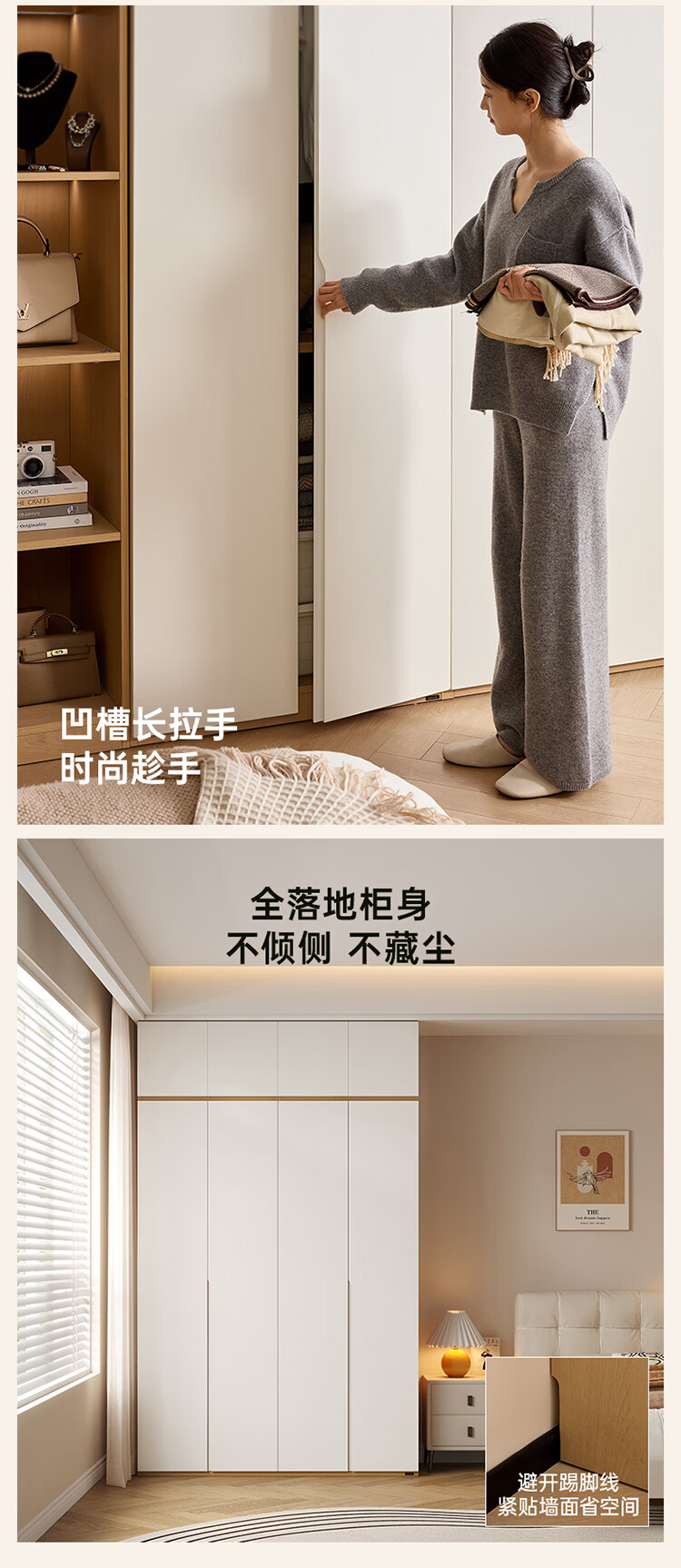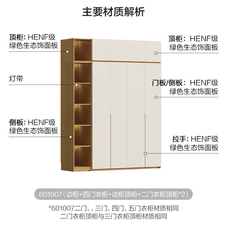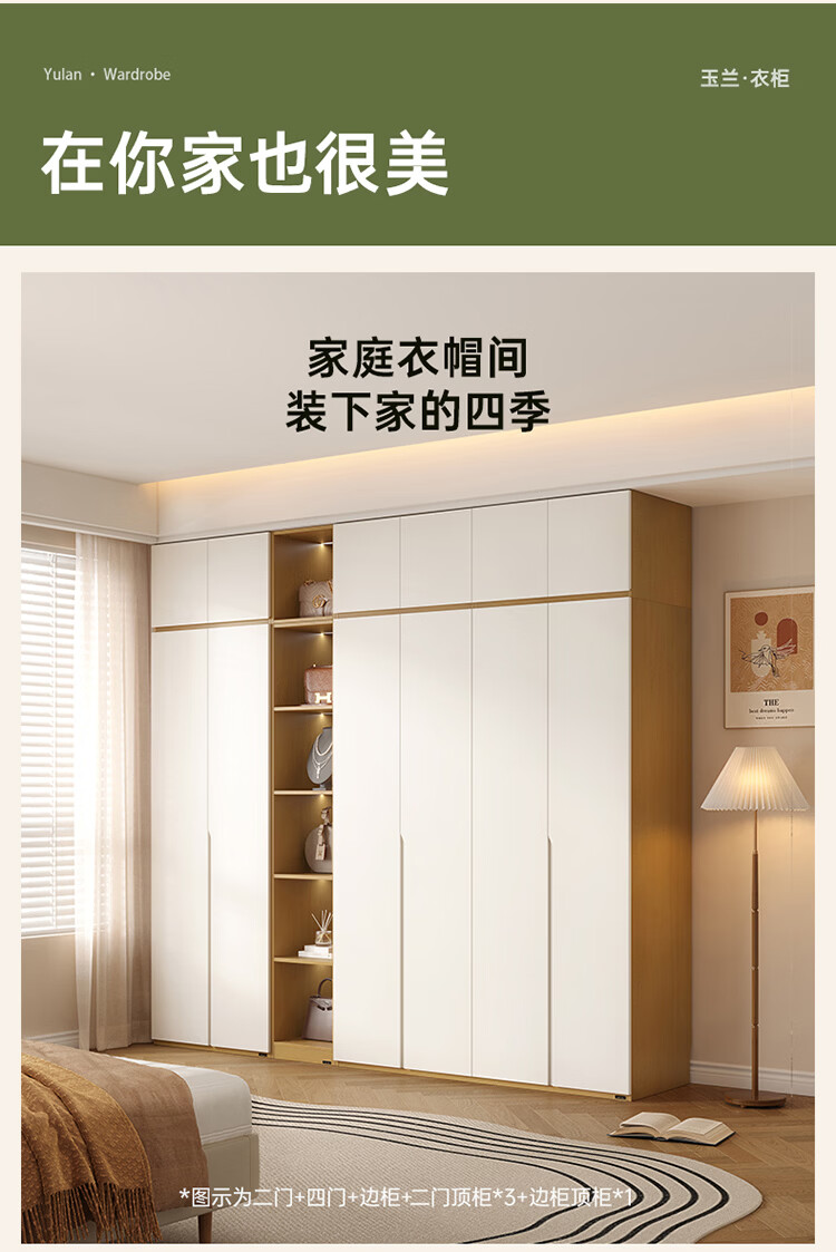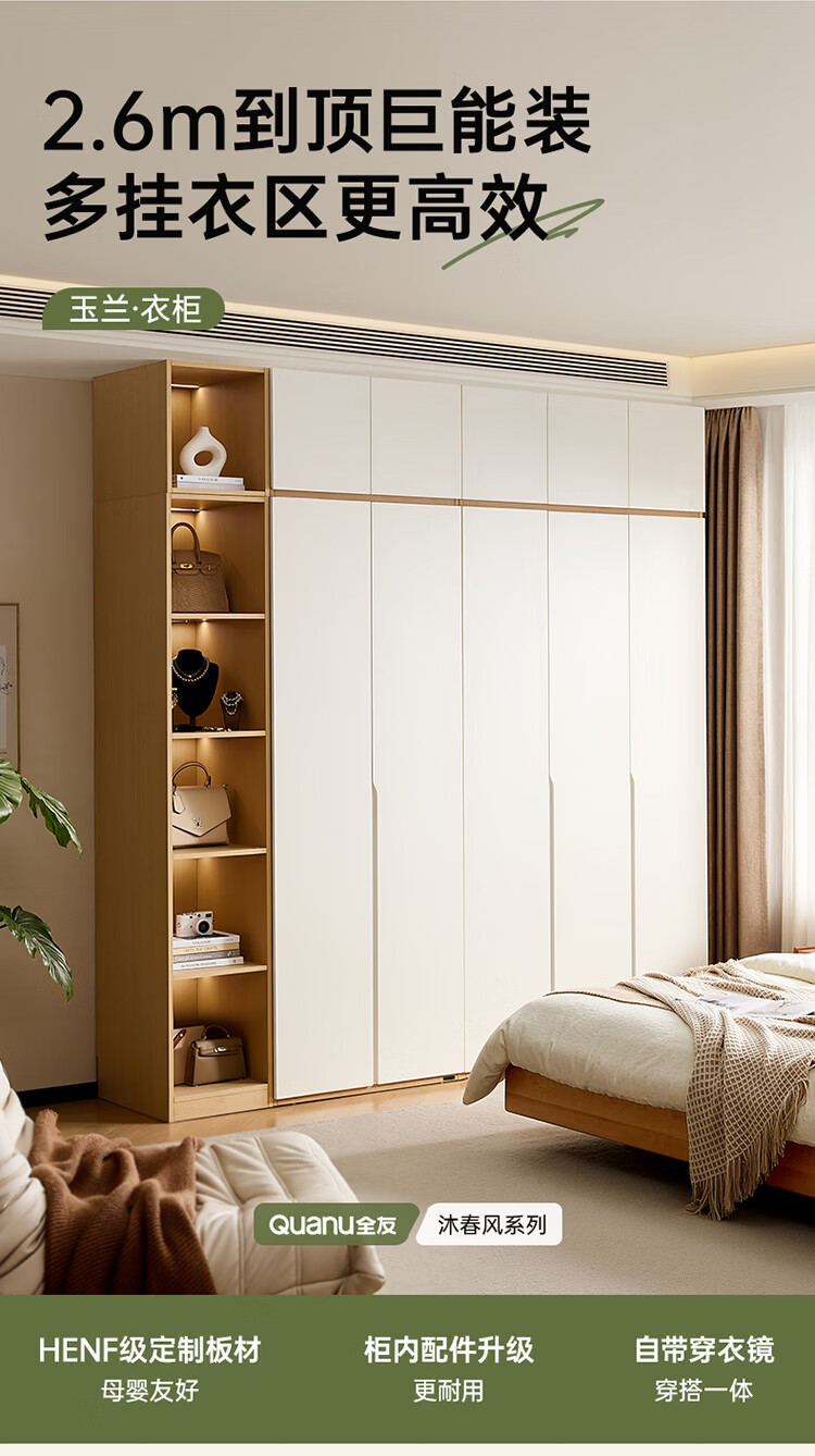 全友家居现代简约HENF级衣柜卧室家用收纳柜一体靠墙储物衣橱组合顶柜 【HENF级 | 1.6*2.14m】四门衣柜