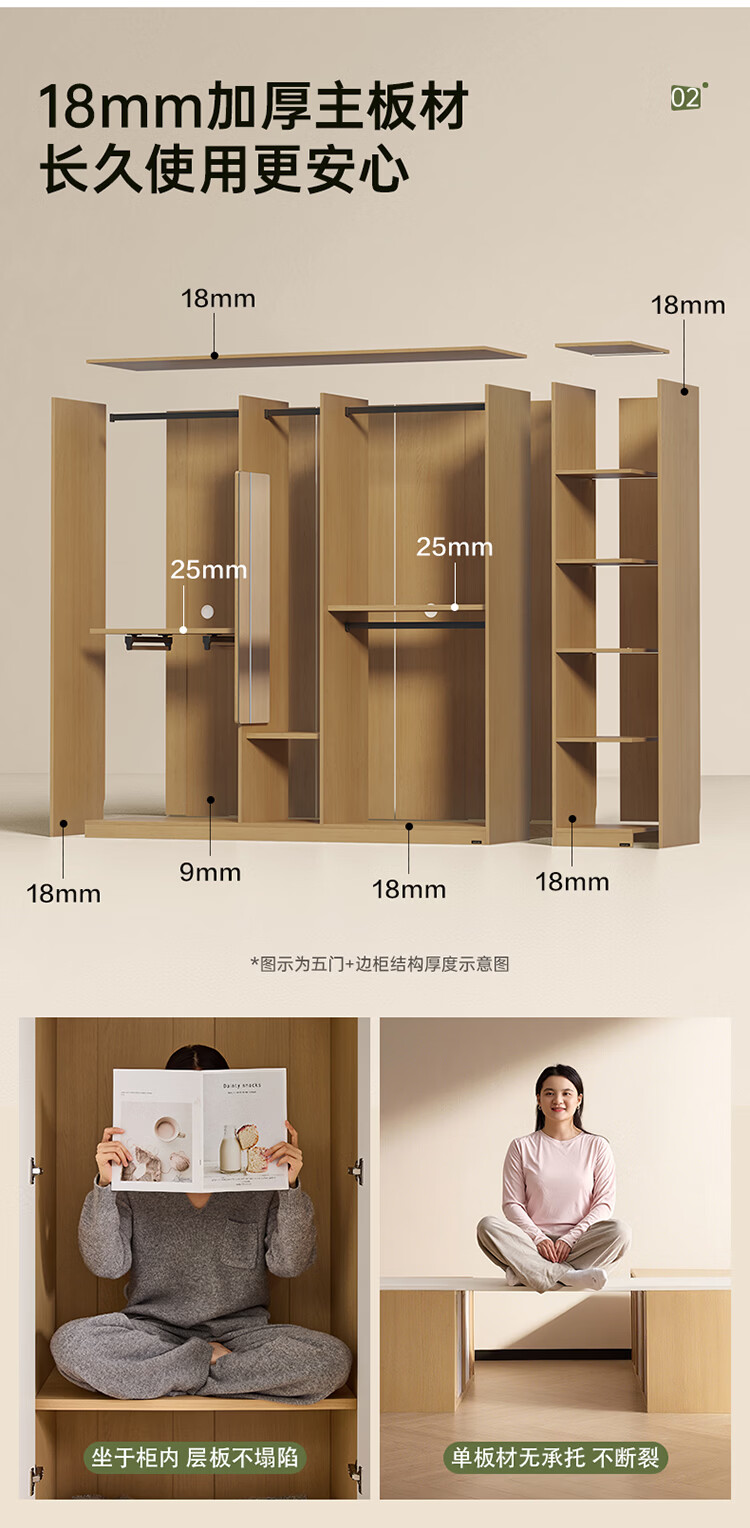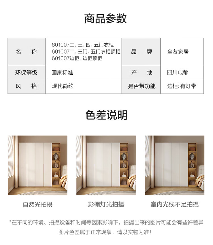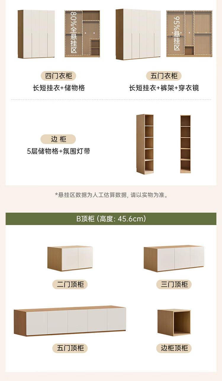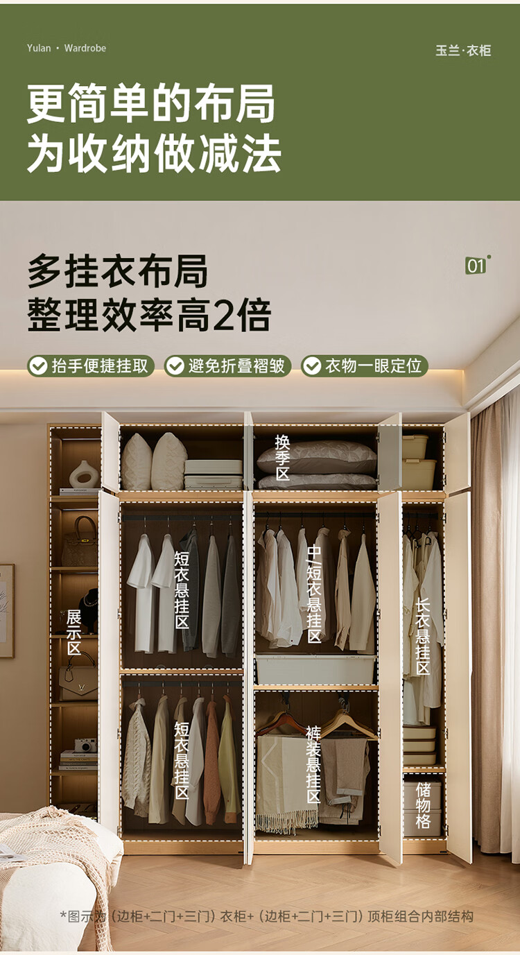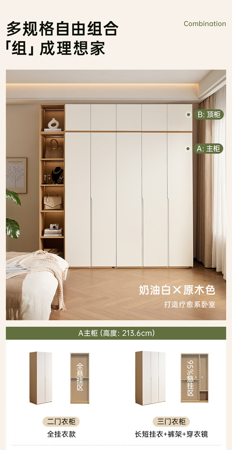 全友家居现代简约HENF级衣柜卧室家用收纳柜一体靠墙储物衣橱组合顶柜 【HENF级 | 1.6*2.14m】四门衣柜