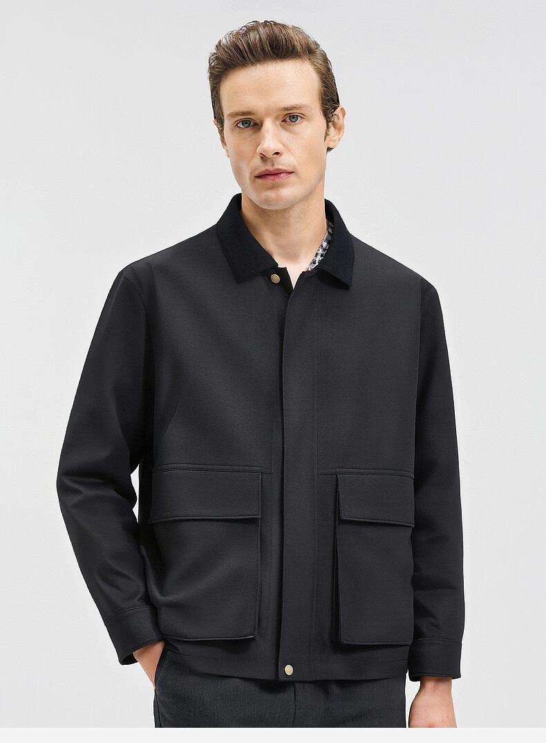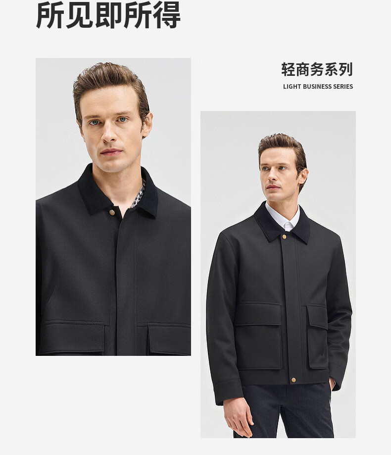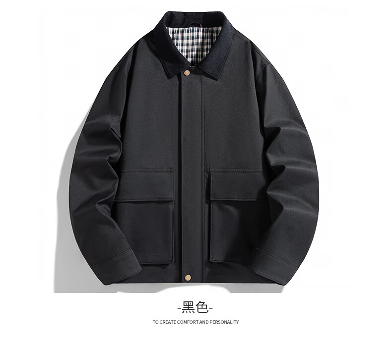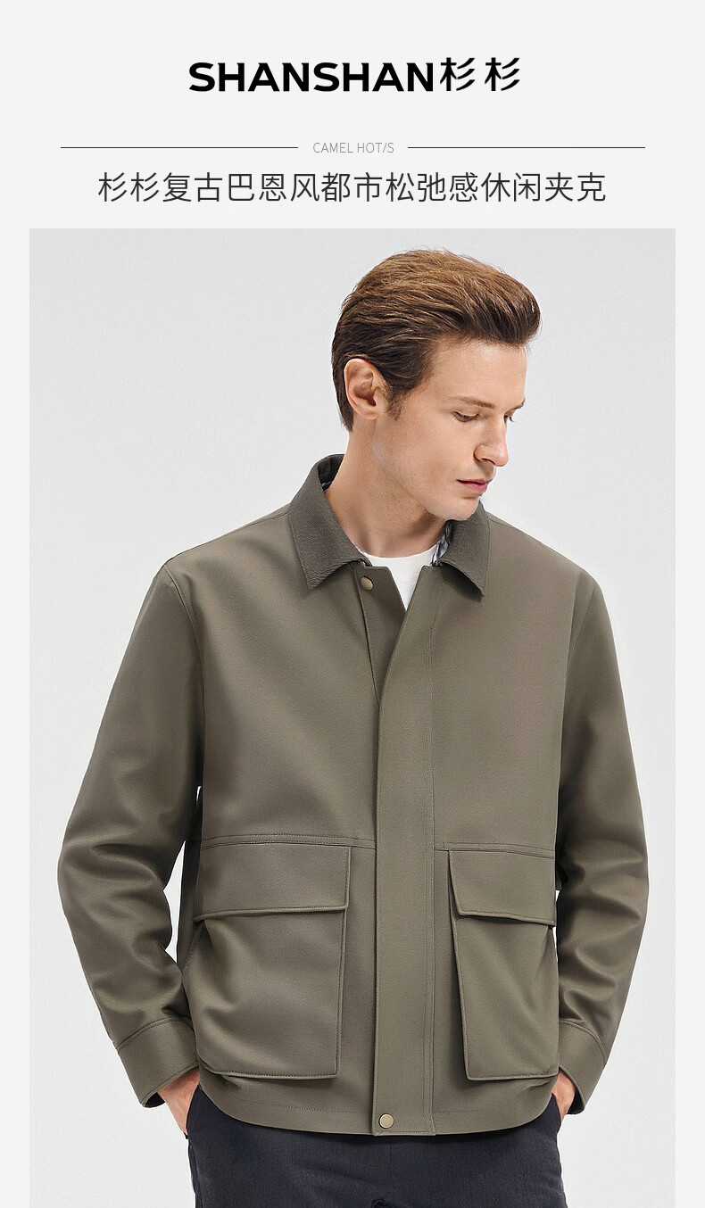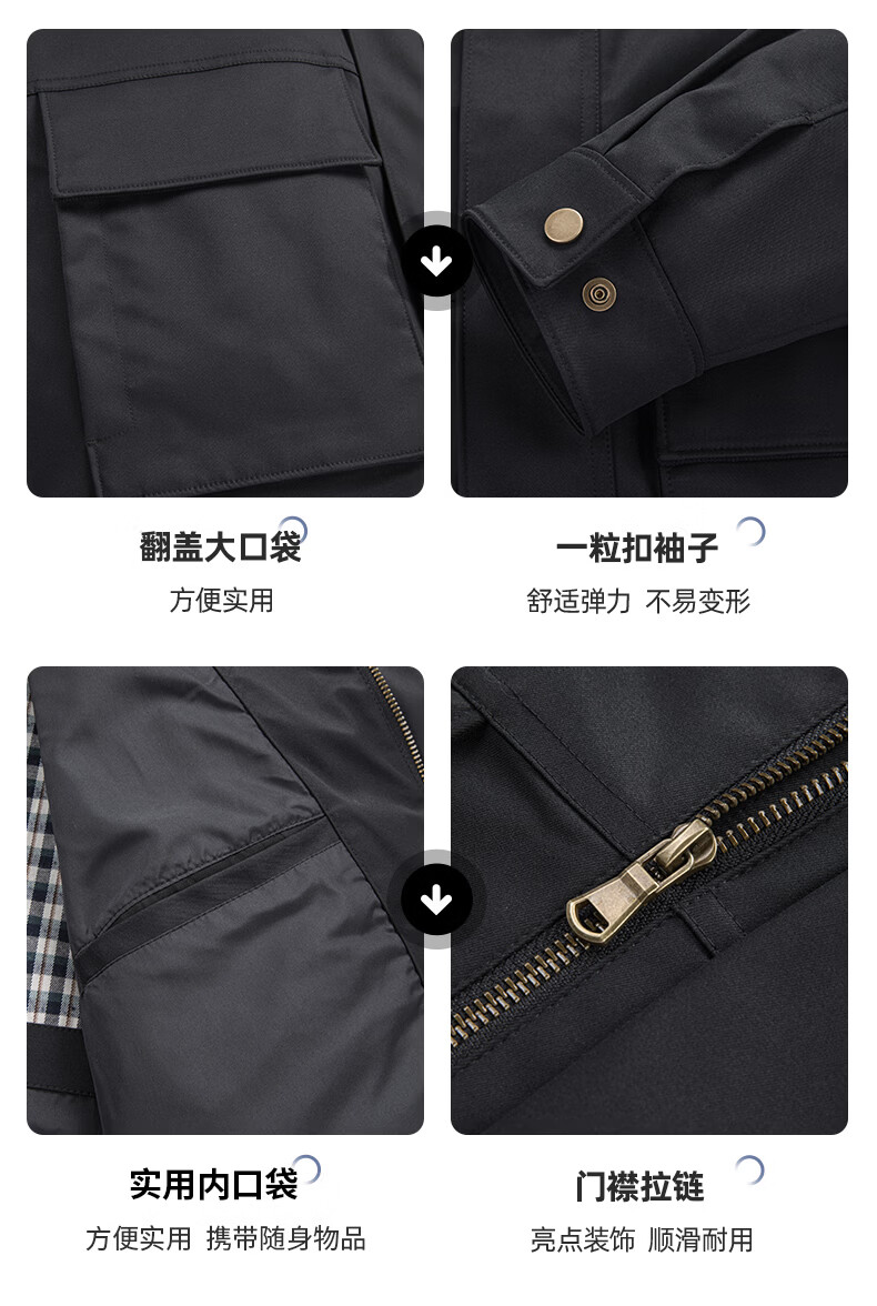 SHANSHAN杉杉【翻领工装】春秋薄款夹克男抗起球抗皱易打理外套衣服 黑色 M /170