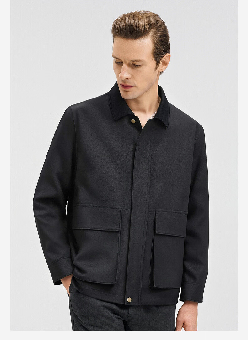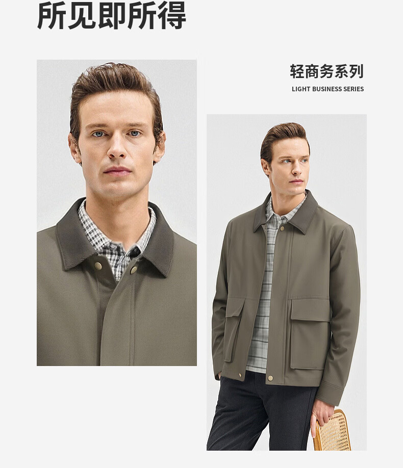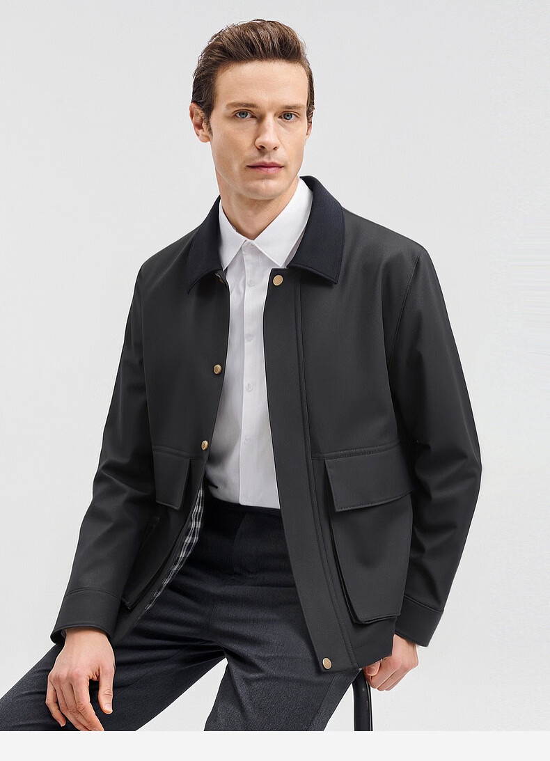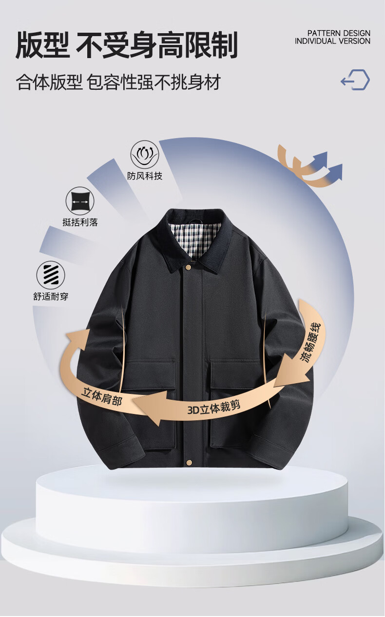 SHANSHAN杉杉【翻领工装】春秋薄款夹克男抗起球抗皱易打理外套衣服 黑色 M /170