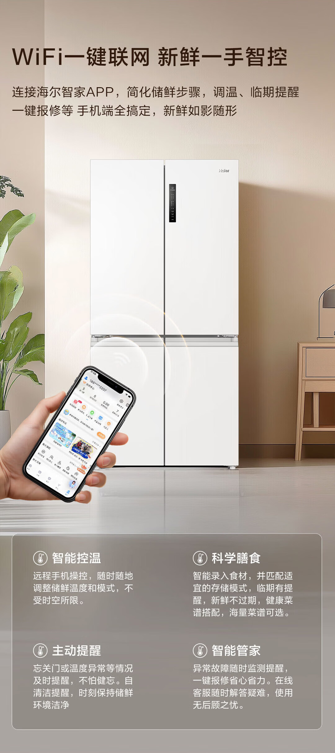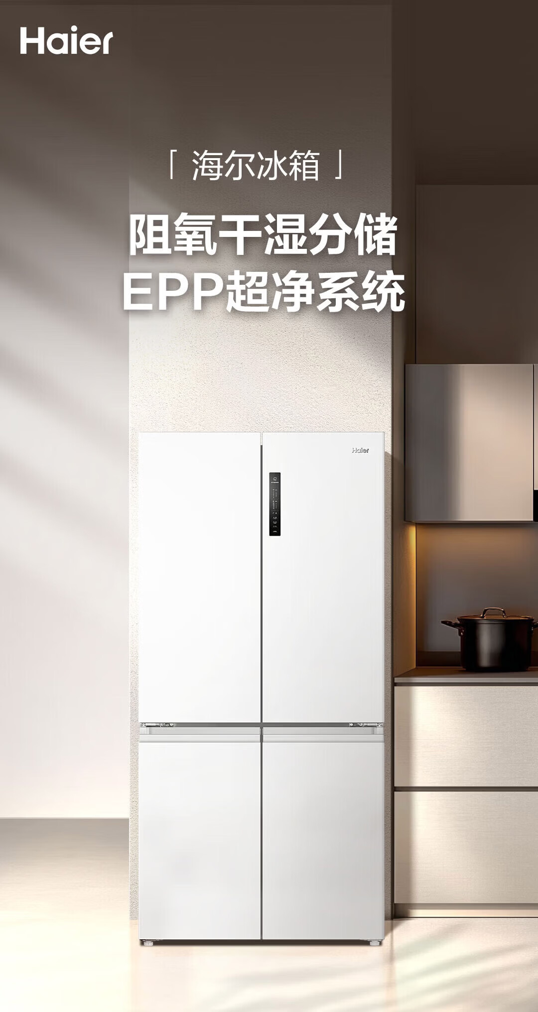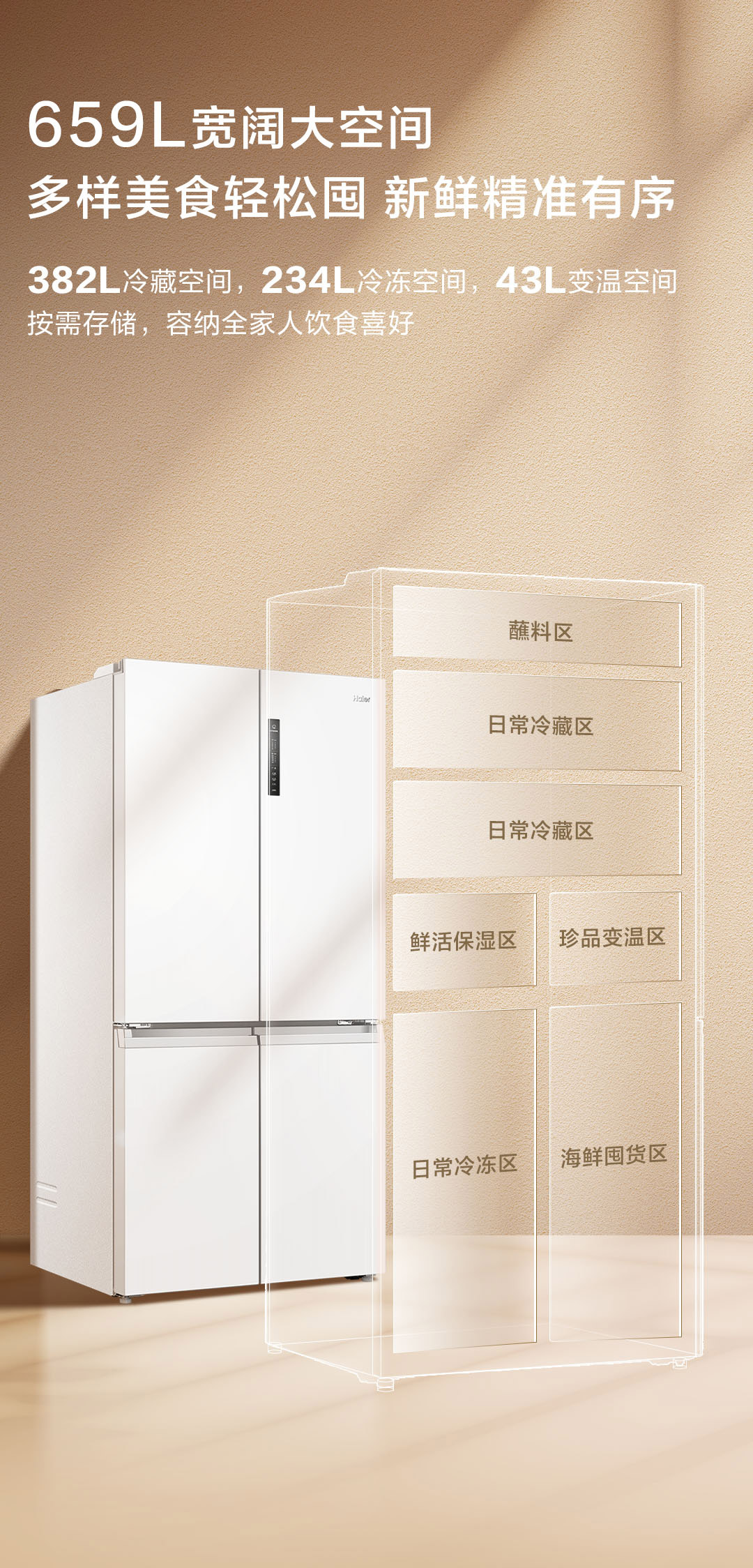 海尔冰箱659升【咨询更优惠】家用十字四开多门一级能效双变频风冷无霜大容量电冰箱以旧换新 白色+EPP超净+阻氧干湿分储