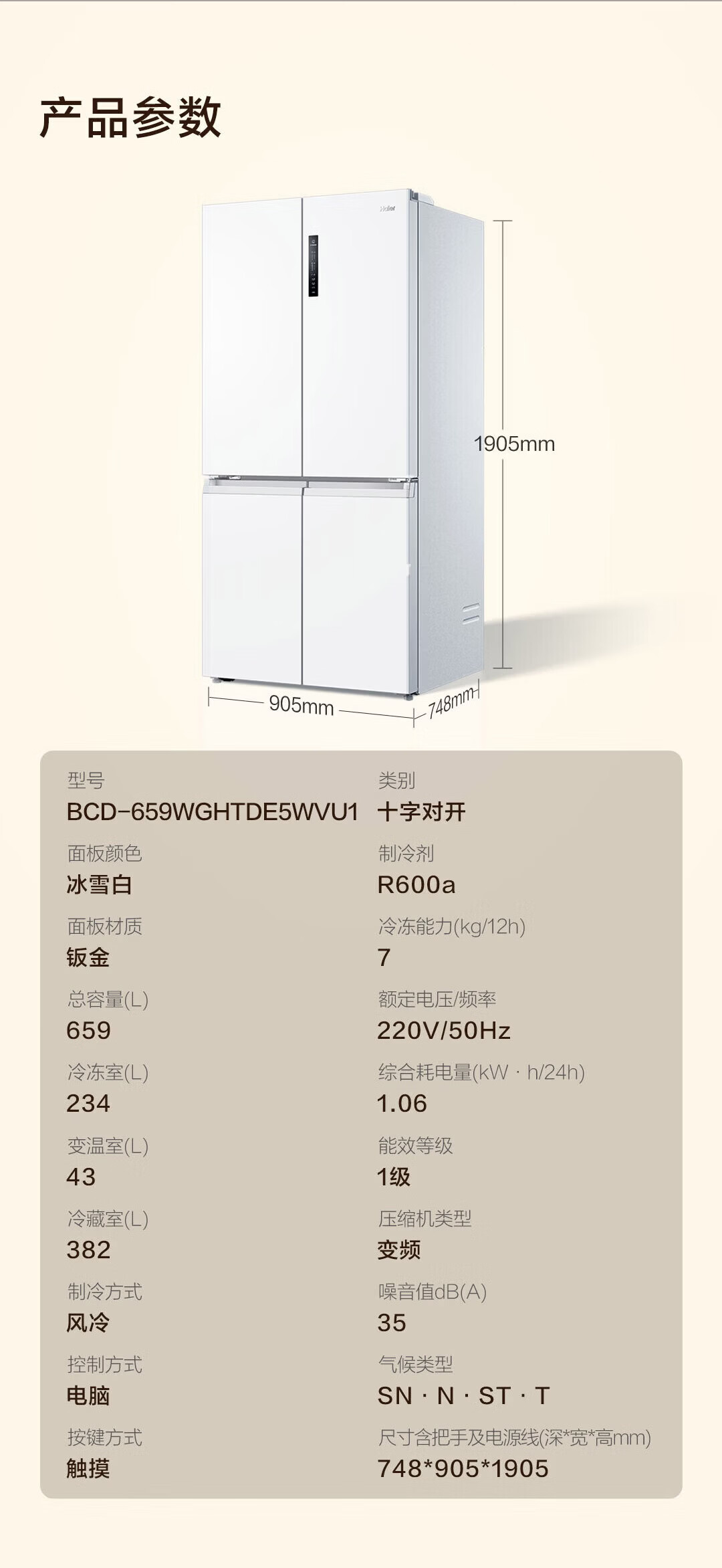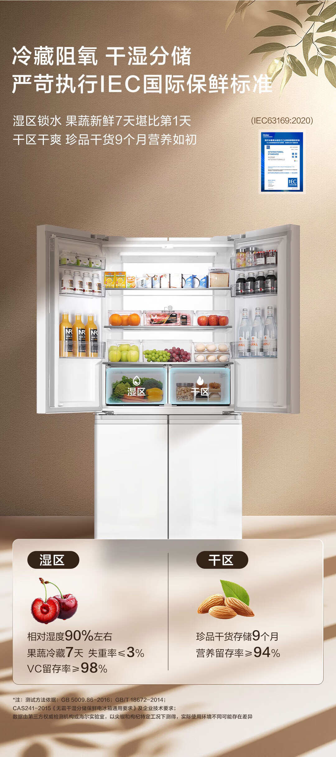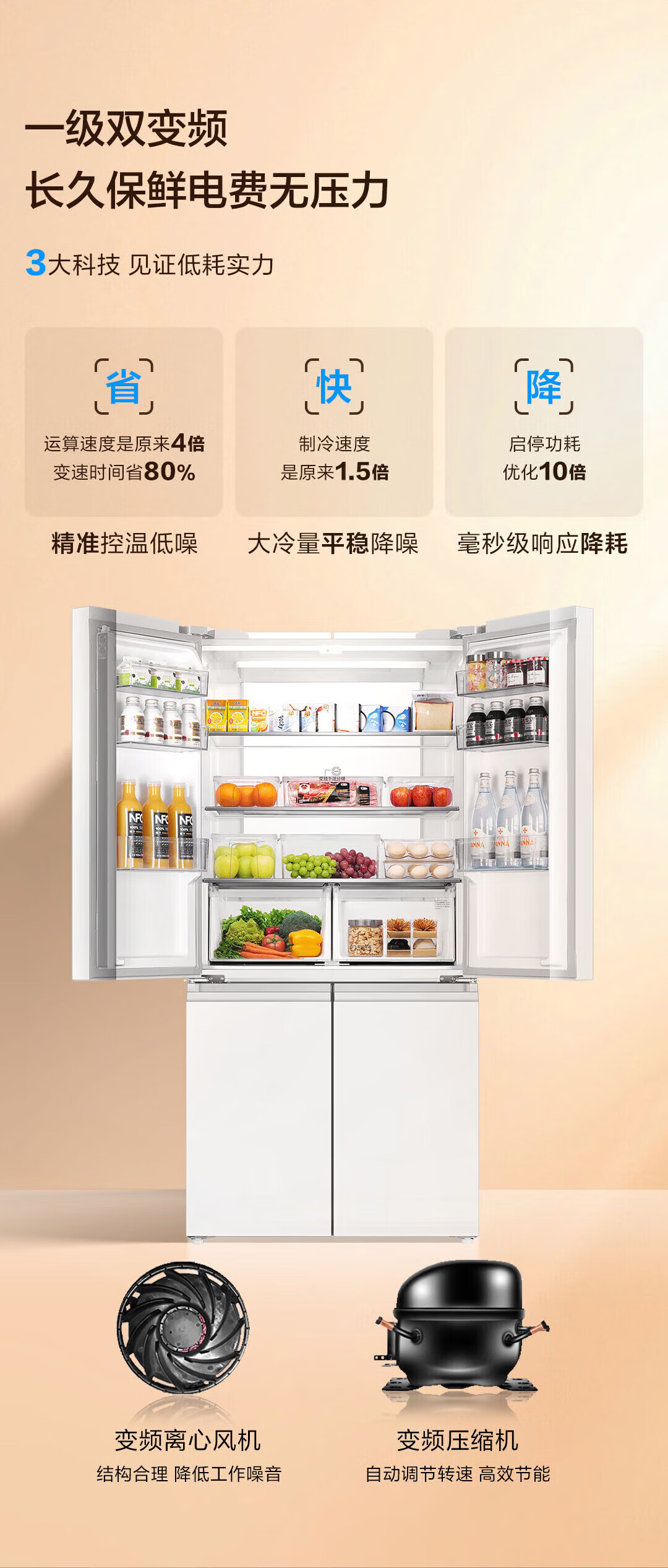 海尔冰箱659升【咨询更优惠】家用十字四开多门一级能效双变频风冷无霜大容量电冰箱以旧换新 白色+EPP超净+阻氧干湿分储