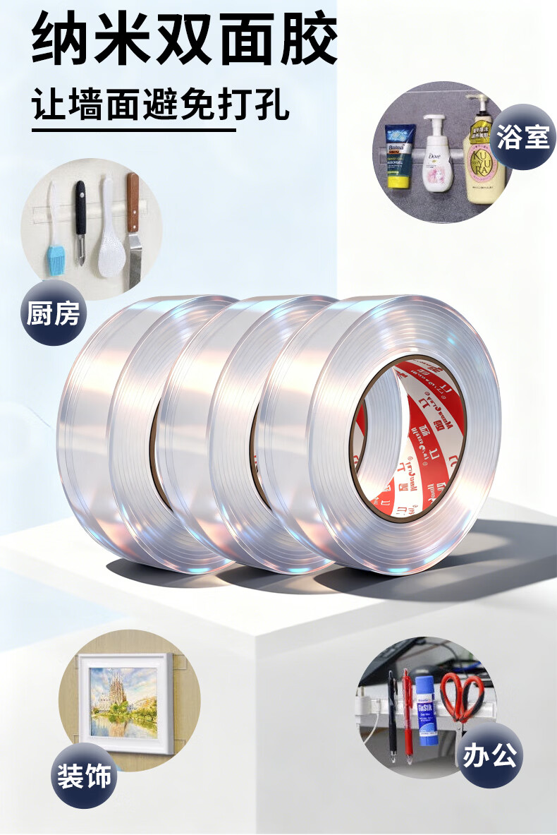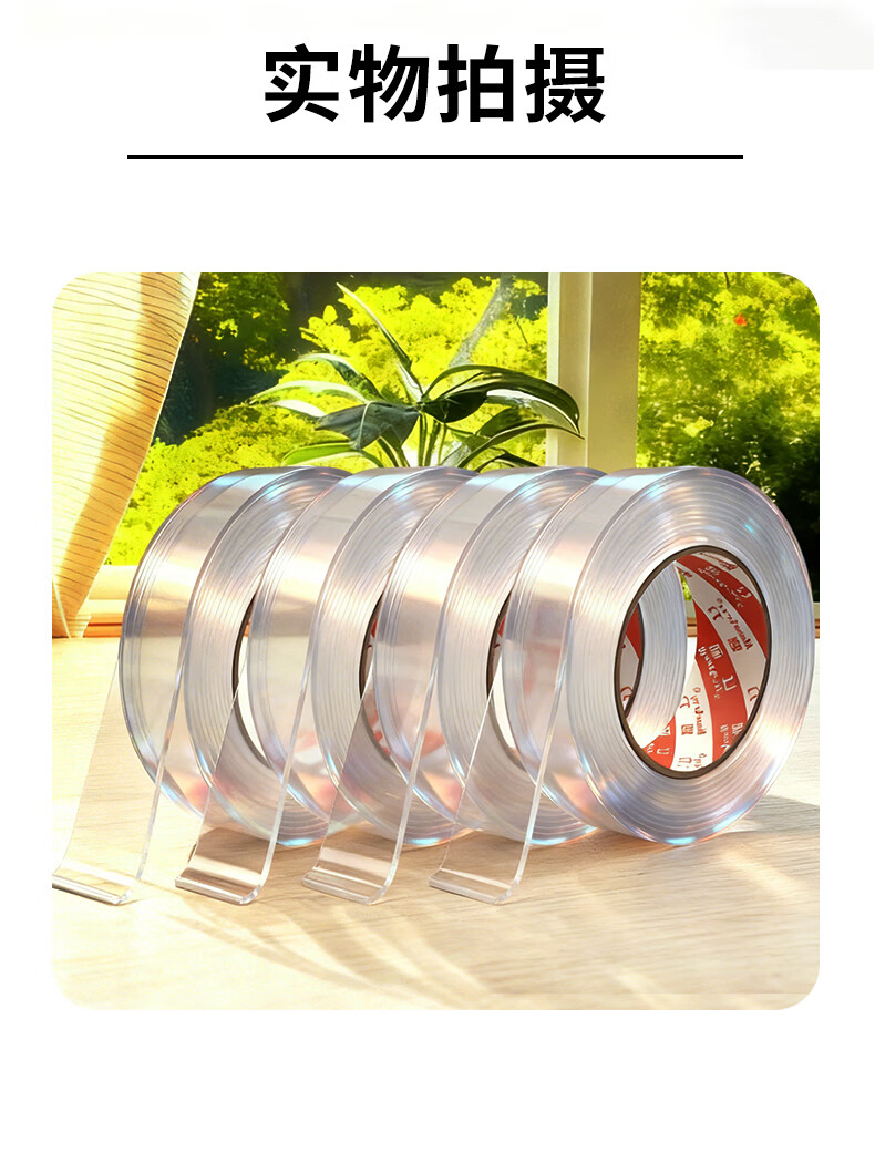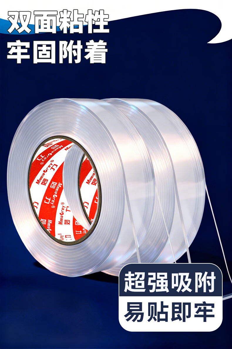 MEEIAOREY纳米双面胶带强粘无痕防水胶贴高粘度无痕胶强力胶双面胶带不伤墙面透明不留痕纳米双面免钉胶 纳米双面胶【1.5毫米厚】强粘无痕 宽5厘米长7米【足米/不虚标】