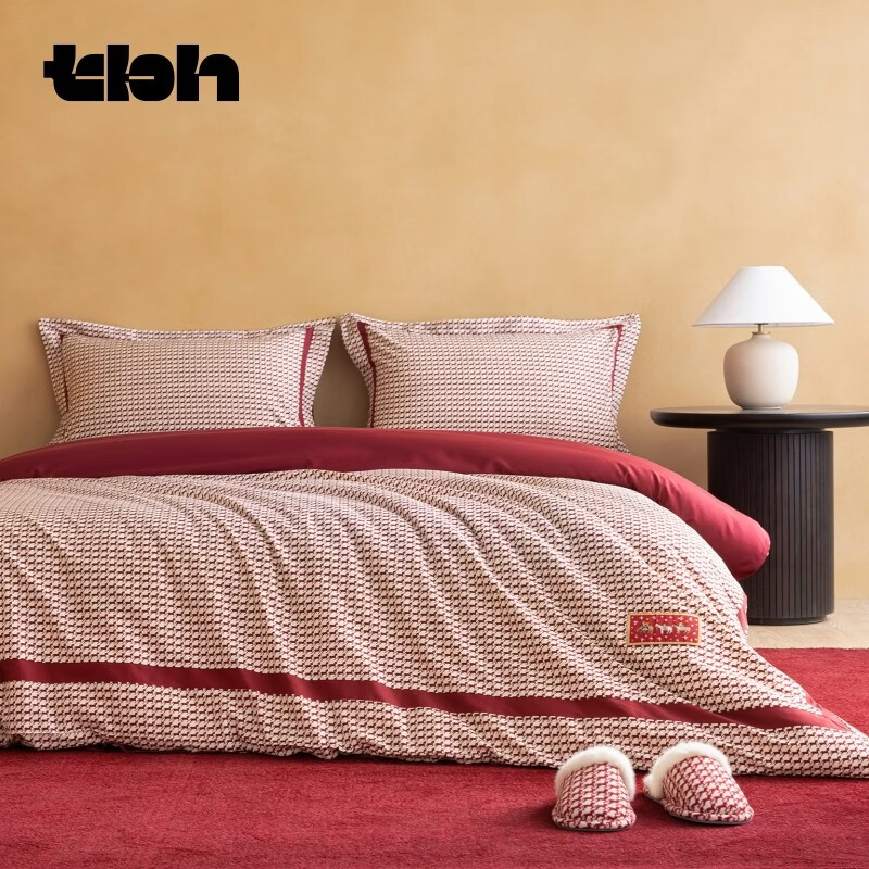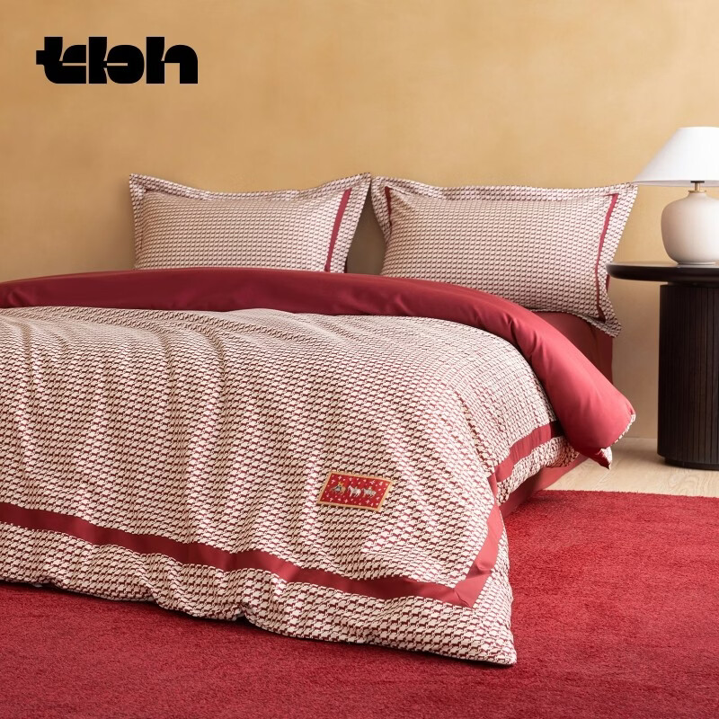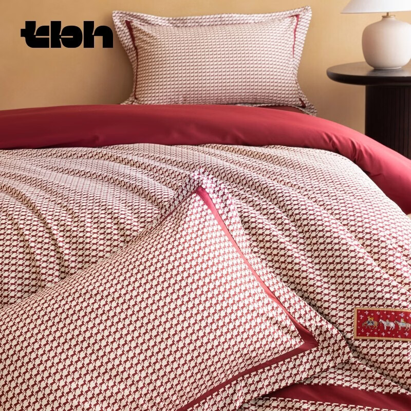 野兽派家居(tbh)床上四件套马年限定全棉缎纹印花床品套件新年礼物 “马年限定”全棉锻纹印花床品 千马格 1.2m床 床单款 (被套150*210cm)