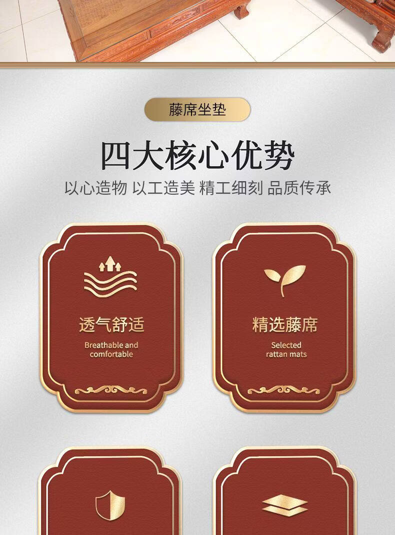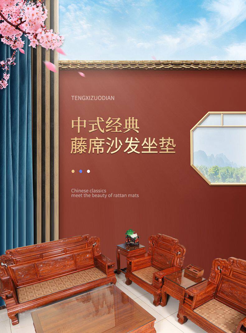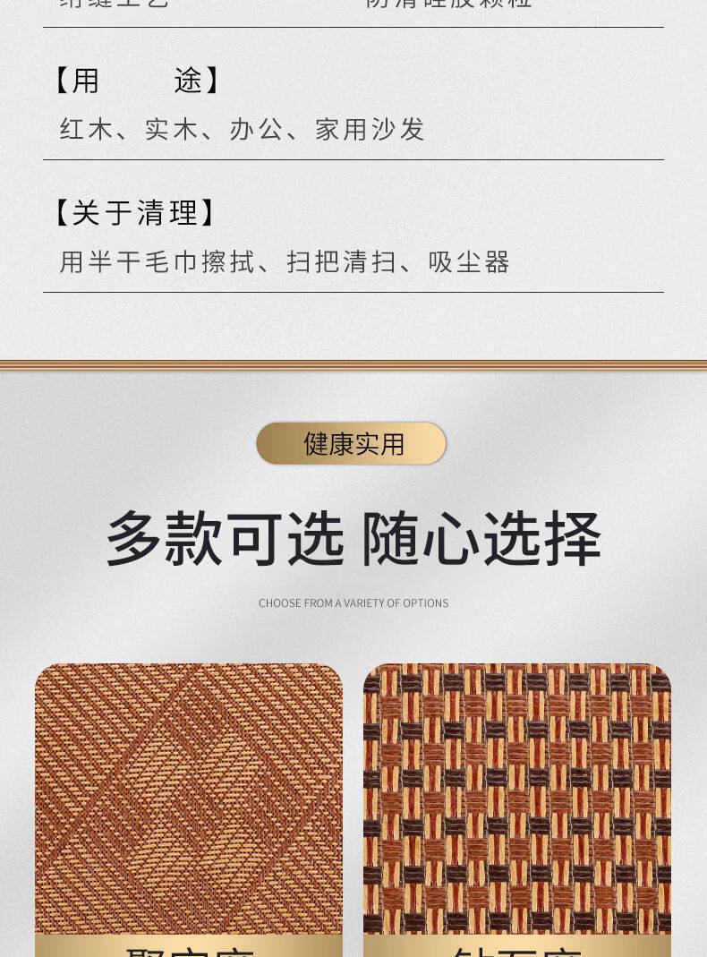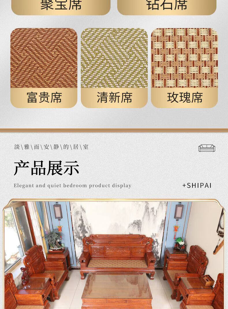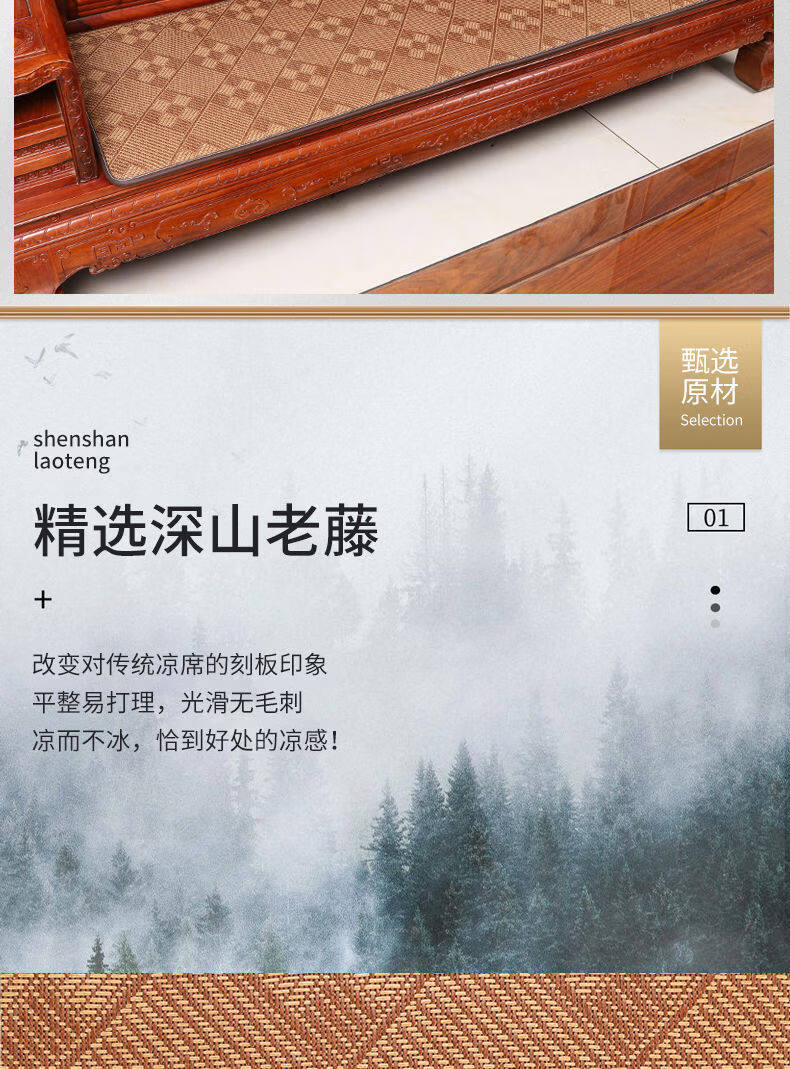 正圣藤席凉席沙发垫四季通用防滑2026年新款新中式红木夏季沙发坐垫 浅棕藤【升级加厚】 三人位60*180cm