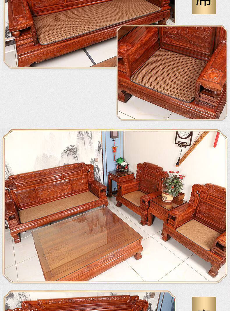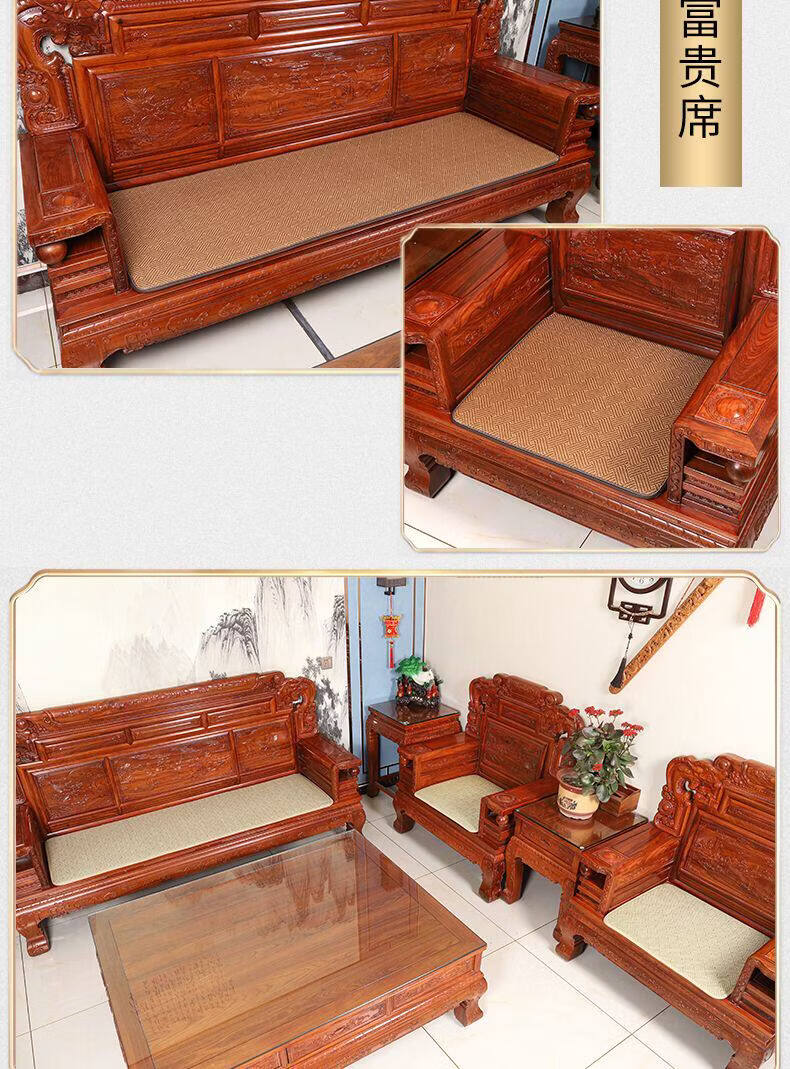 正圣夏季凉席沙发垫四季通用防滑2026年新款红木实木沙发坐垫老式椅垫 锦绣红棕(3cm海绵) 三人座50*170cm
