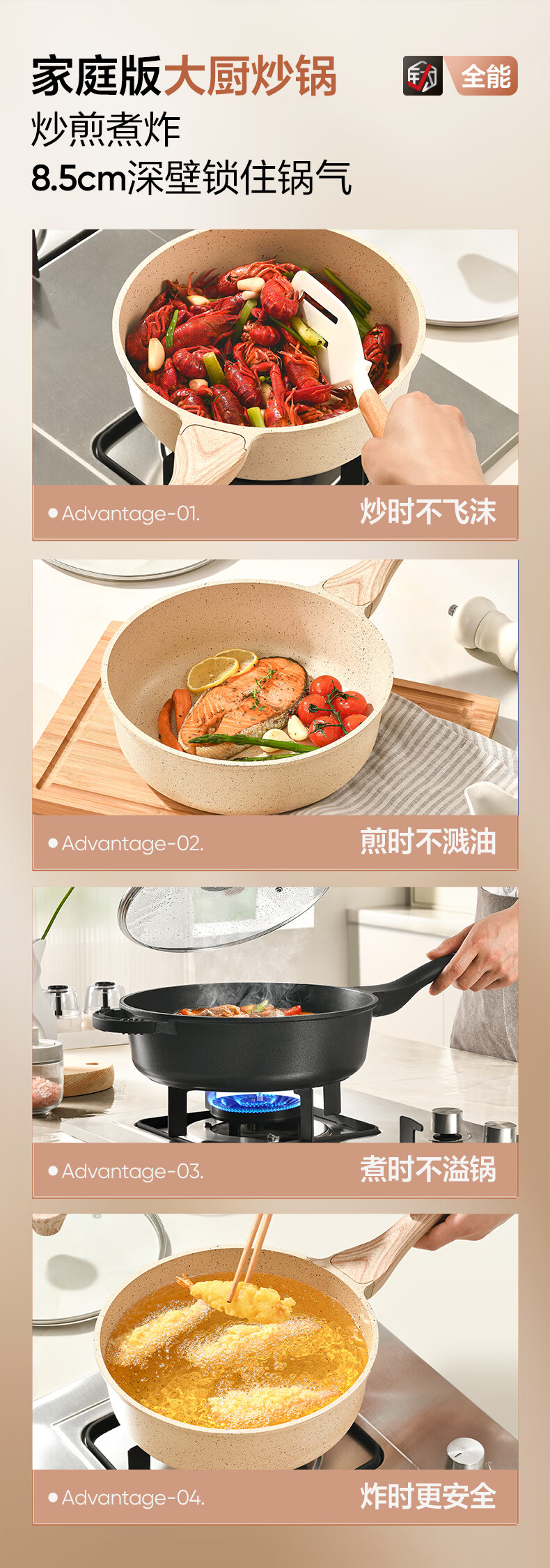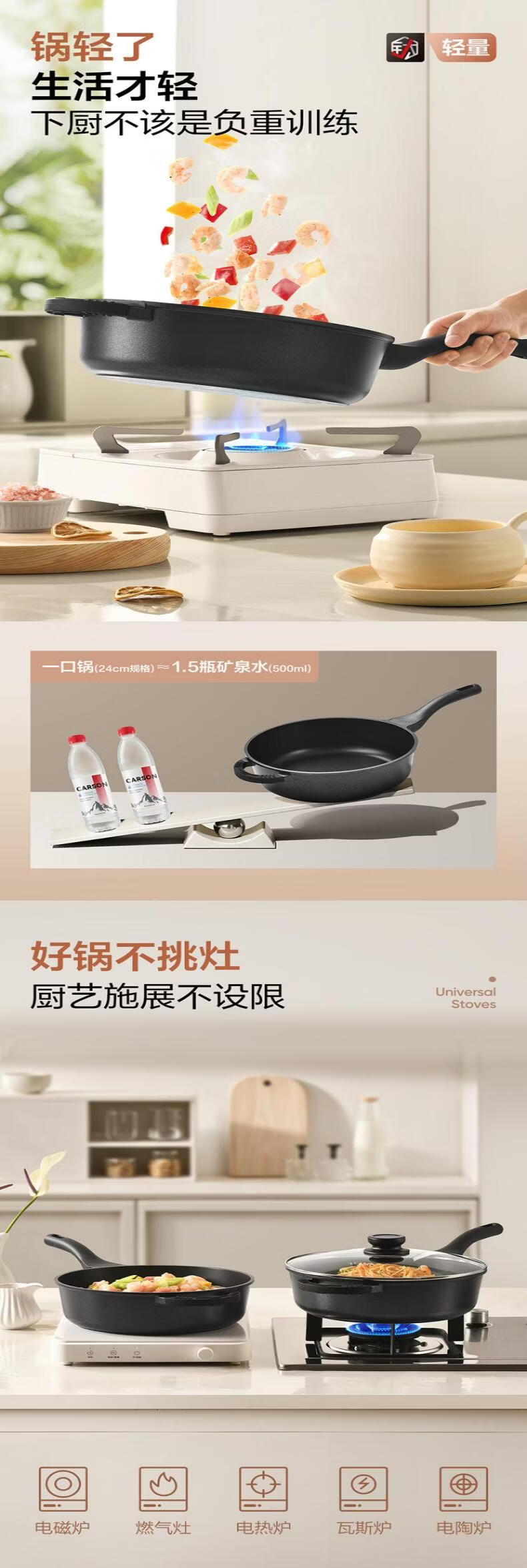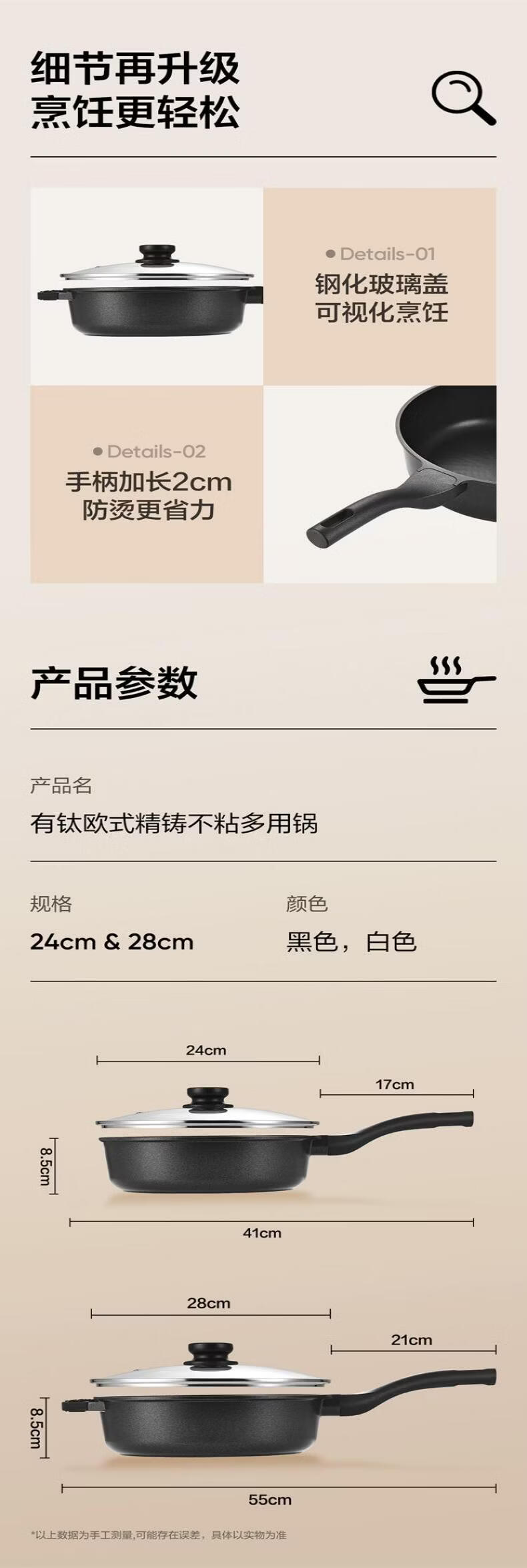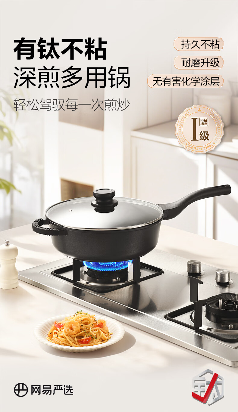 网易严选【新款】网易严选煎锅 有钛不粘深煎多用锅 家庭宿舍多用途锅 【升级钛涂层】24cm白色