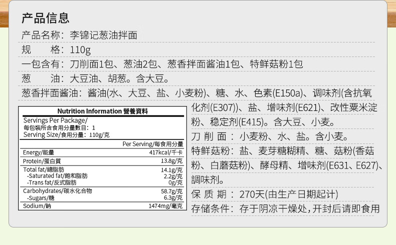 李锦记(LEE KUM KEE) 葱油拌面110g( 2026/10/26)葱香四溢口感劲道假期居家露营加班