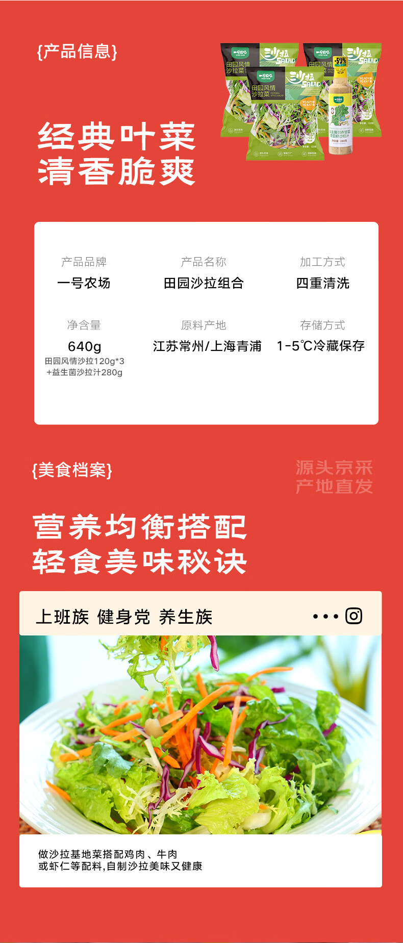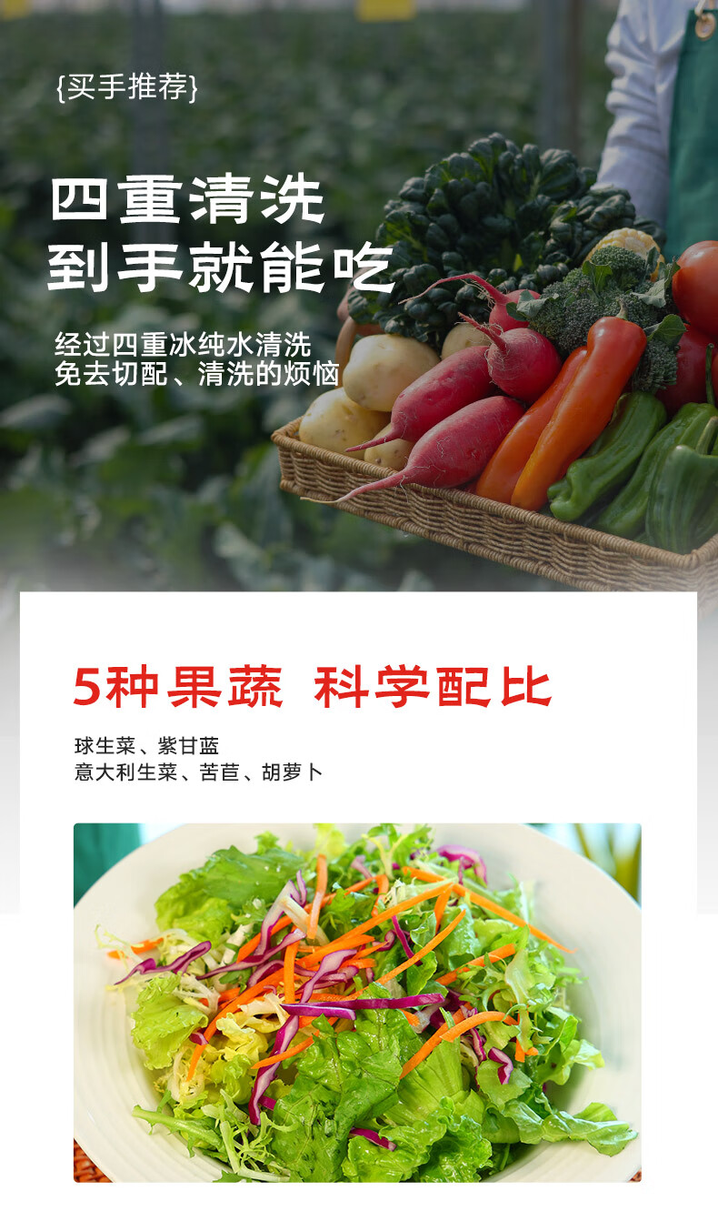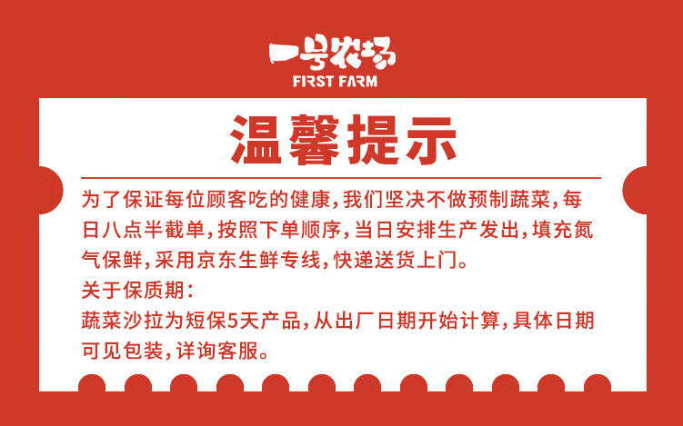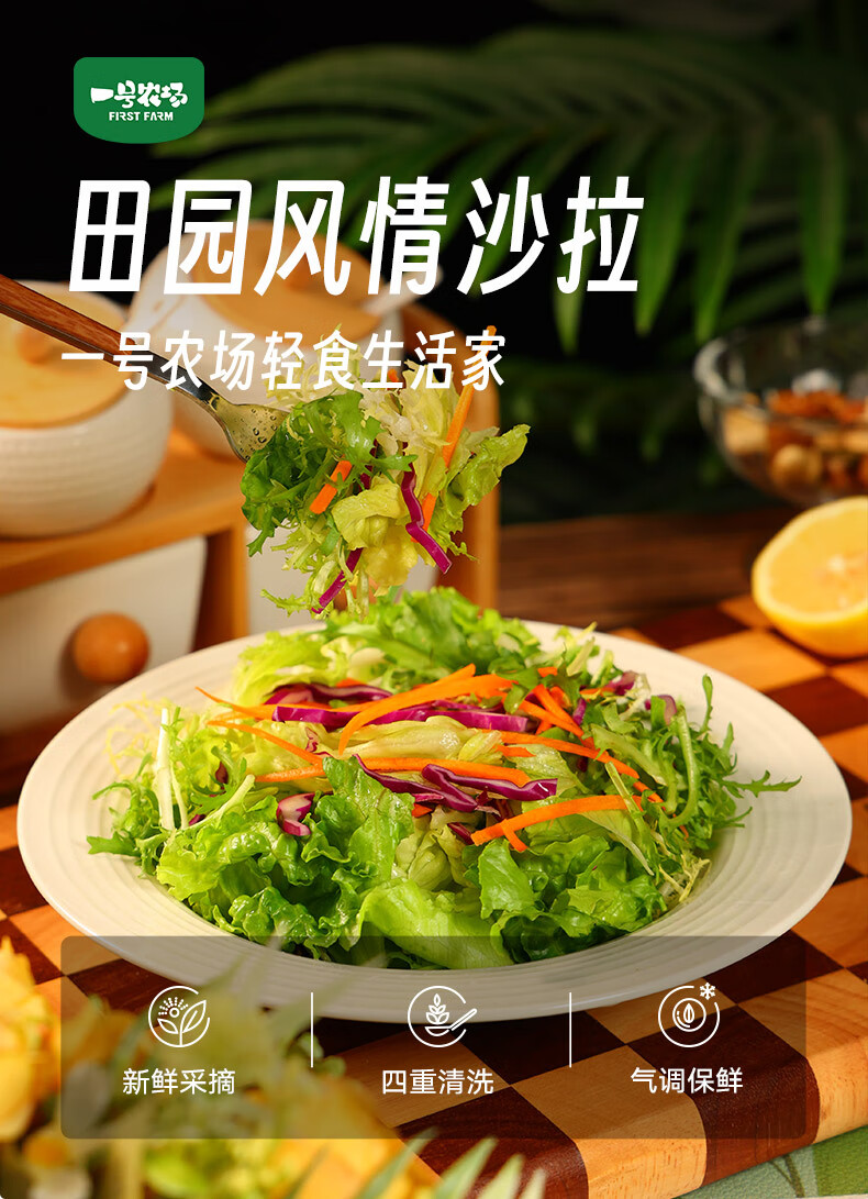一号农场即食蔬菜沙拉田园风情120g*3益生菌羽衣甘蓝沙拉酱200g*1源头直发