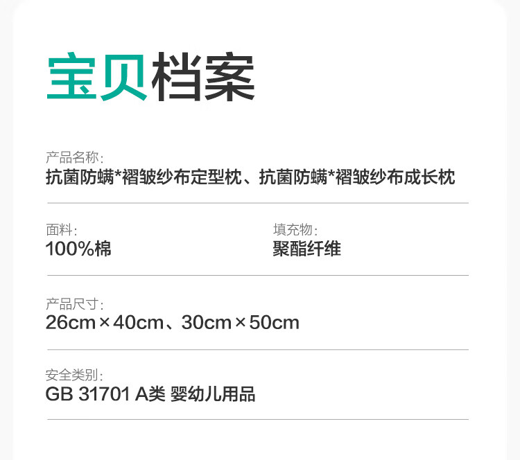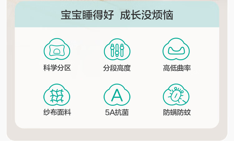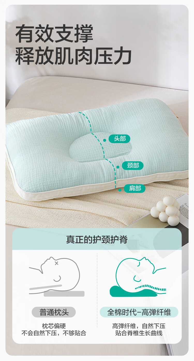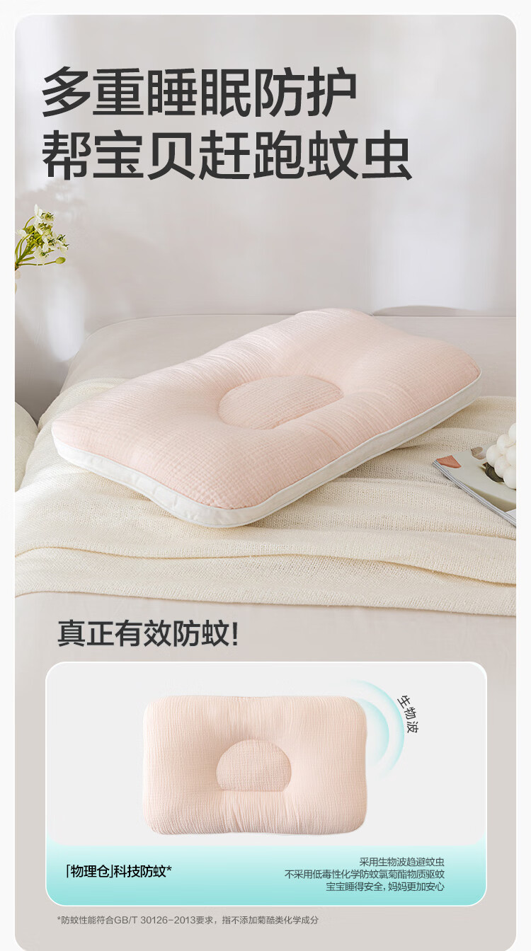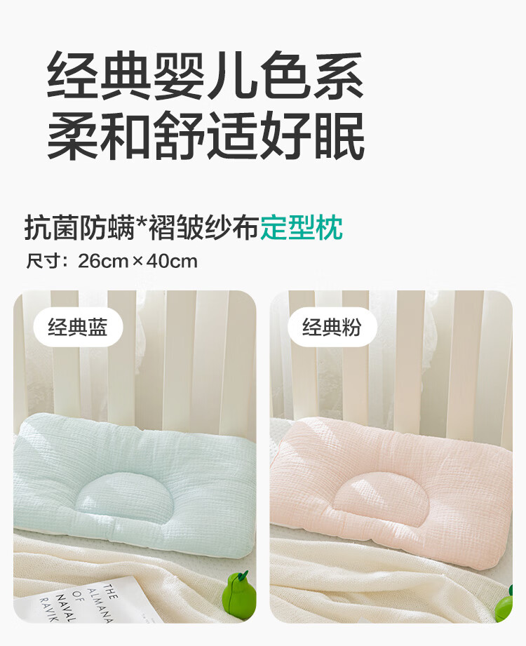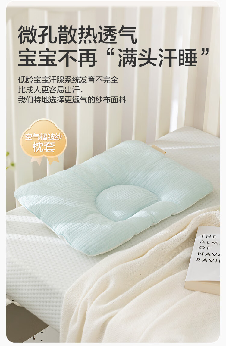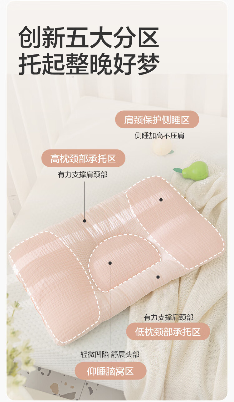 全棉时代婴儿定型枕6个月-3岁新生儿宝宝护颈枕抗菌防螨矫正头型儿童枕头