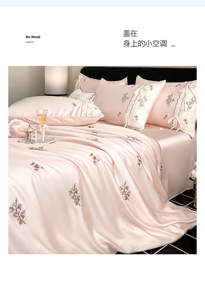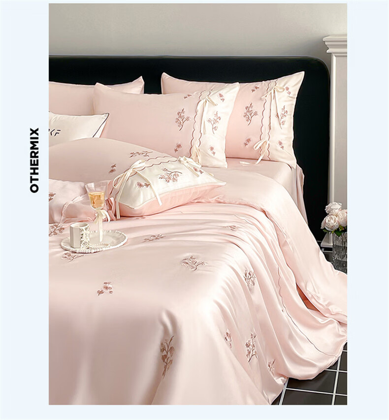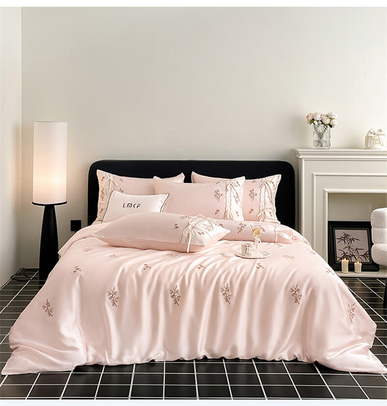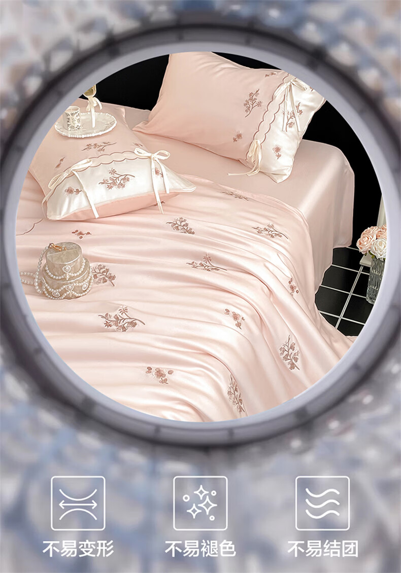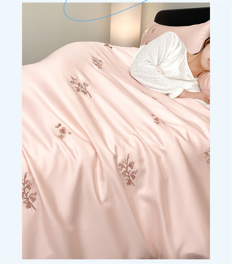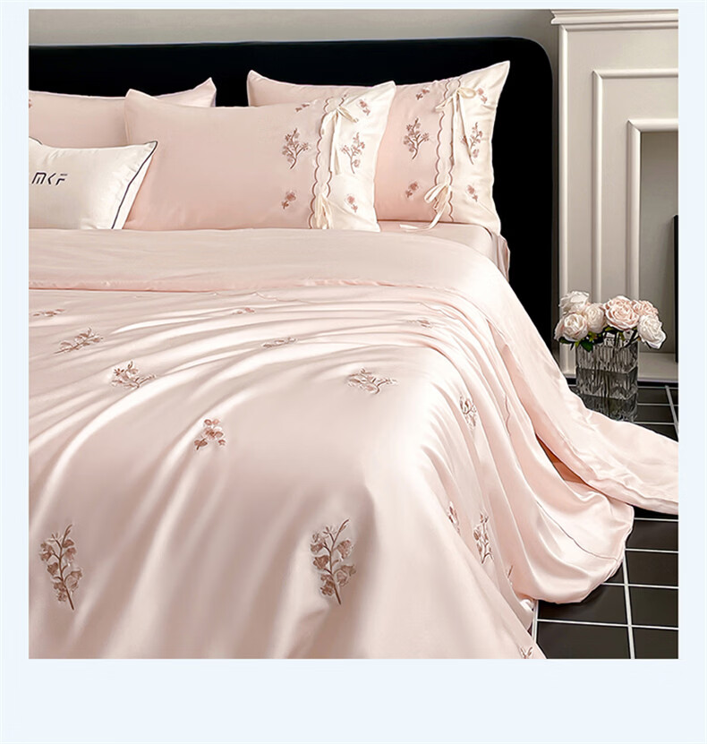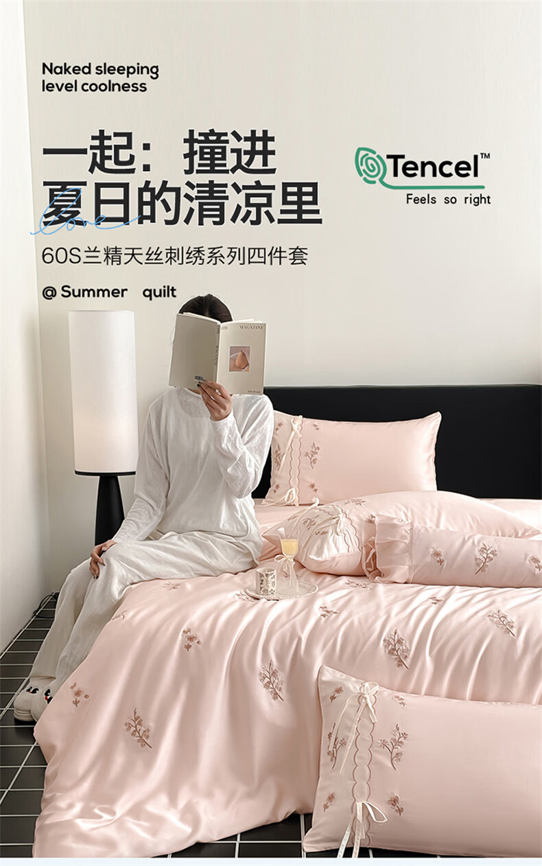 无印良品刺绣天丝四件套高端轻奢高级感夏季床单被套家用亲肤裸睡床上用品 汐语-粉 【裸睡级清凉 告别夏日黏腻】 1.8m 床单款 四件套-被套200x230cm