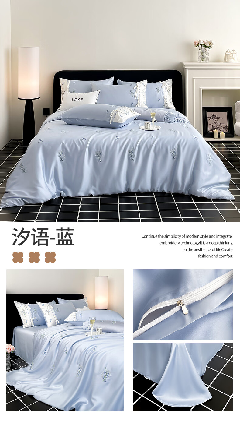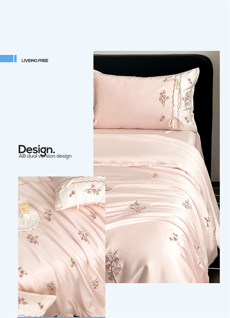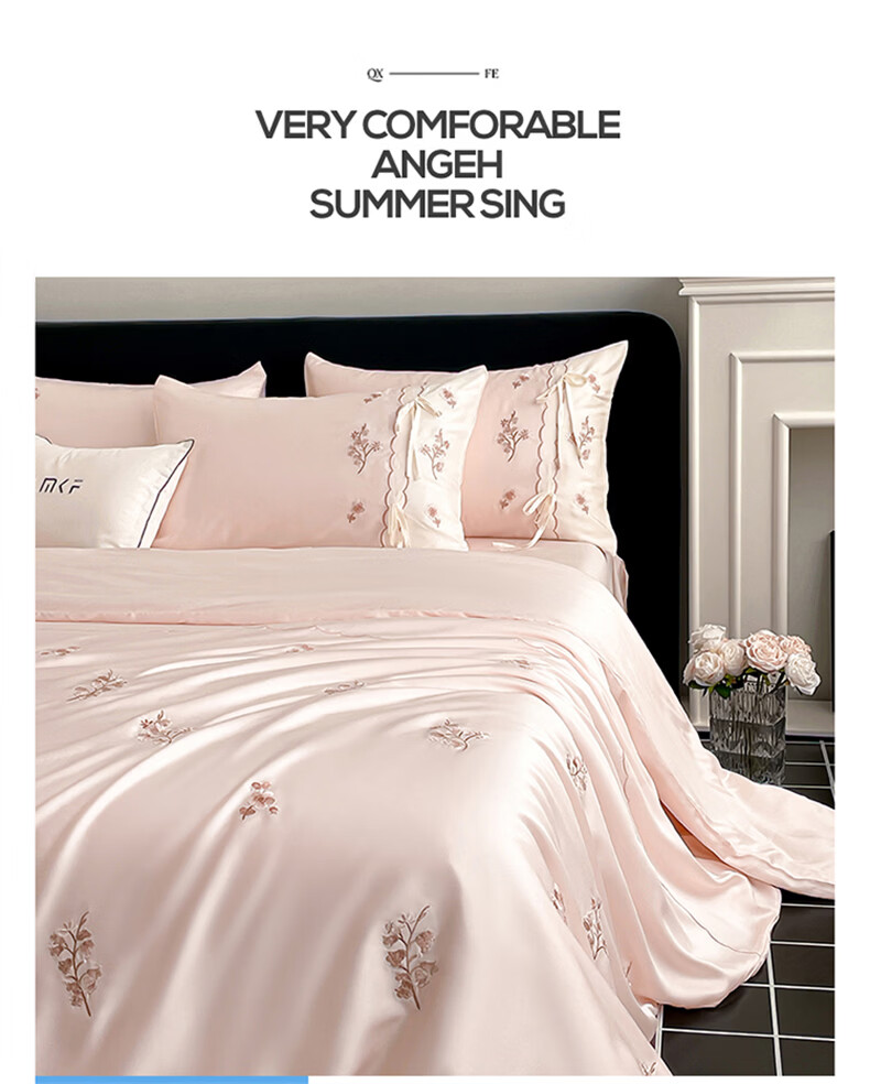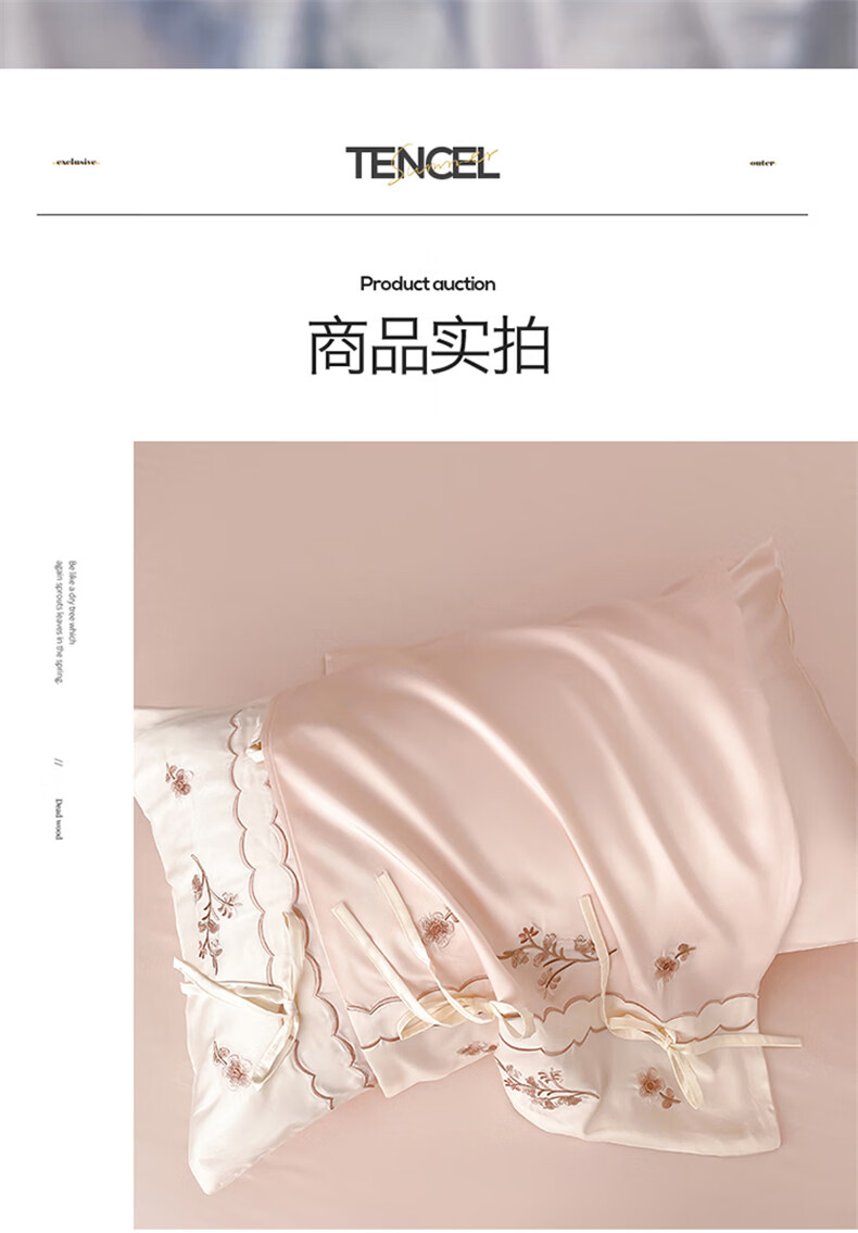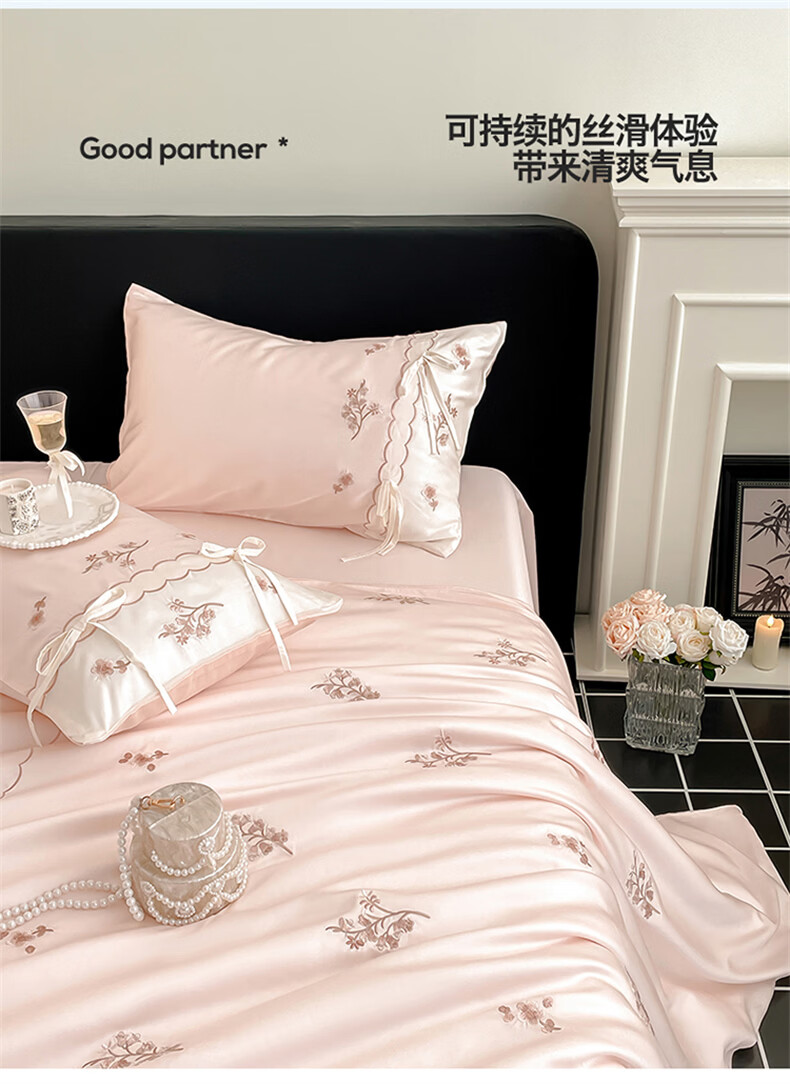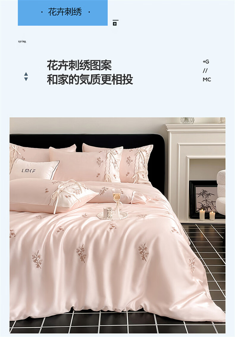 无印良品刺绣天丝四件套高端轻奢高级感夏季床单被套家用亲肤裸睡床上用品 汐语-粉 【裸睡级清凉 告别夏日黏腻】 1.8m 床单款 四件套-被套200x230cm