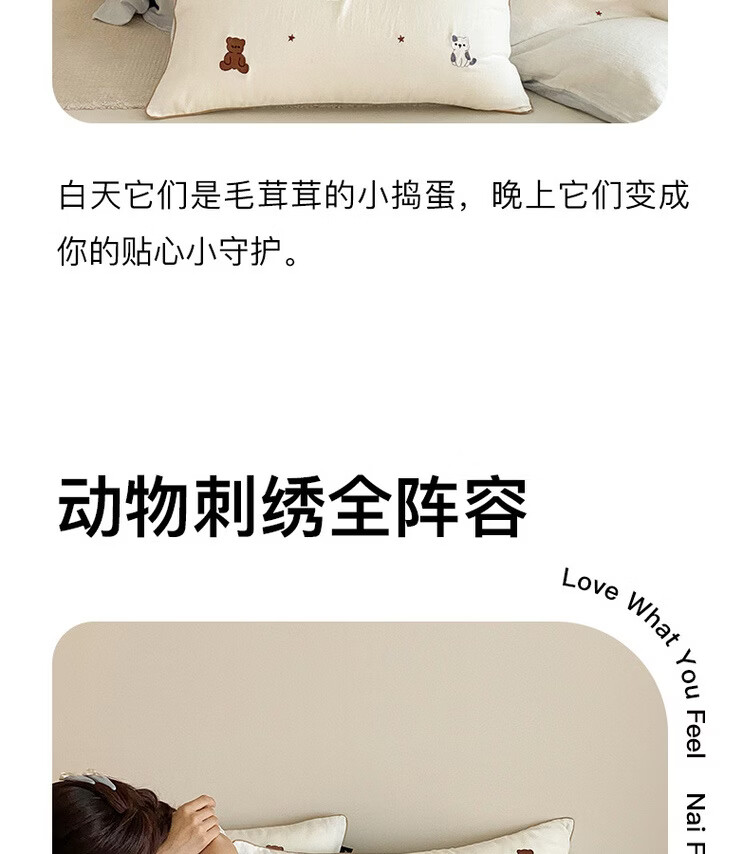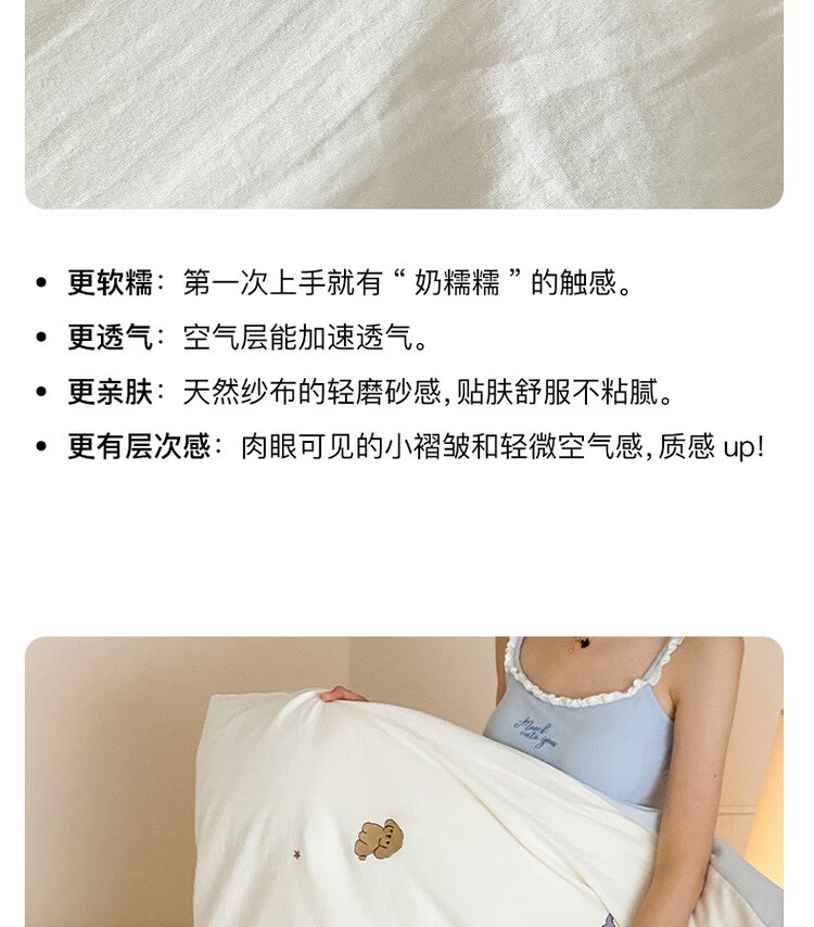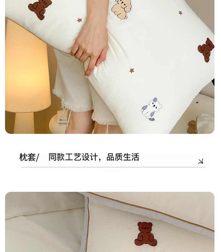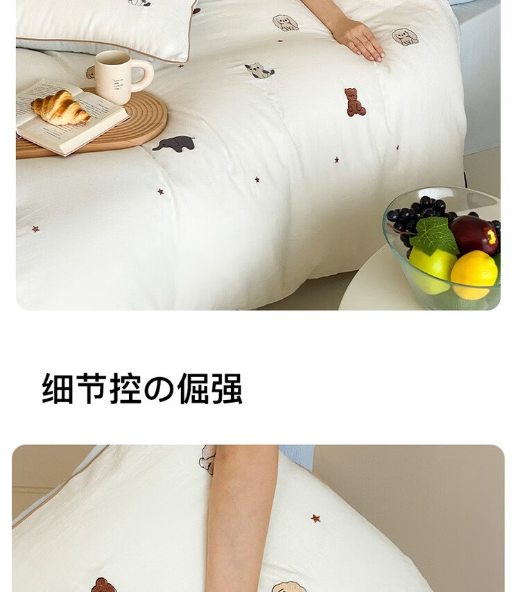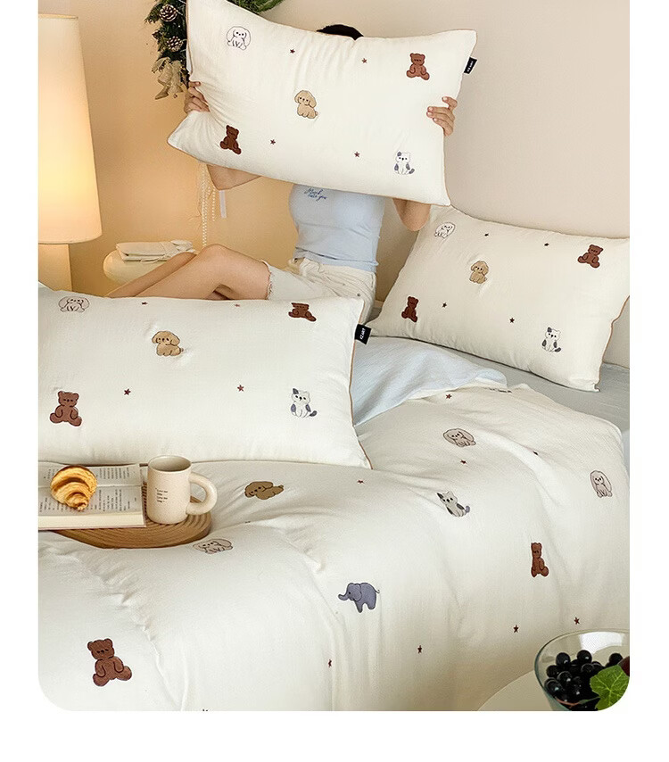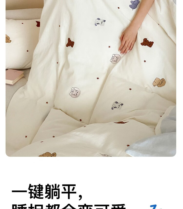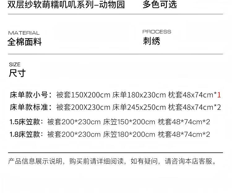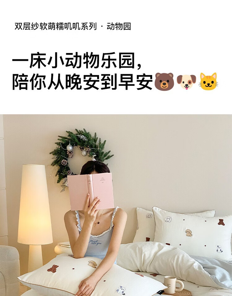 ROLAND LIVE全棉双层纱软萌卡通四件套亲肤透气被套床单儿童卧室三件套 KZ 全棉双层纱套件-动物园香槟白 1.2米床 床单款 【被套150*200cm】