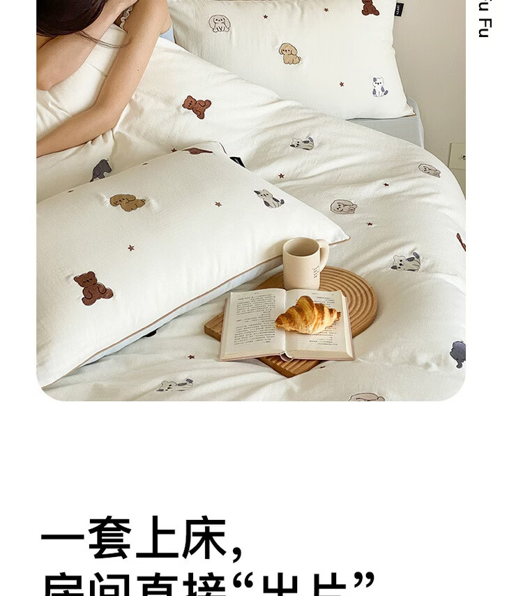 无印良品100%全棉床上四件套纯棉2026新款卡通狗狗被套床单床笠款床品套件 黑白西高地【100%全棉亲肤柔软】 床单款 1.8m四件套-被套200x230cm