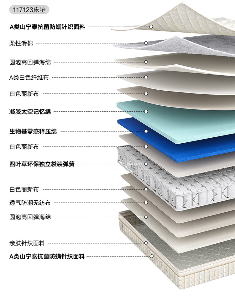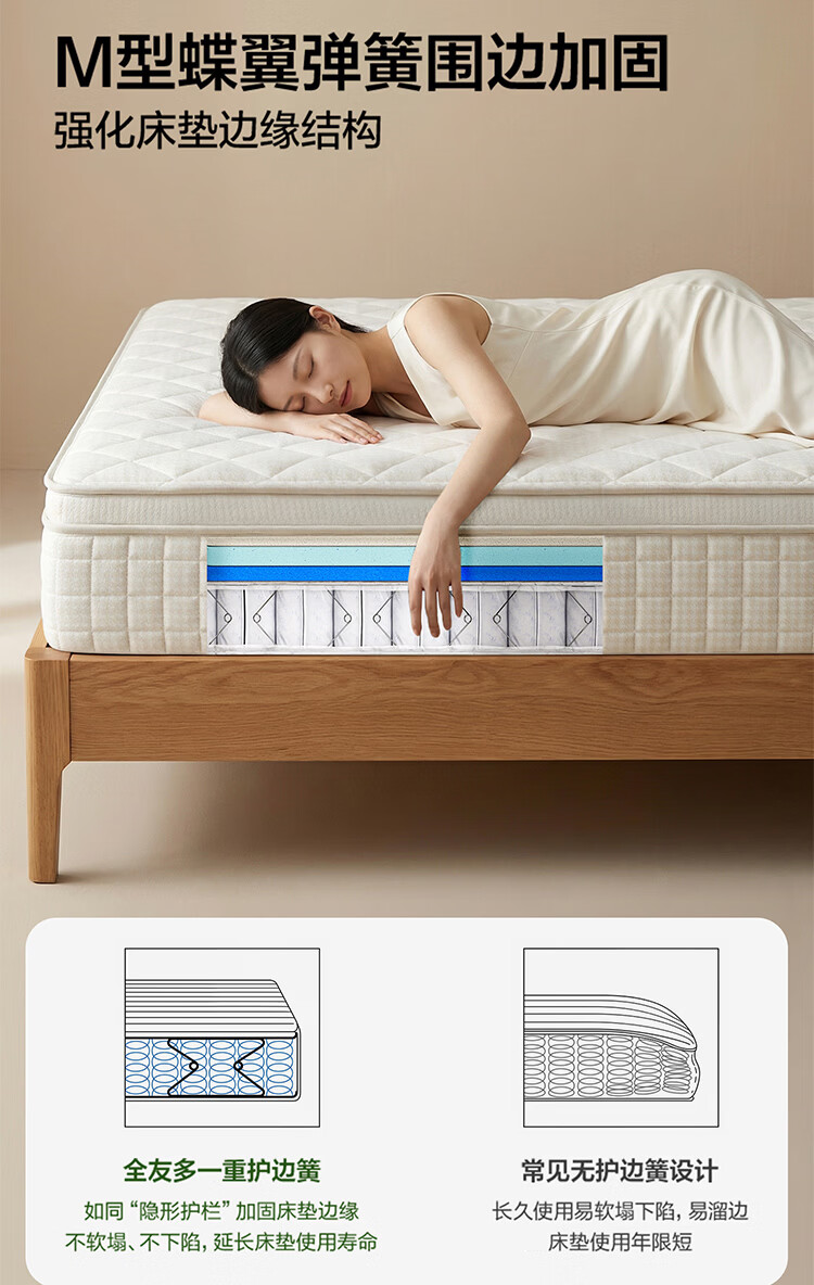 全友家居0胶水天然乳胶床垫记忆棉独立装袋弹簧席梦思床垫全身可拆洗 【0胶水+全拆可调节+母婴级面料】床垫(厚23cm) 1.5x2米