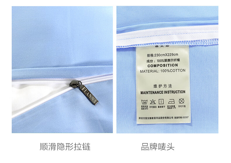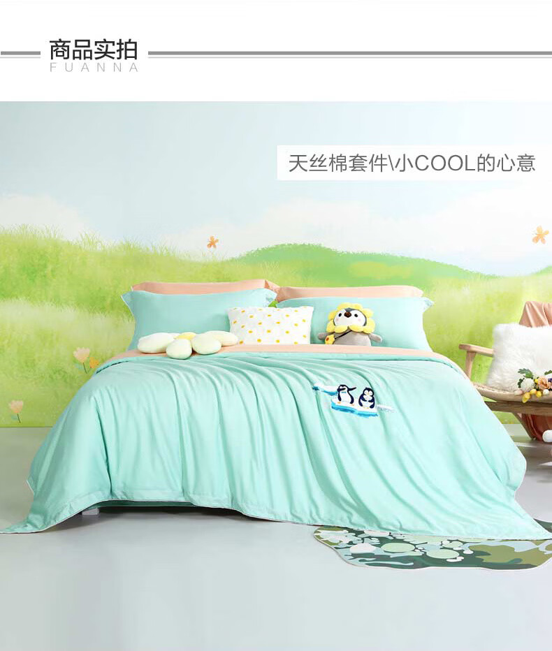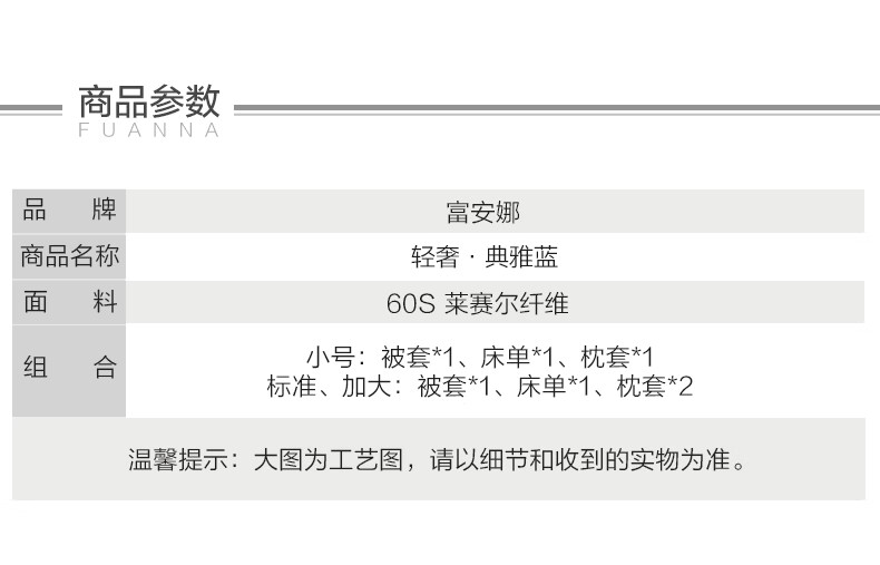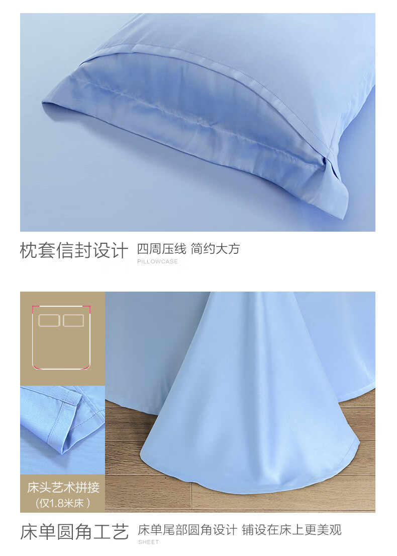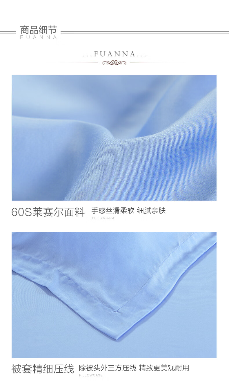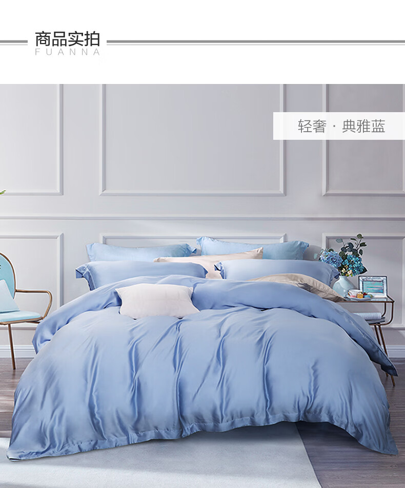 富安娜 【断码特价】床上四件套莱赛尔凉感天丝床单被套 40支天丝-典雅蓝/被套203*229cm