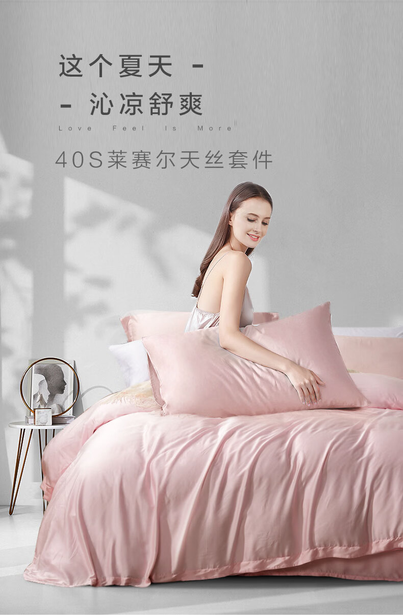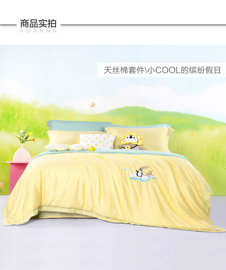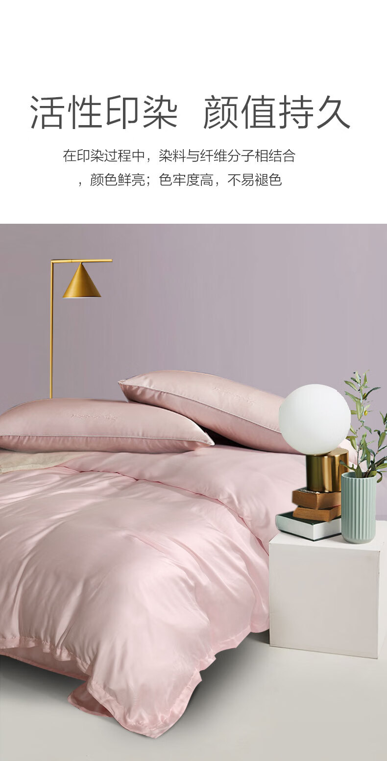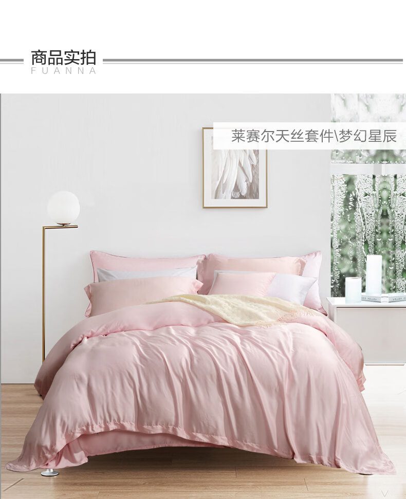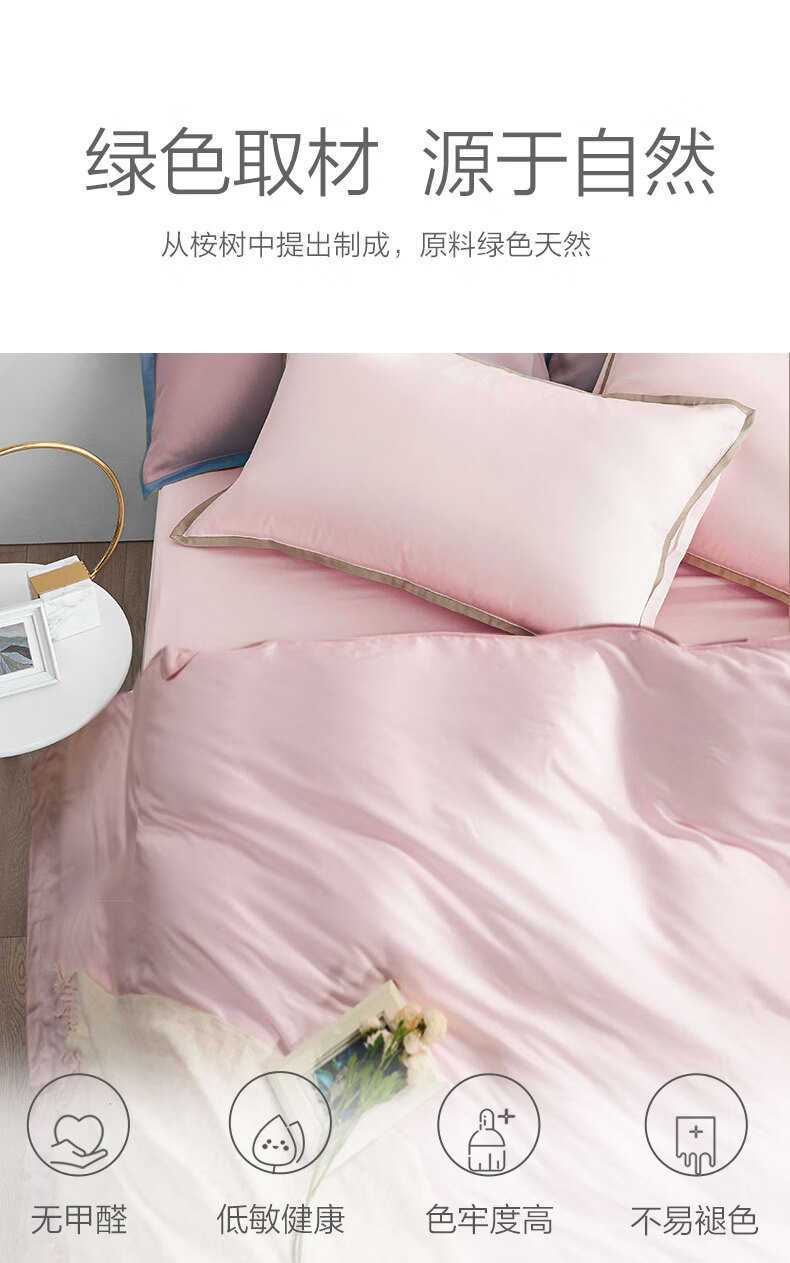 富安娜 【断码特价】床上四件套莱赛尔凉感天丝床单被套 40支天丝-典雅蓝/被套203*229cm