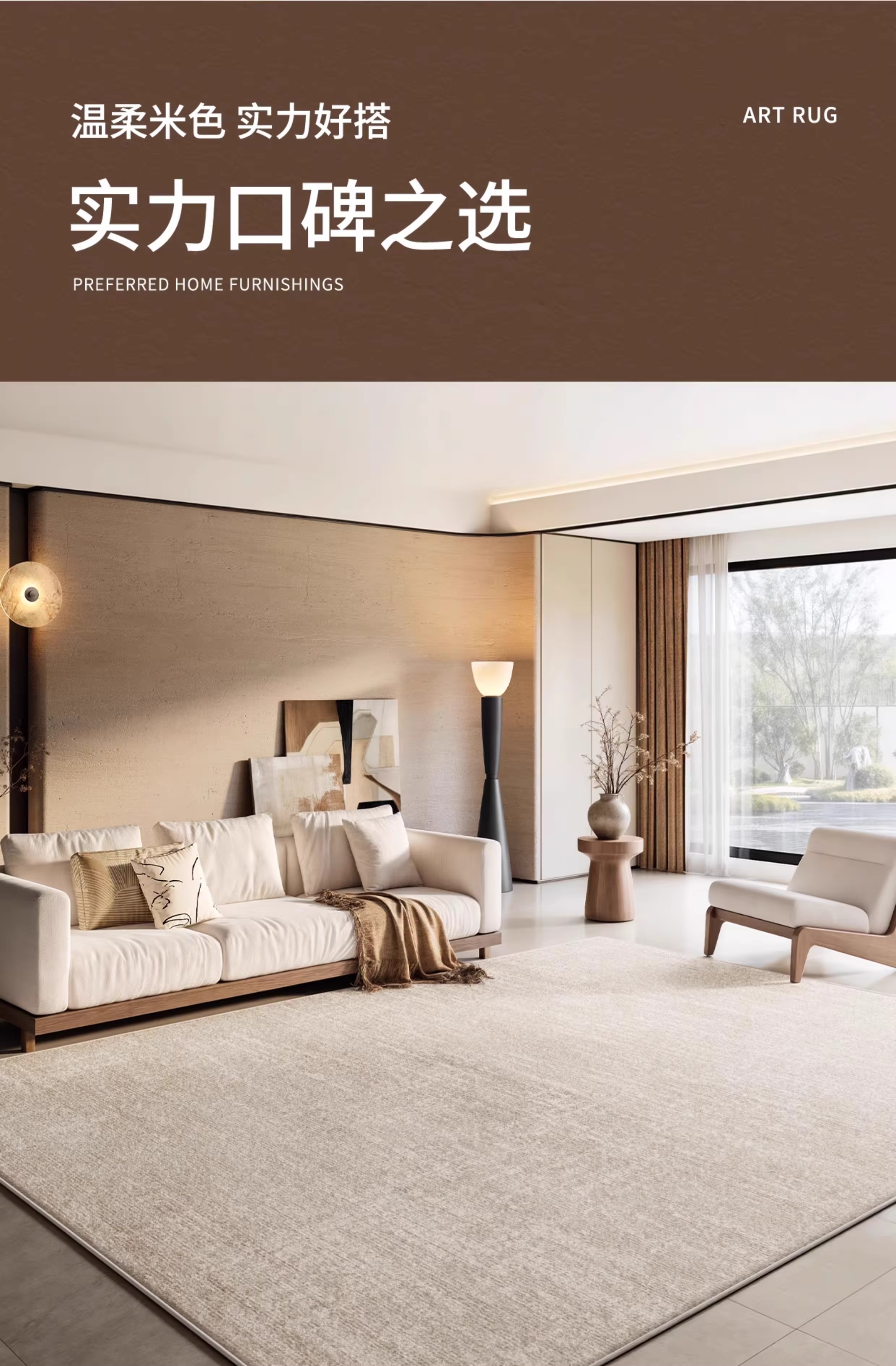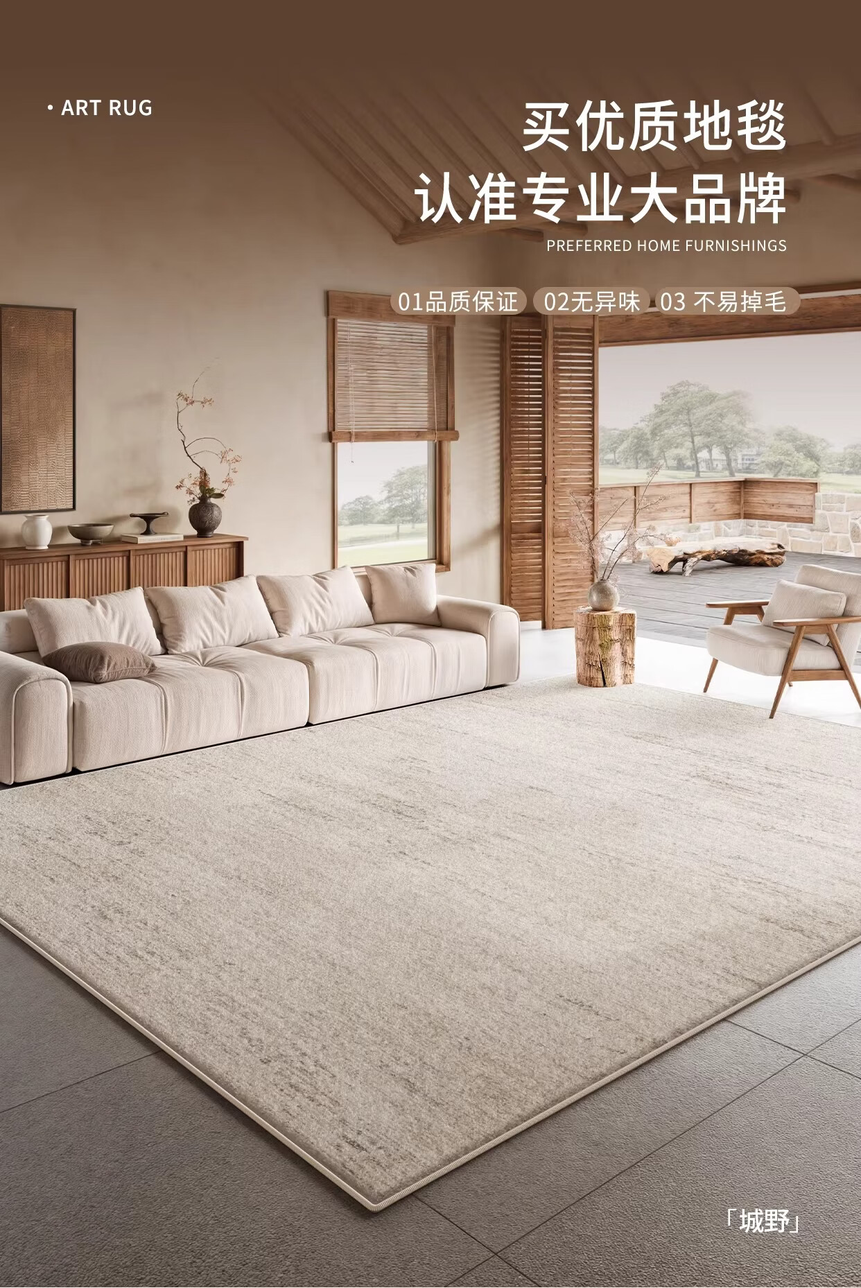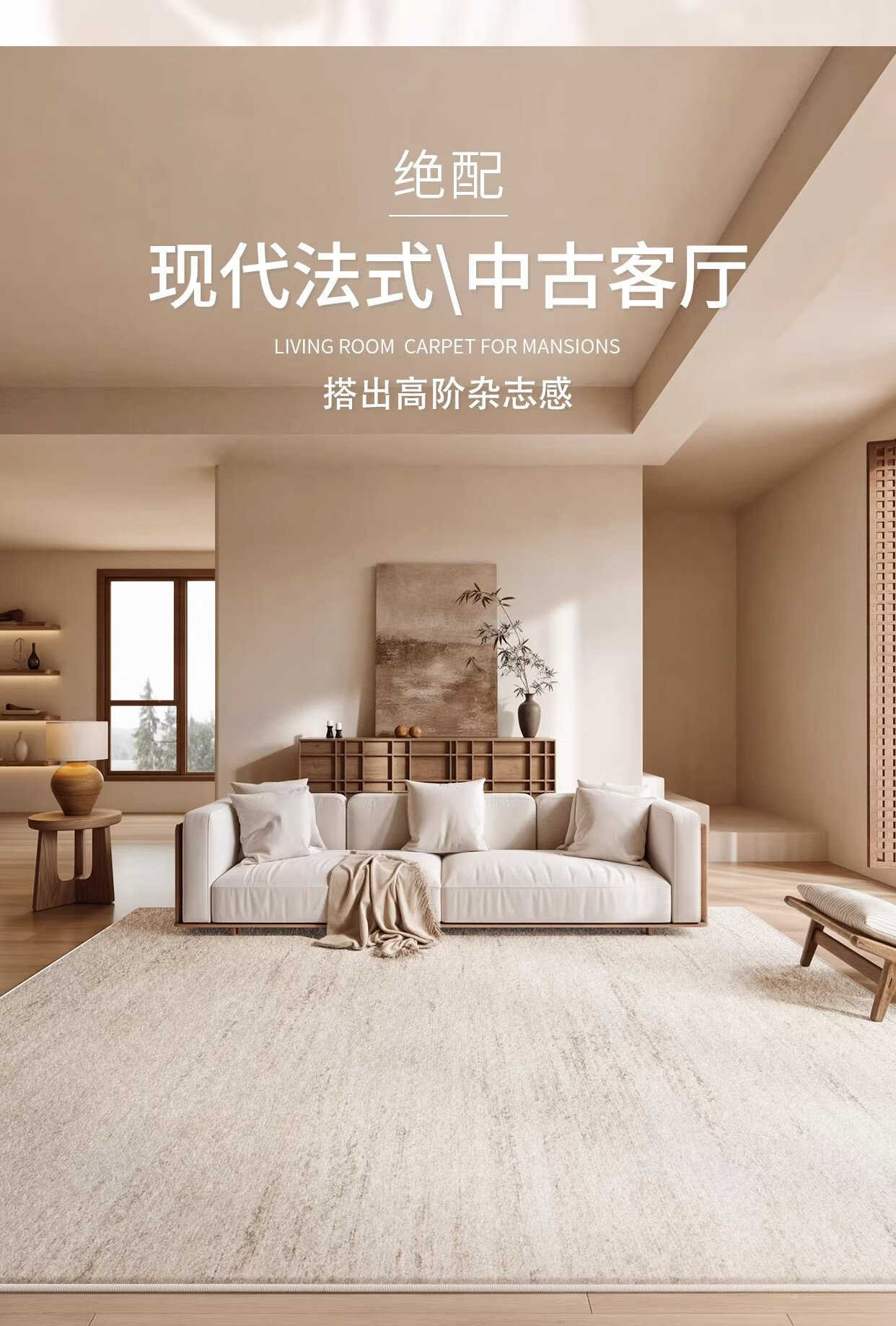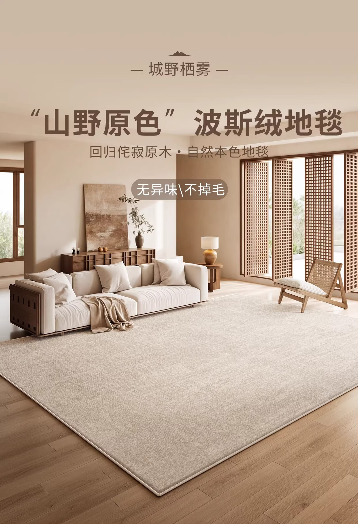 著忆地毯客厅2026新款原木侘寂风高级感防水防污免洗沙发卧室床边地垫 S波斯绒-林语 定制尺寸【联系客服】