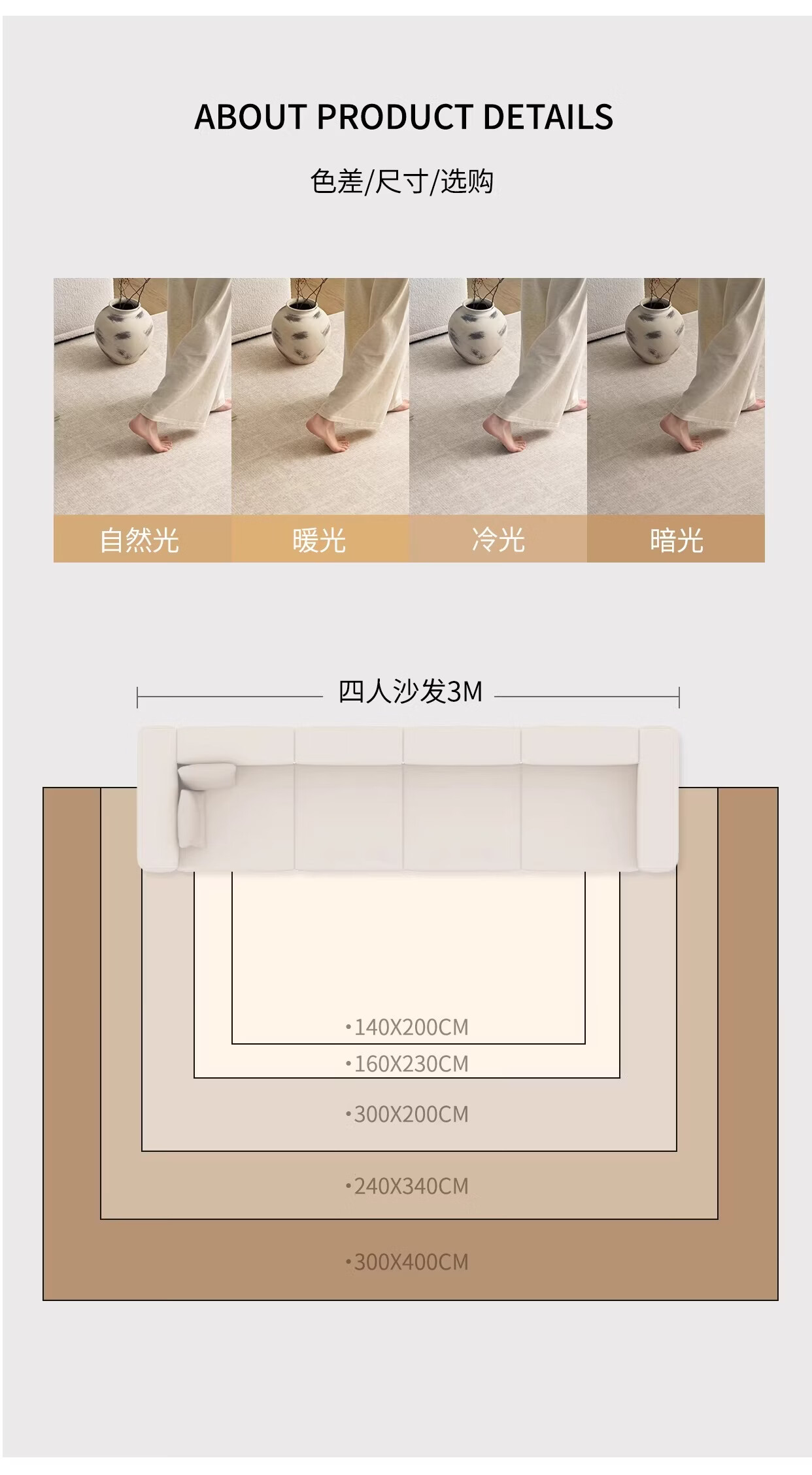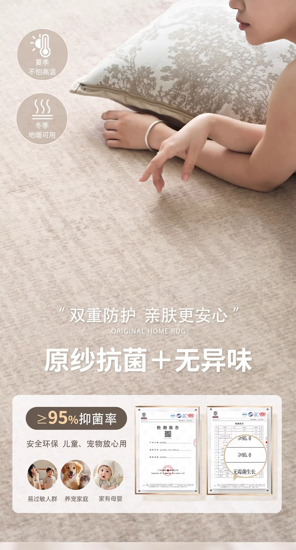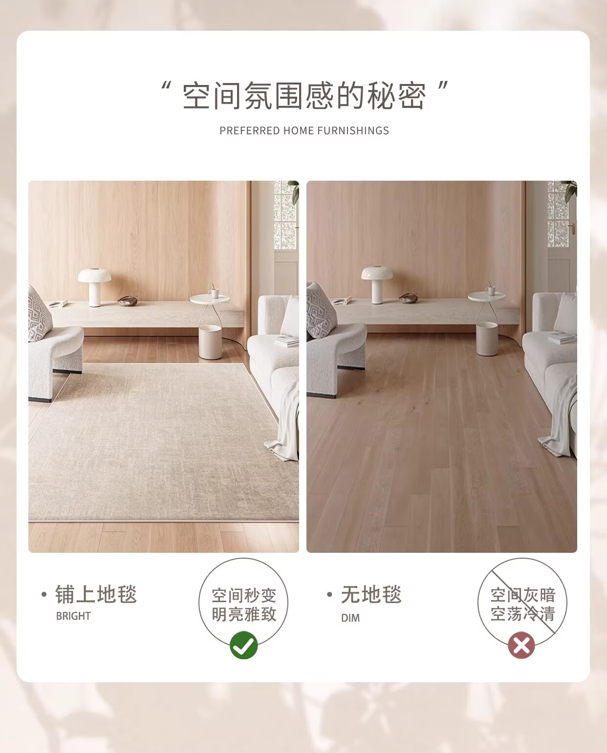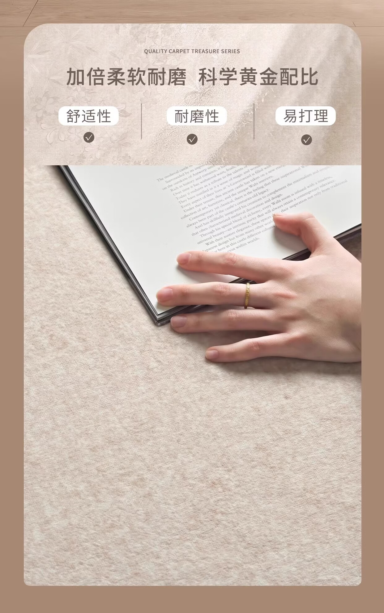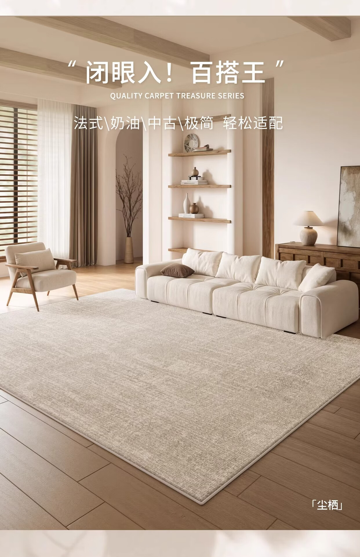 著忆地毯客厅2026新款原木侘寂风高级感防水防污免洗沙发卧室床边地垫 S波斯绒-林语 定制尺寸【联系客服】