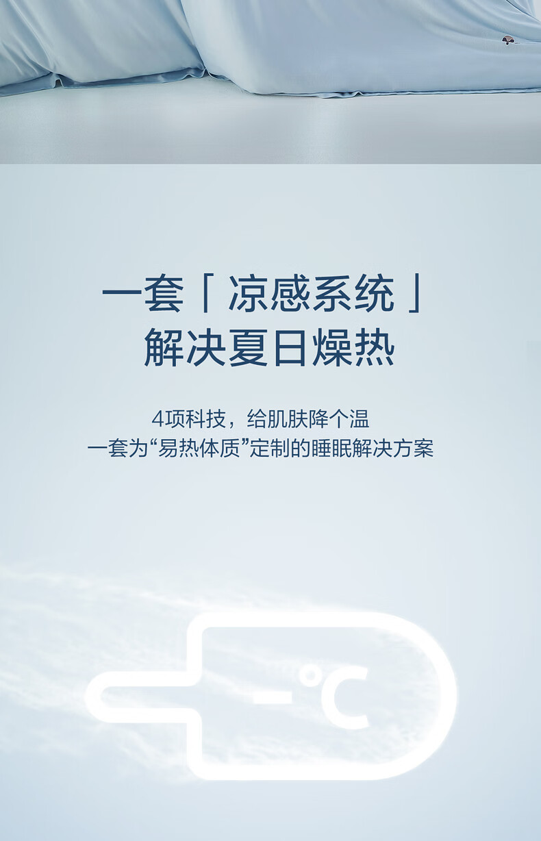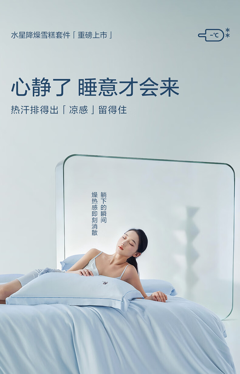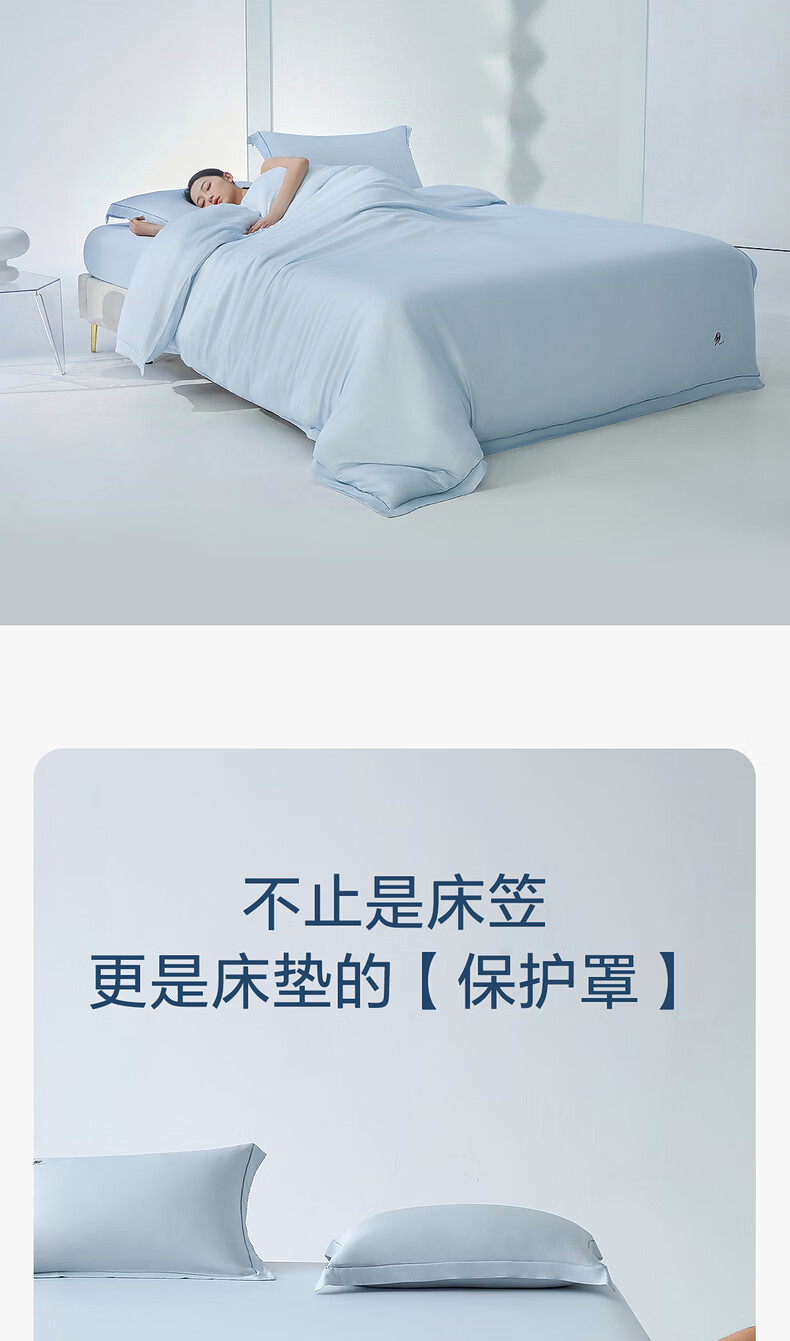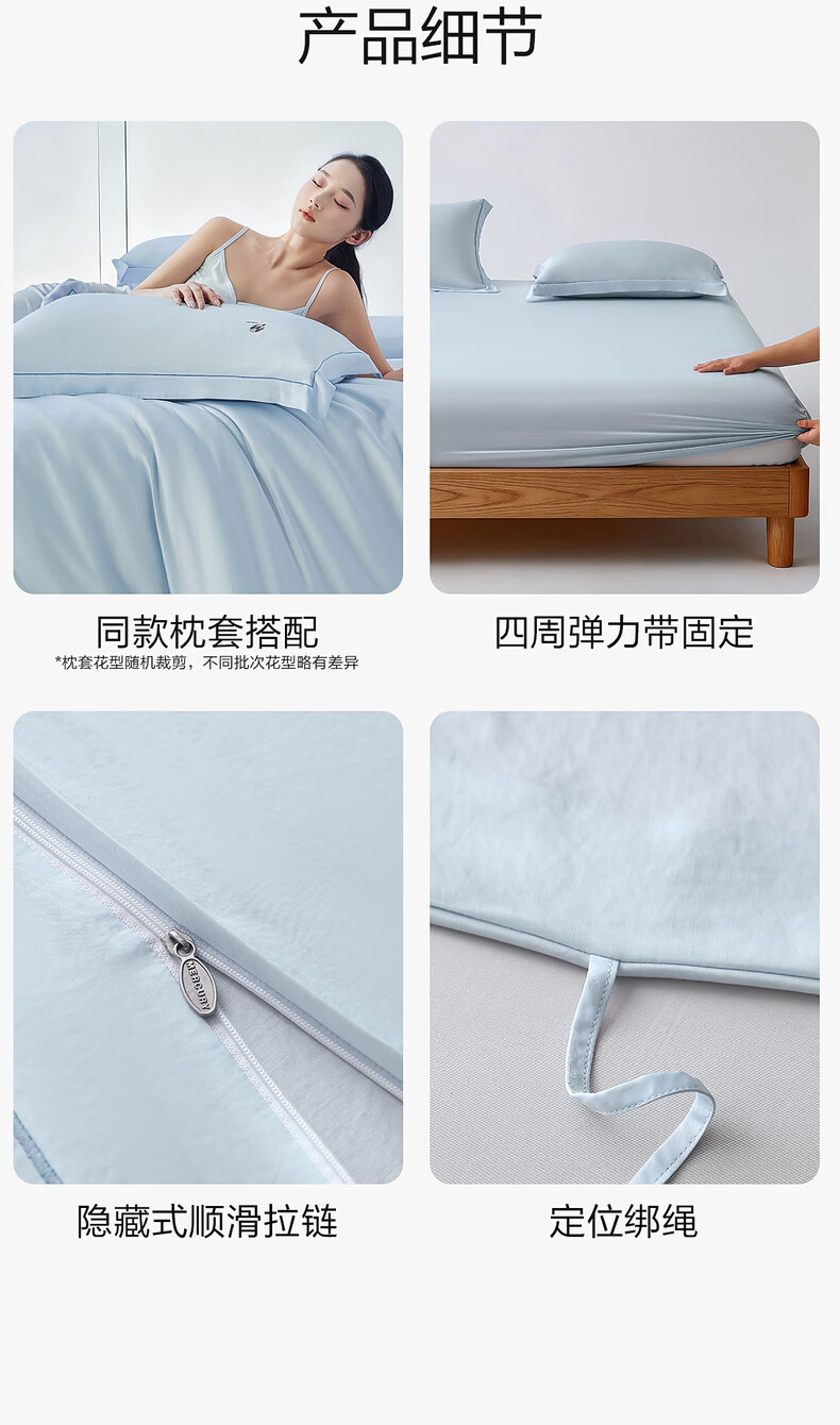 水星家纺四件套 夏季凉感降燥雪糕 套件丝滑干爽透气凉感床品26新款 【一触即凉+母婴A类+吸湿速干】降燥雪糕系列·蓝 床笠款 (被套200*230cm)