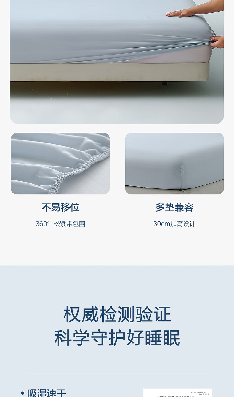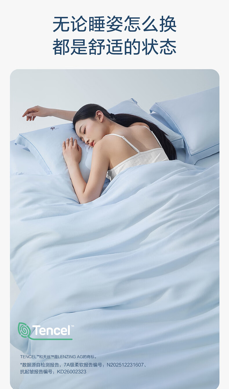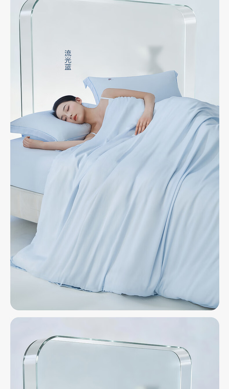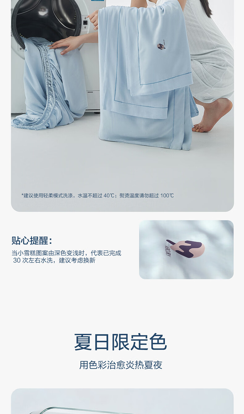 水星家纺四件套 夏季凉感降燥雪糕 套件丝滑干爽透气凉感床品26新款 【一触即凉+母婴A类+吸湿速干】降燥雪糕系列·蓝 床笠款 (被套200*230cm)