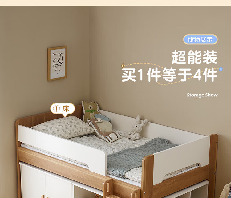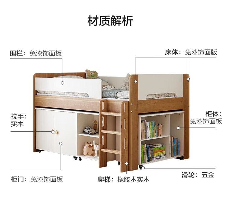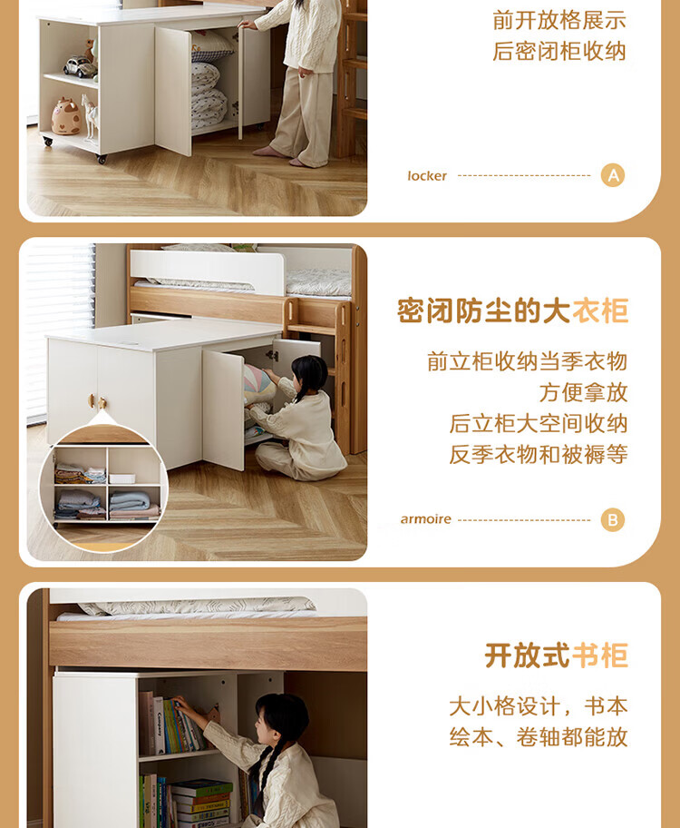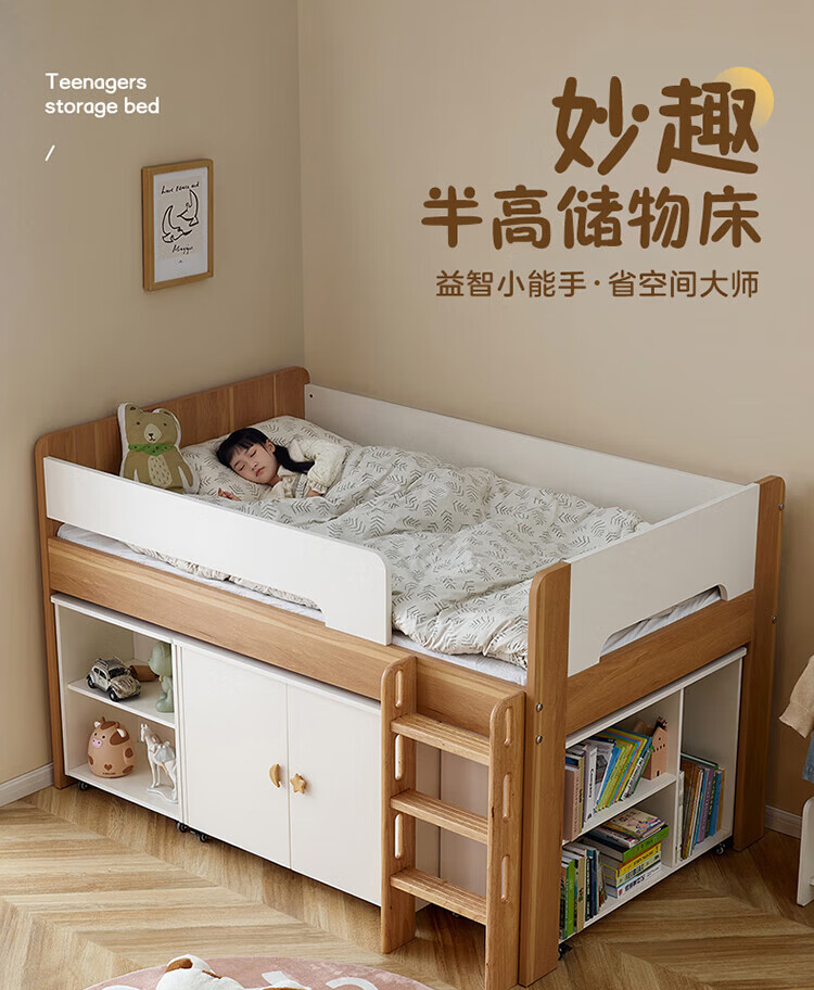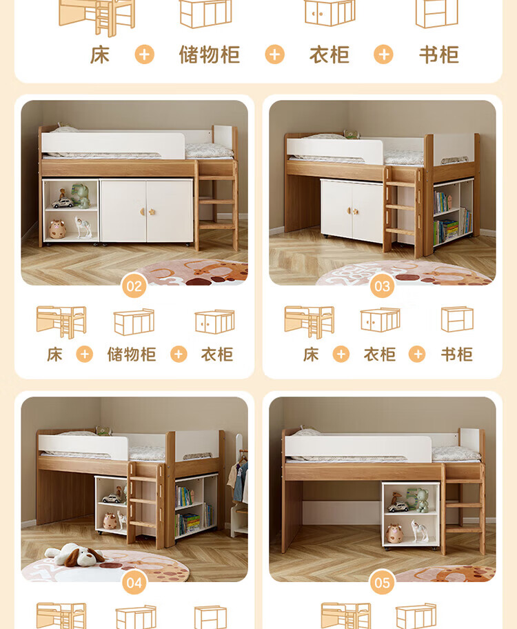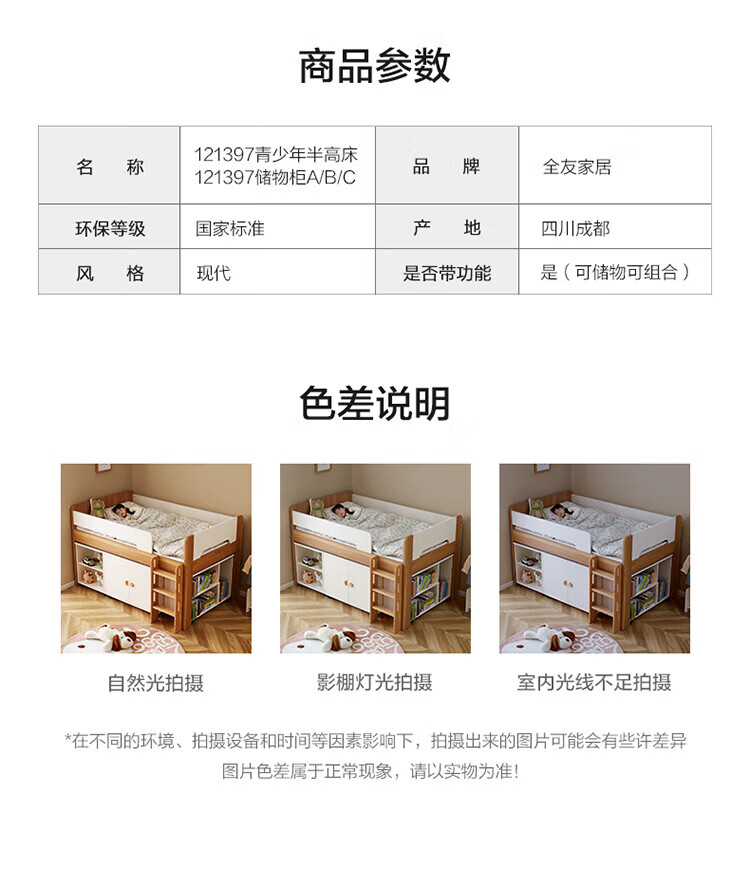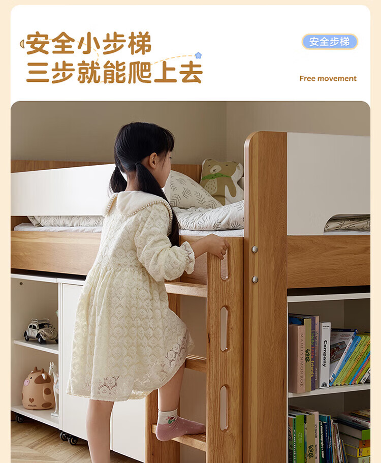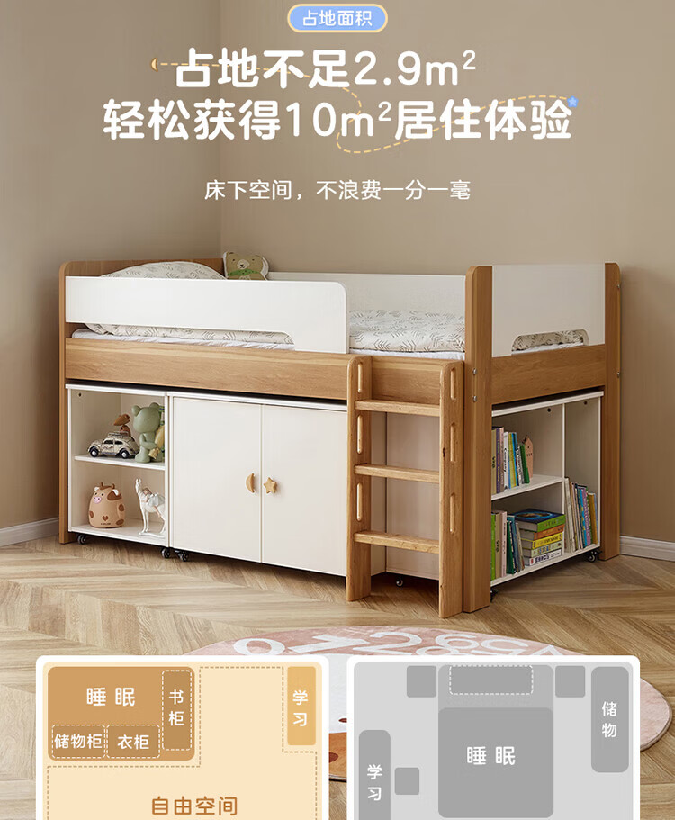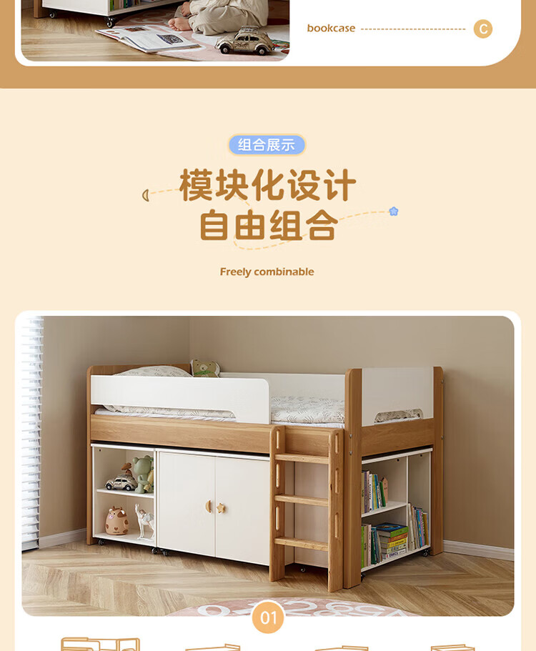 全友家居原木风学生单人床1米2小户型上床下柜半高床组合储物柜套装 【开放式书柜款】0.9m储物柜C