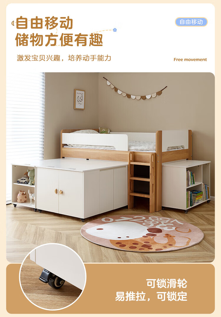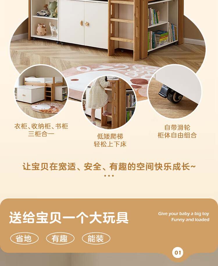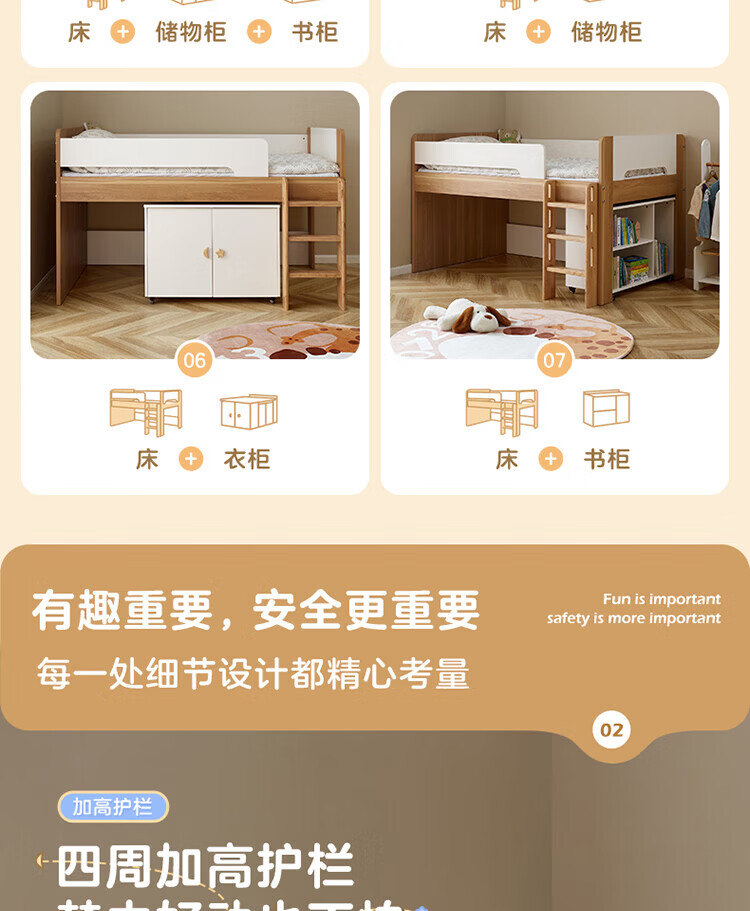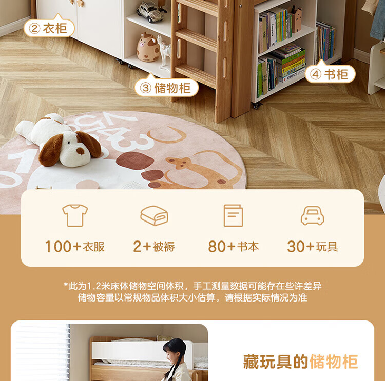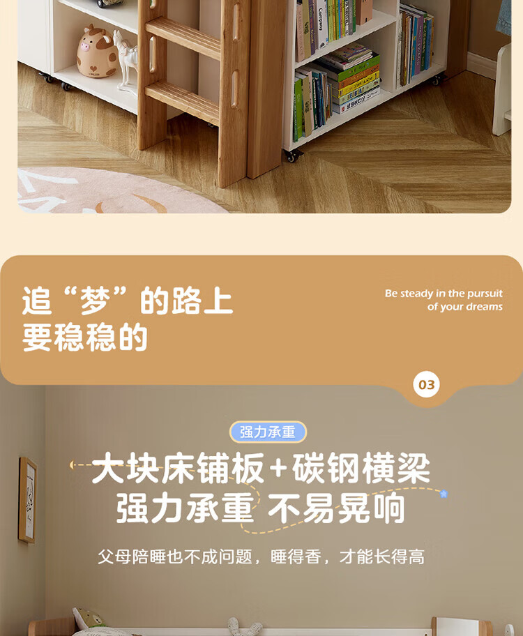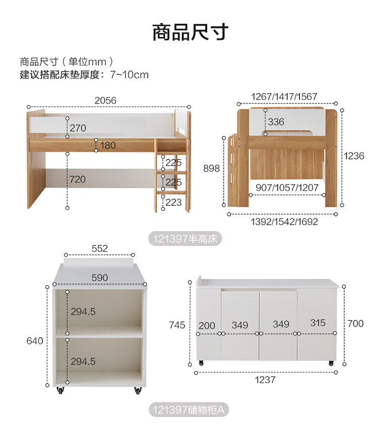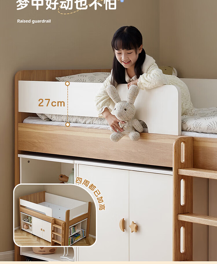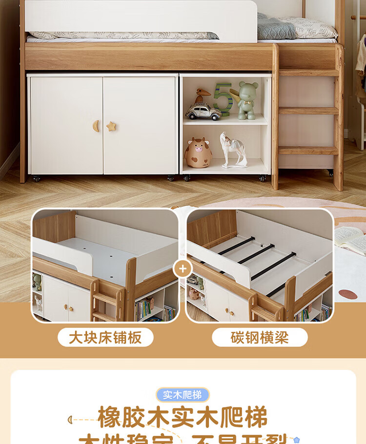 全友家居原木风学生单人床1米2小户型上床下柜半高床组合储物柜套装 【开放式书柜款】0.9m储物柜C