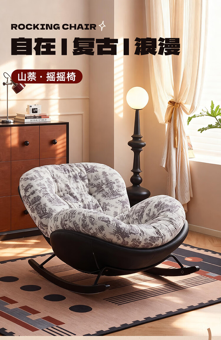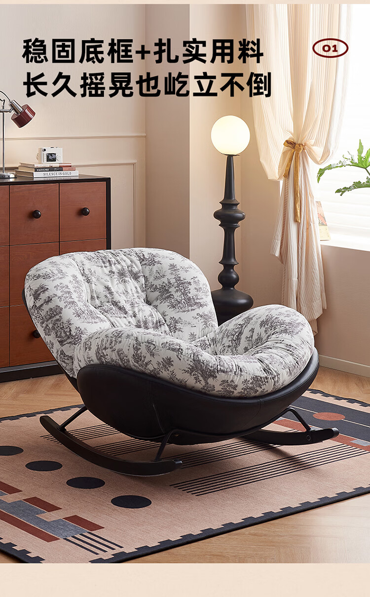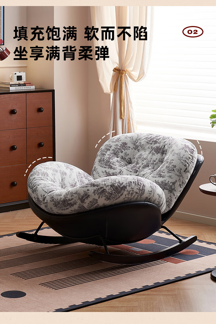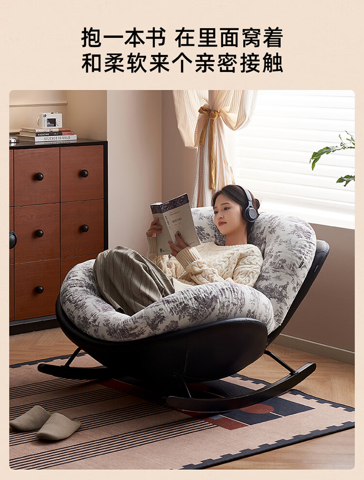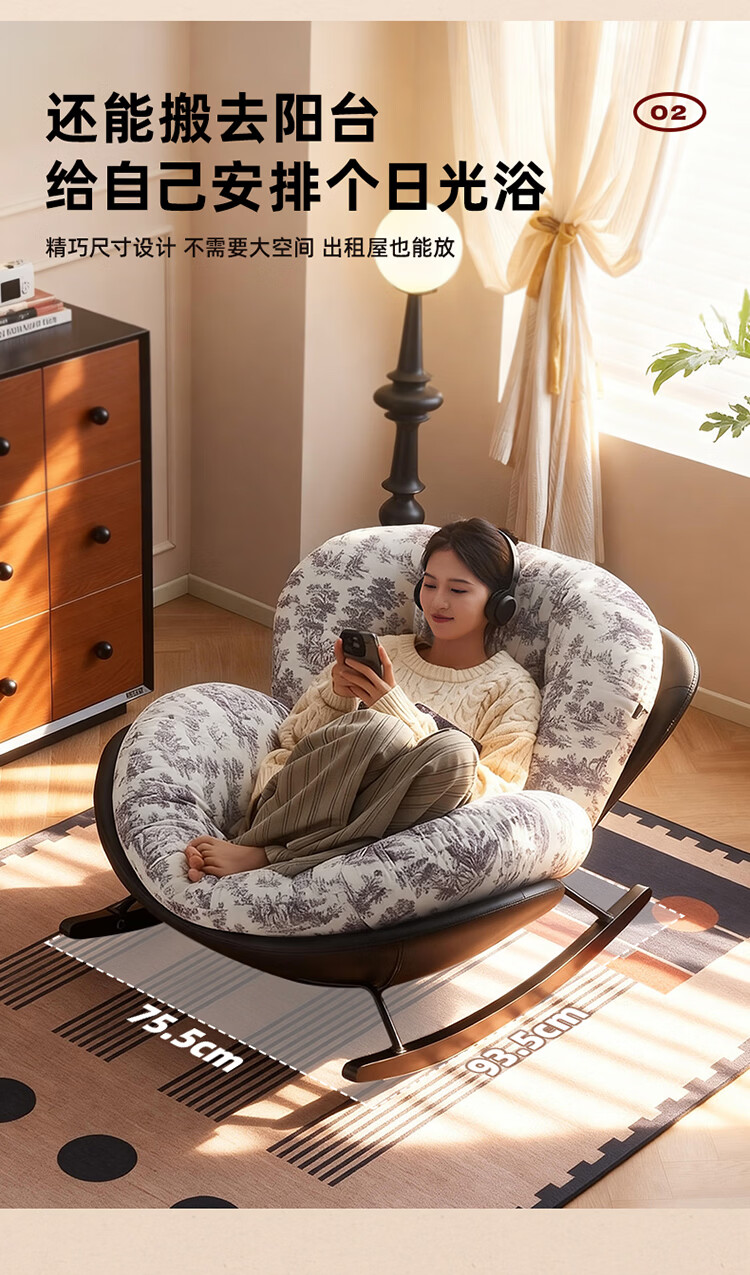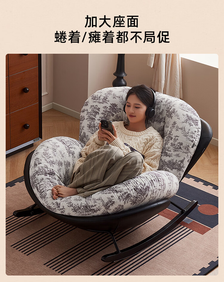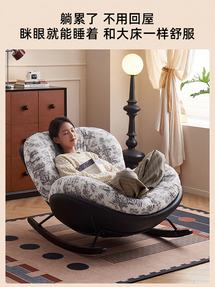 全友家居蛋壳摇摇椅躺椅午睡椅一体阳台家用休闲懒人沙发椅单人新款 【复古印花绒布】摇摇椅