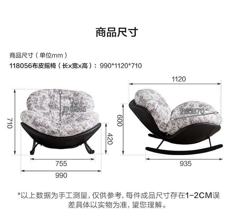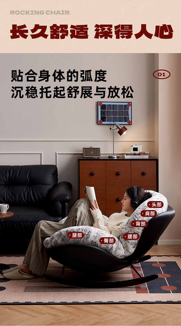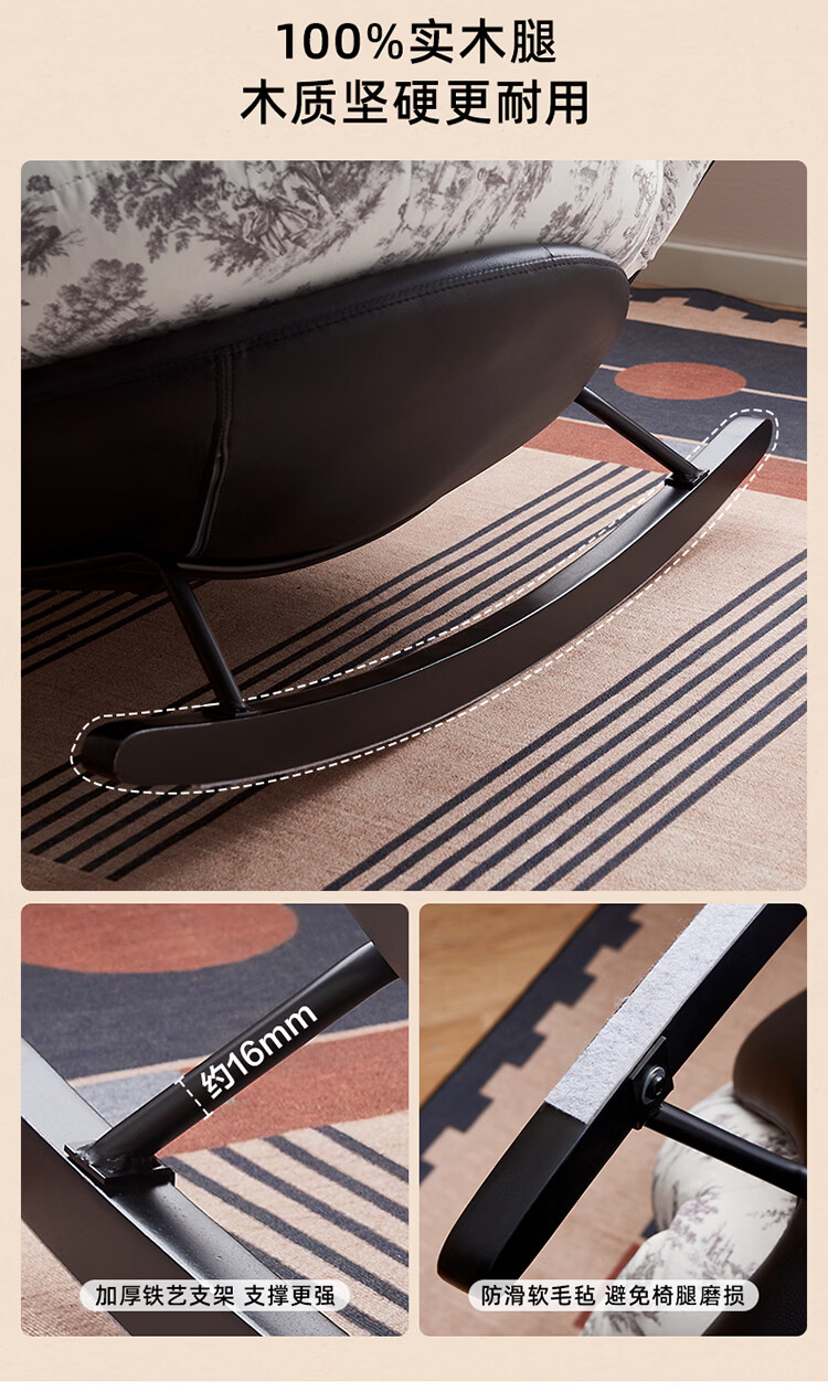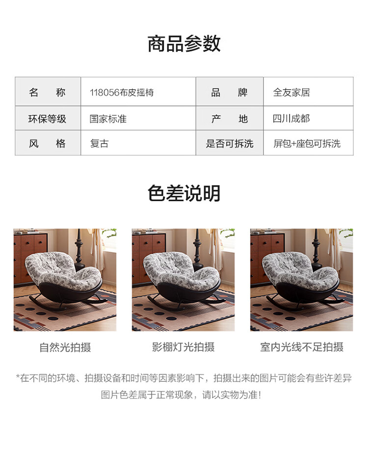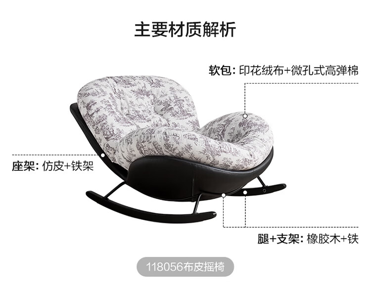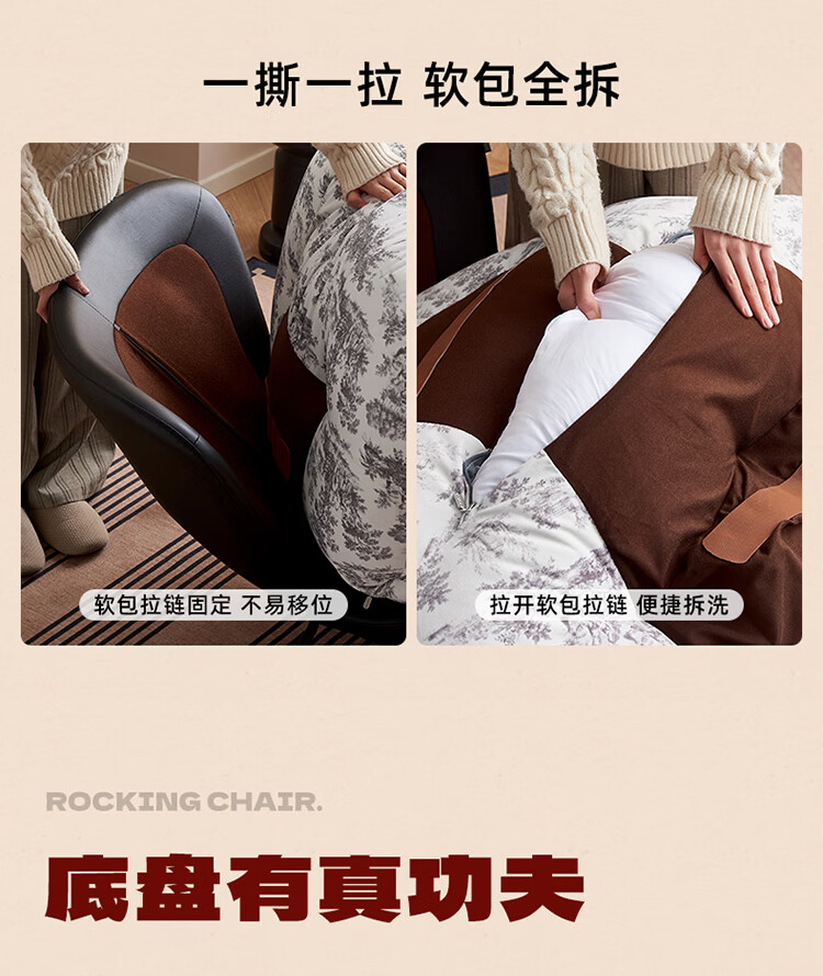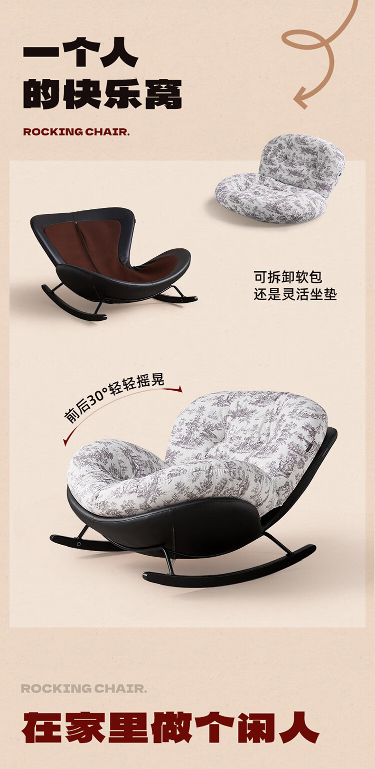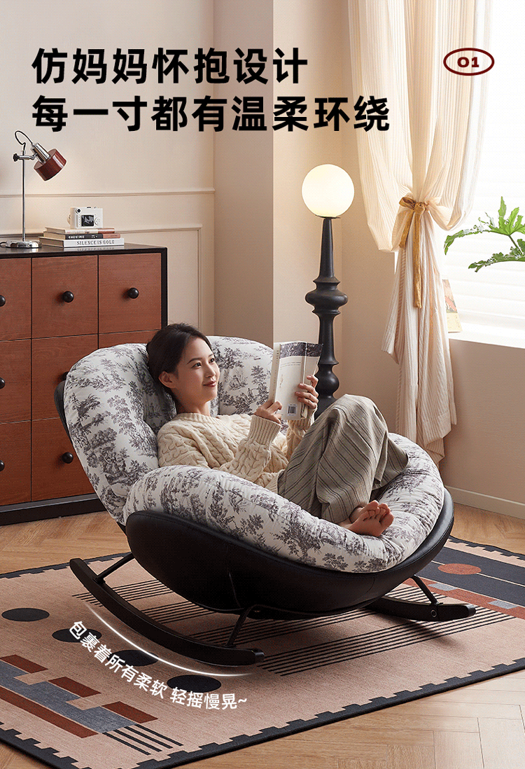 全友家居蛋壳摇摇椅躺椅午睡椅一体阳台家用休闲懒人沙发椅单人新款 【复古印花绒布】摇摇椅