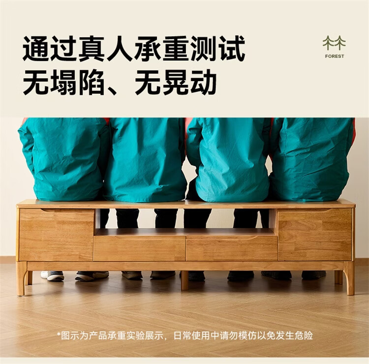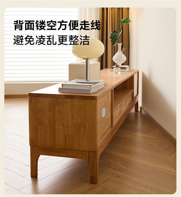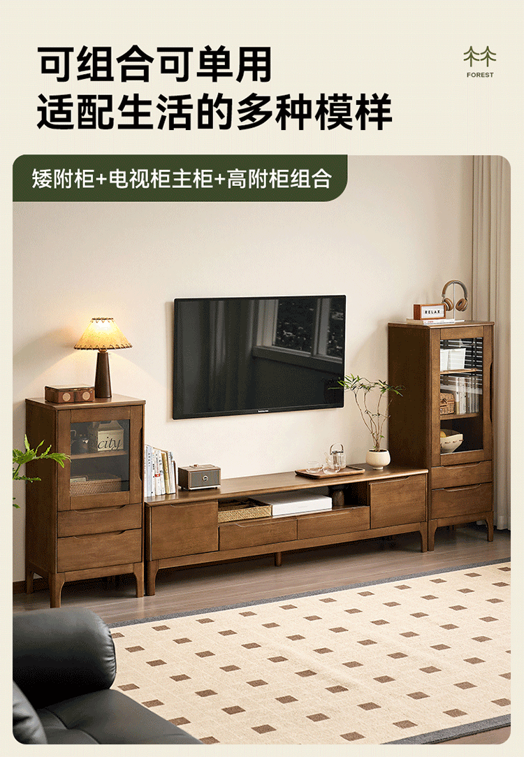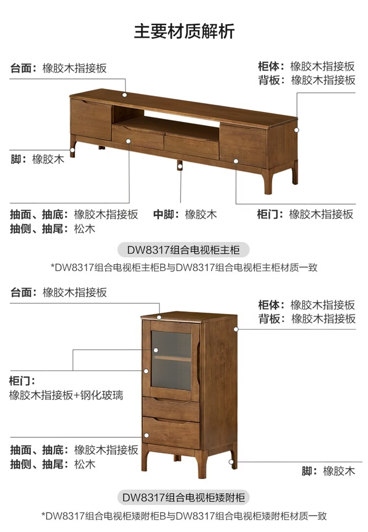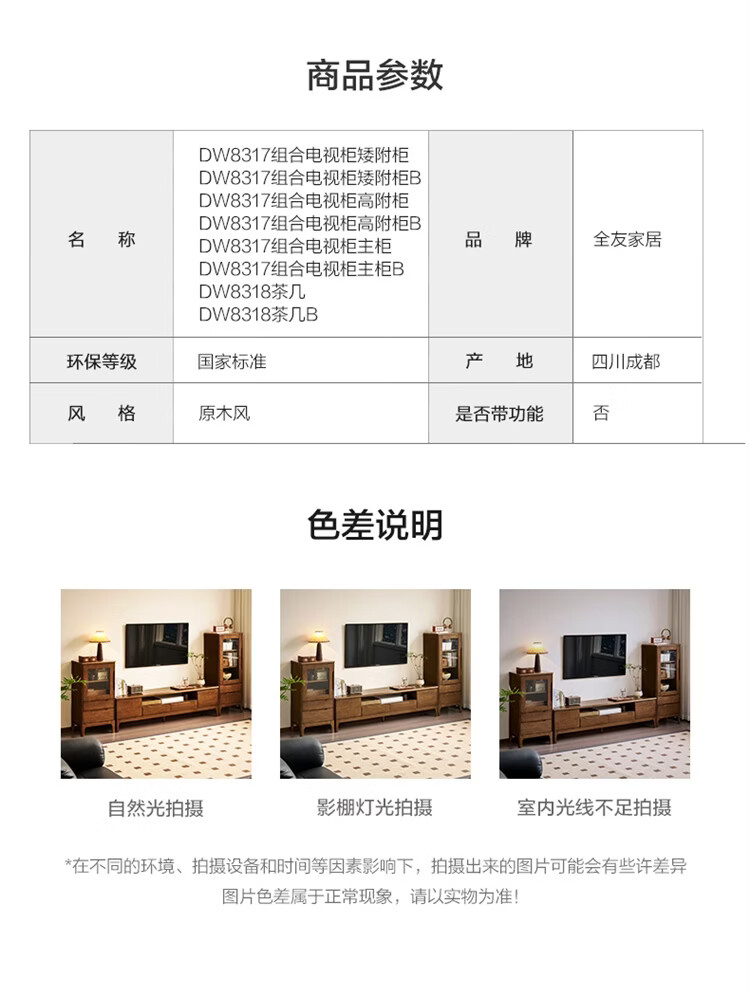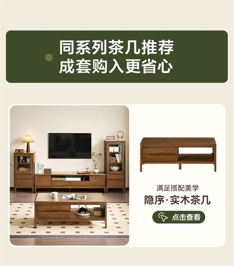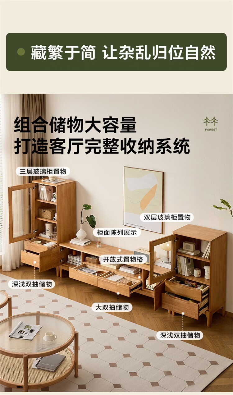全友家居原木风实木家具客厅电视柜沙发边柜组合储物矮柜收纳展示柜 【浅柚色 | 橡胶木】茶几+电视柜主柜+矮附柜+高附柜