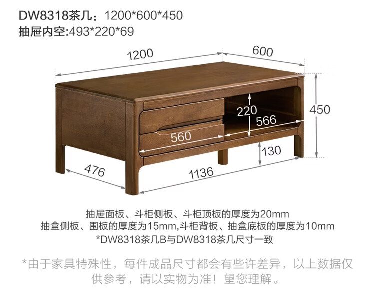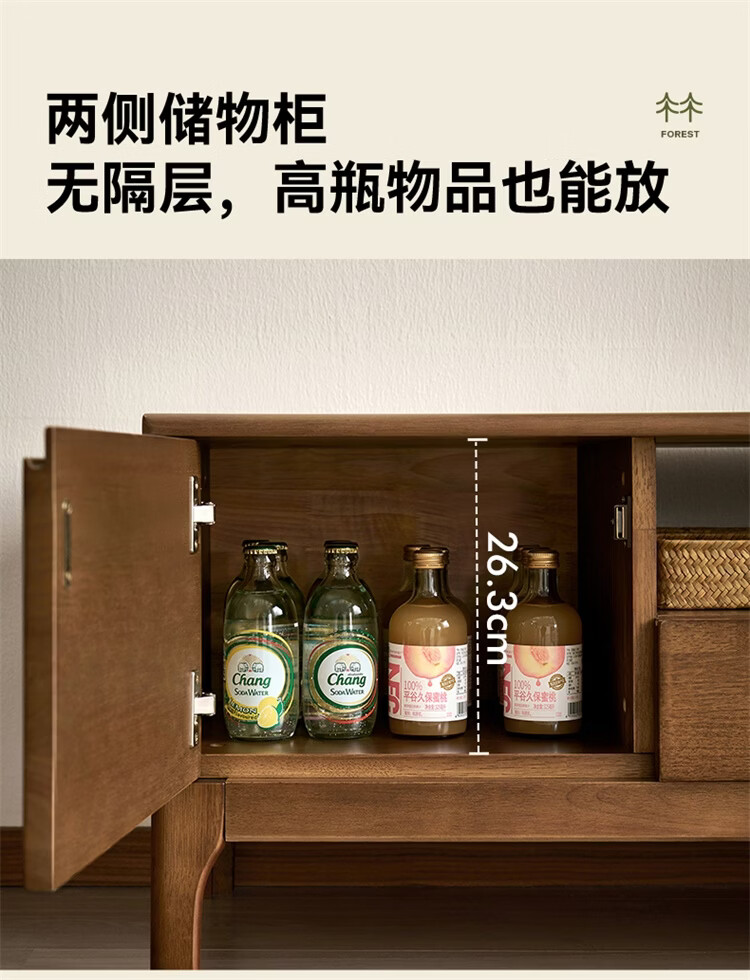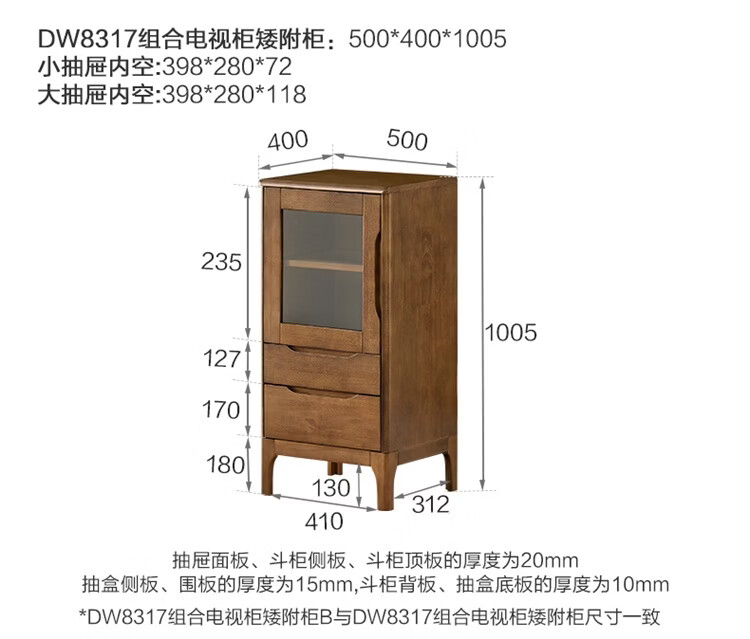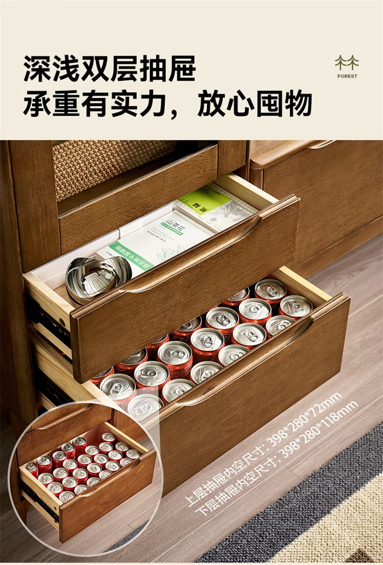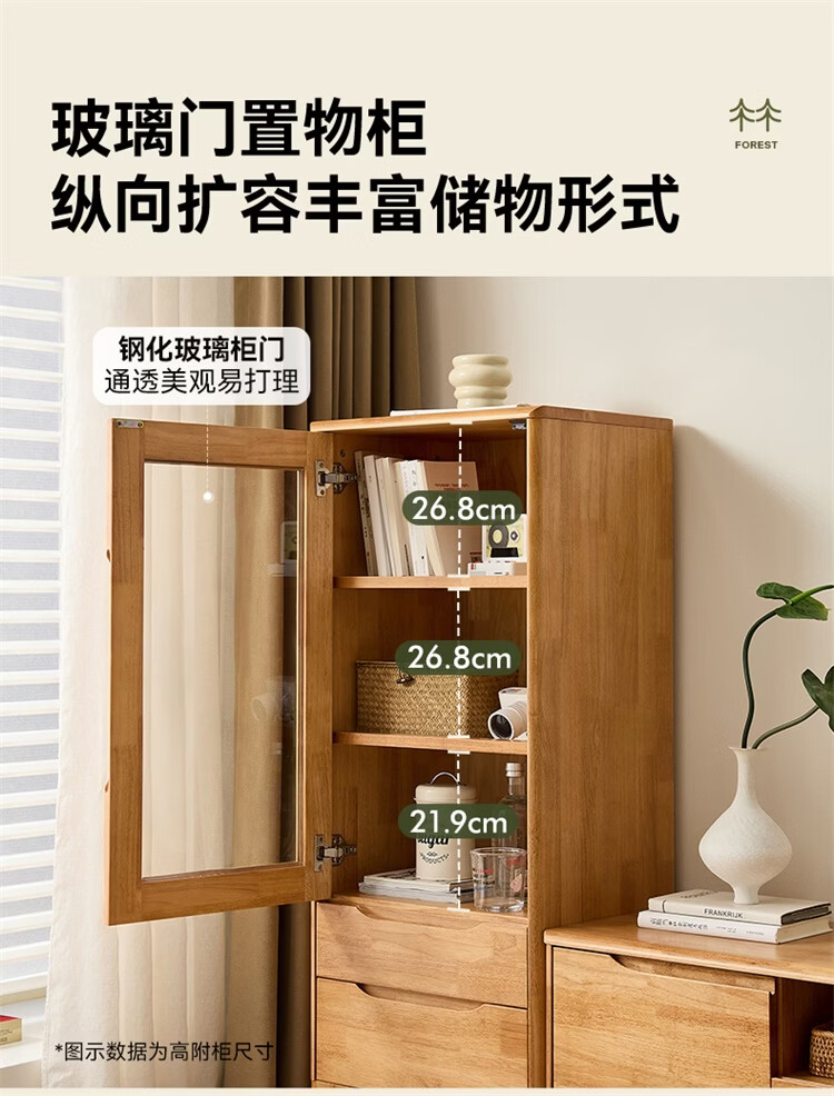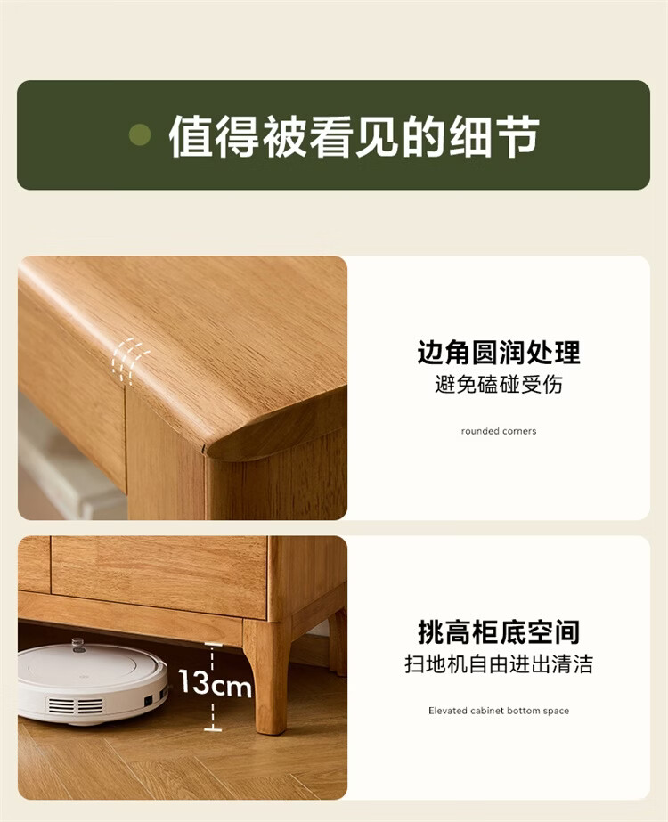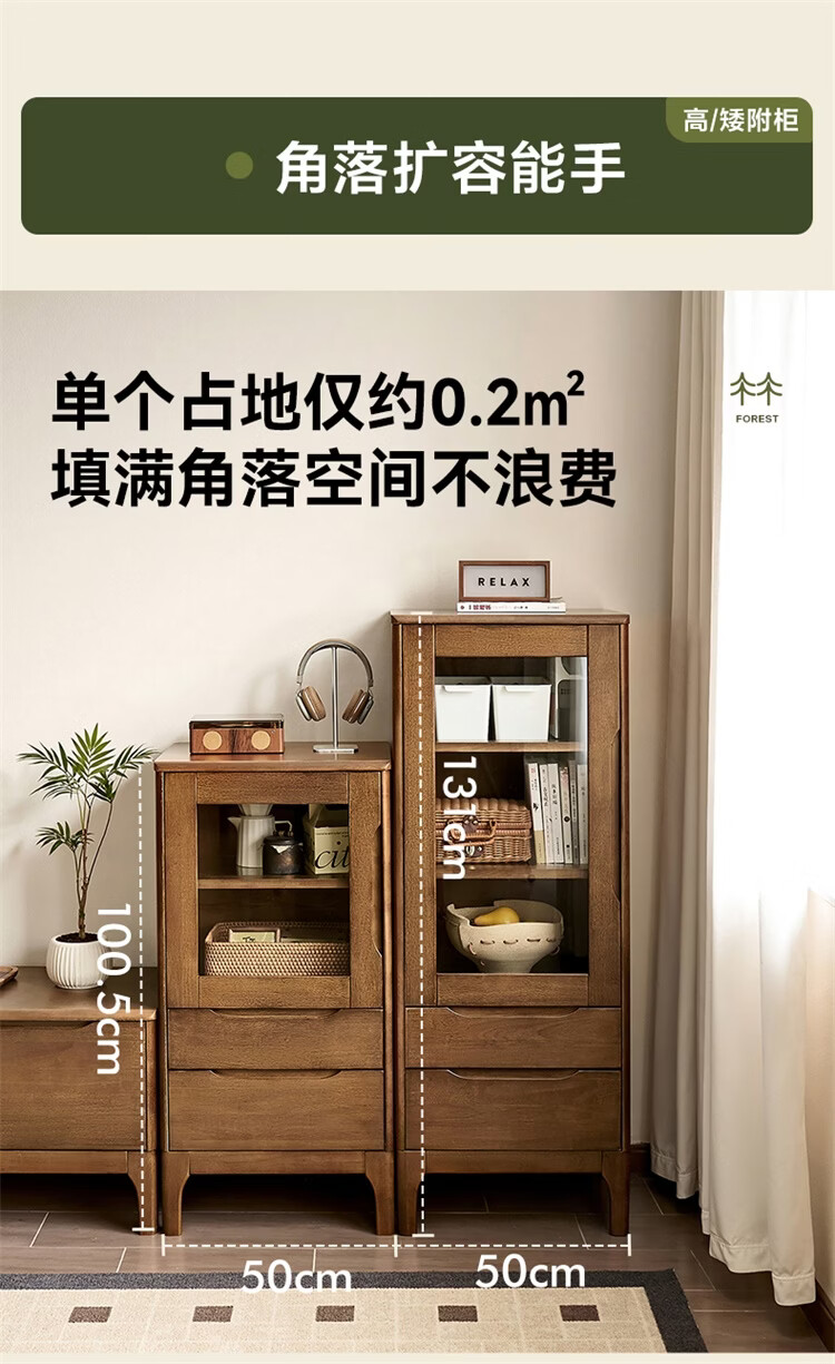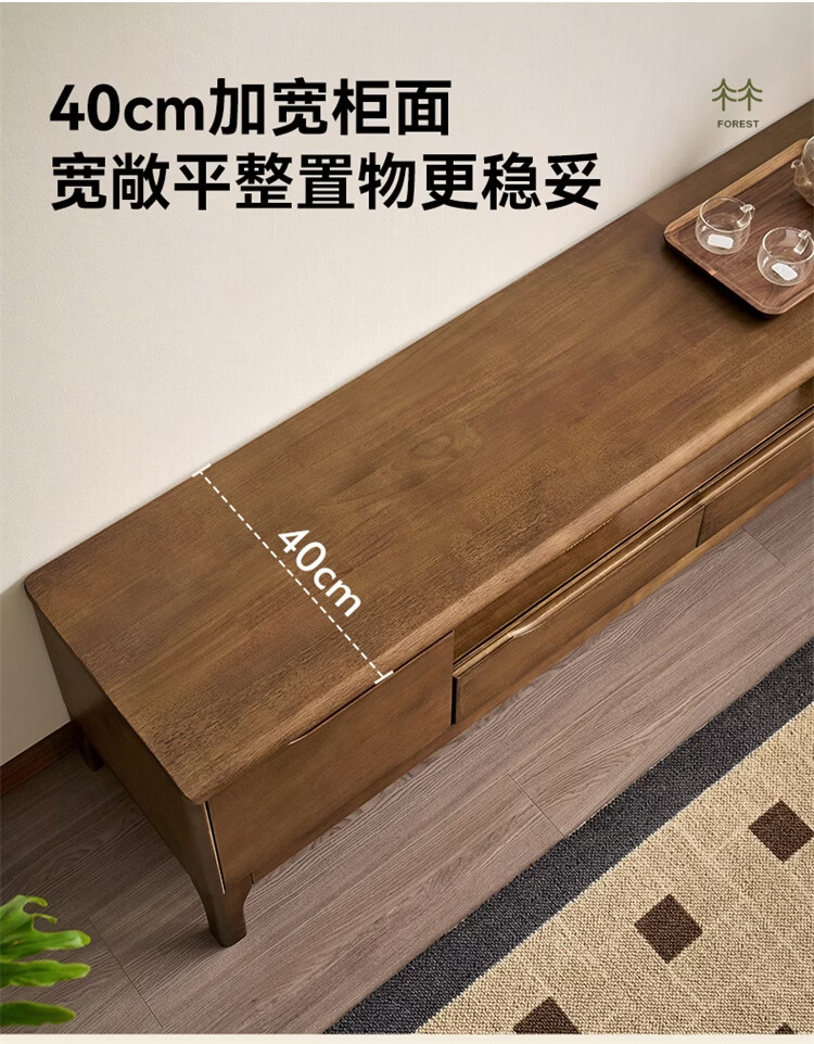 全友家居原木风实木家具客厅电视柜沙发边柜组合储物矮柜收纳展示柜 【浅柚色 | 橡胶木】茶几+电视柜主柜+矮附柜+高附柜