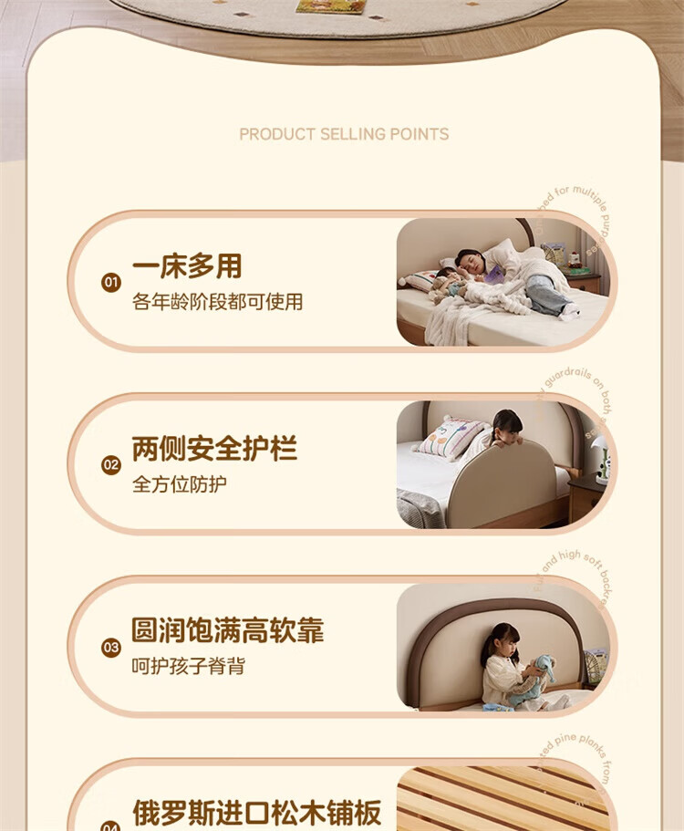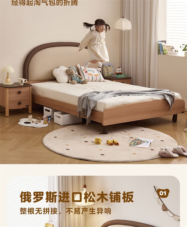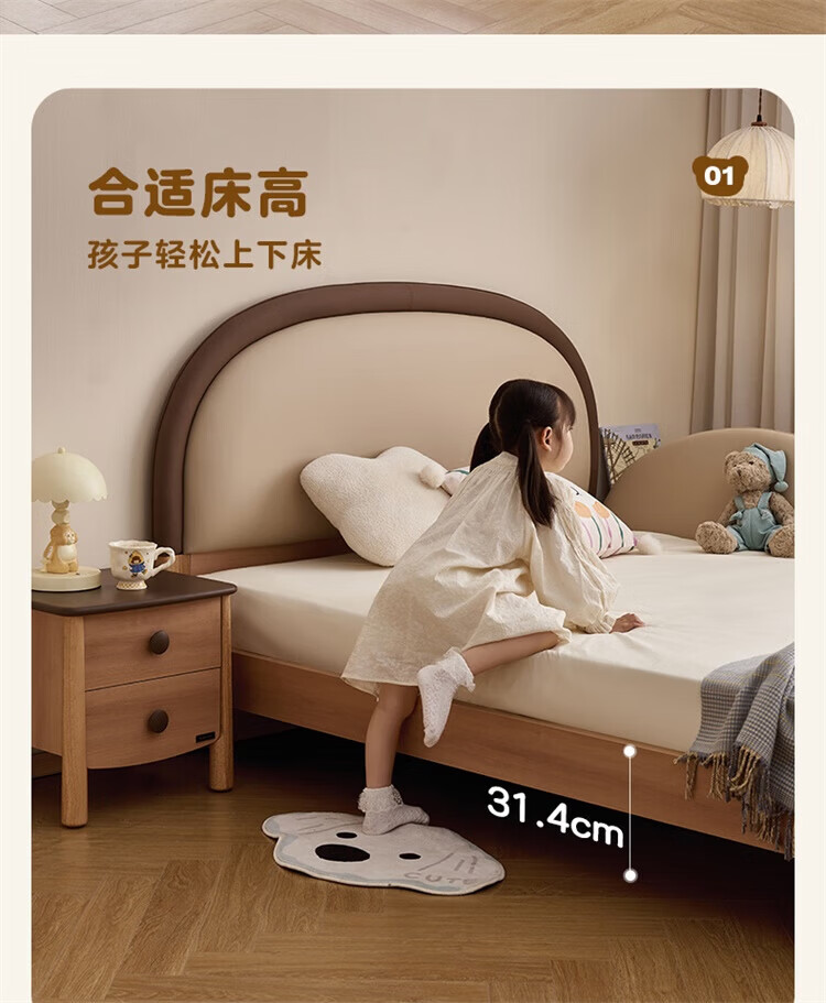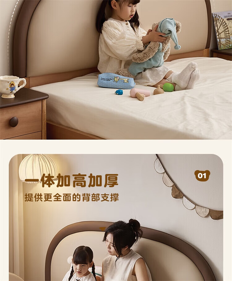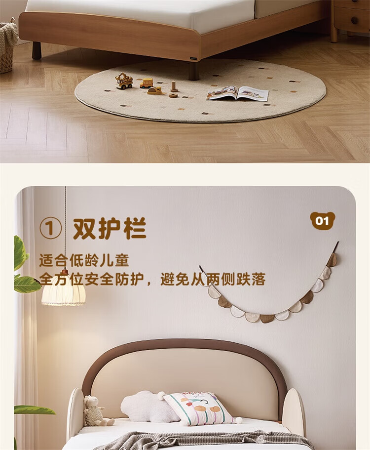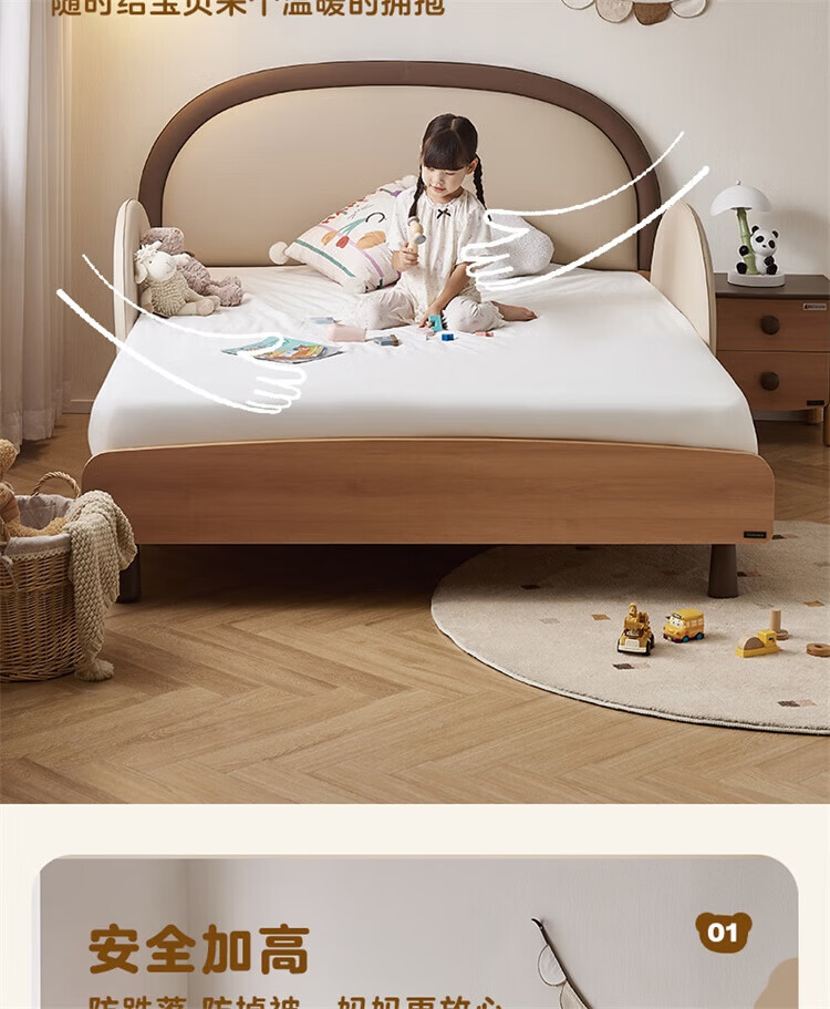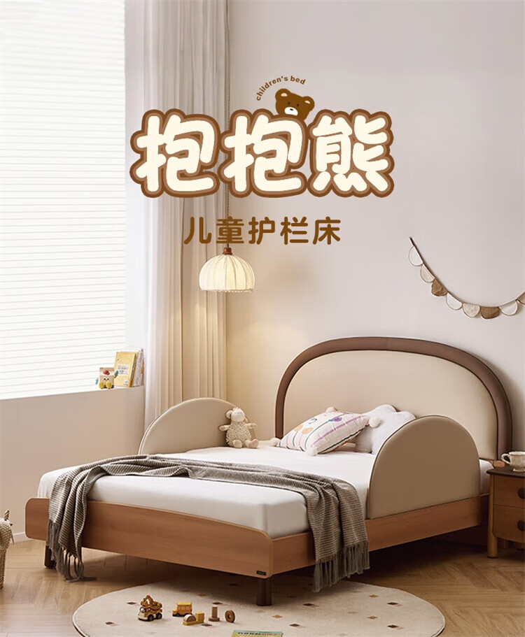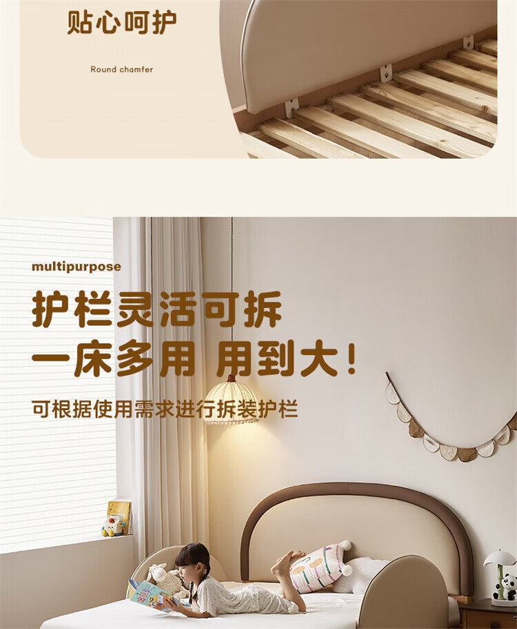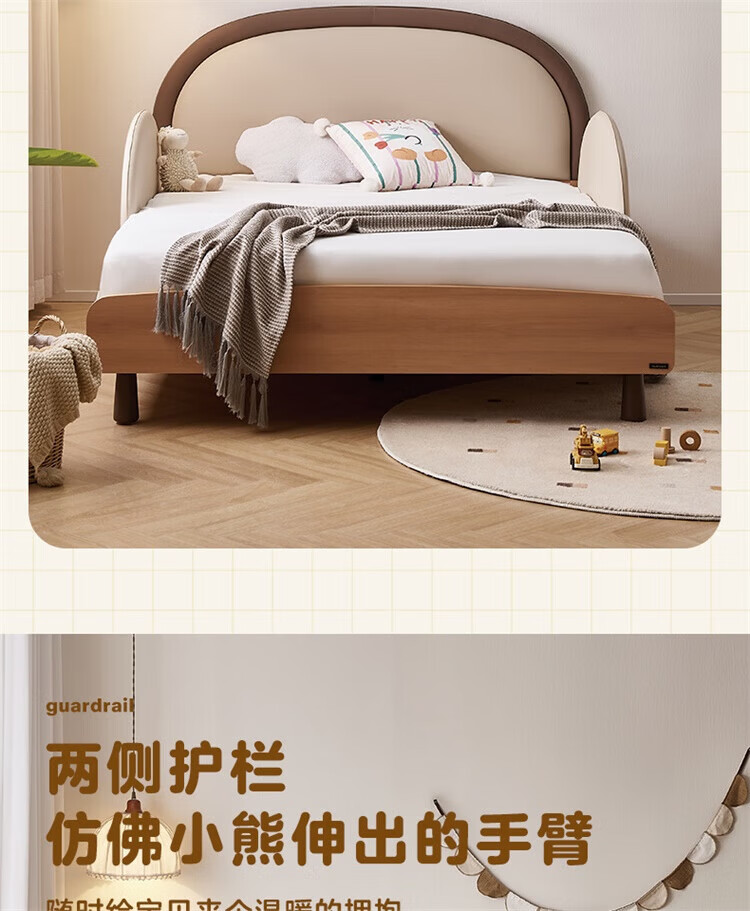 全友(QUANU)【迷瞪清仓货盘】儿童软包床次卧室单人小床带护栏女孩学生高脚床 儿童床 1.5米
