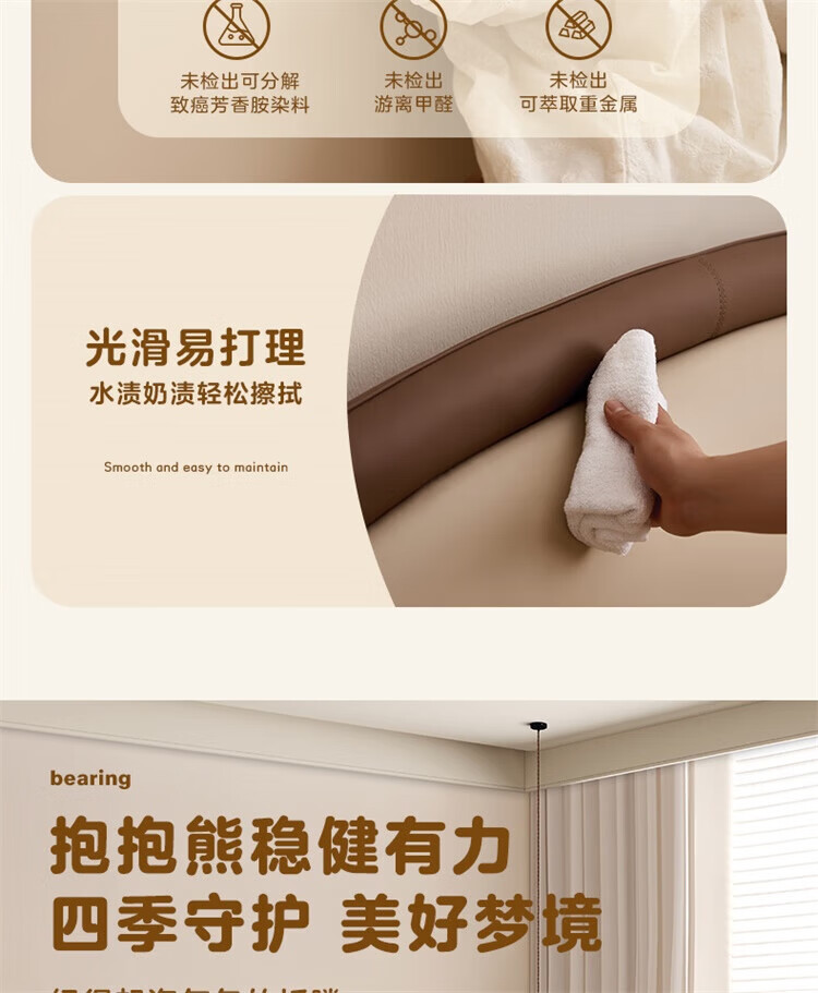 CBD家居现代简约真皮软包床双人主卧大床奶油风婚床头层牛皮甜心悬浮 甜心悬浮-奶油白单床 卷帘排骨架 1500*2000