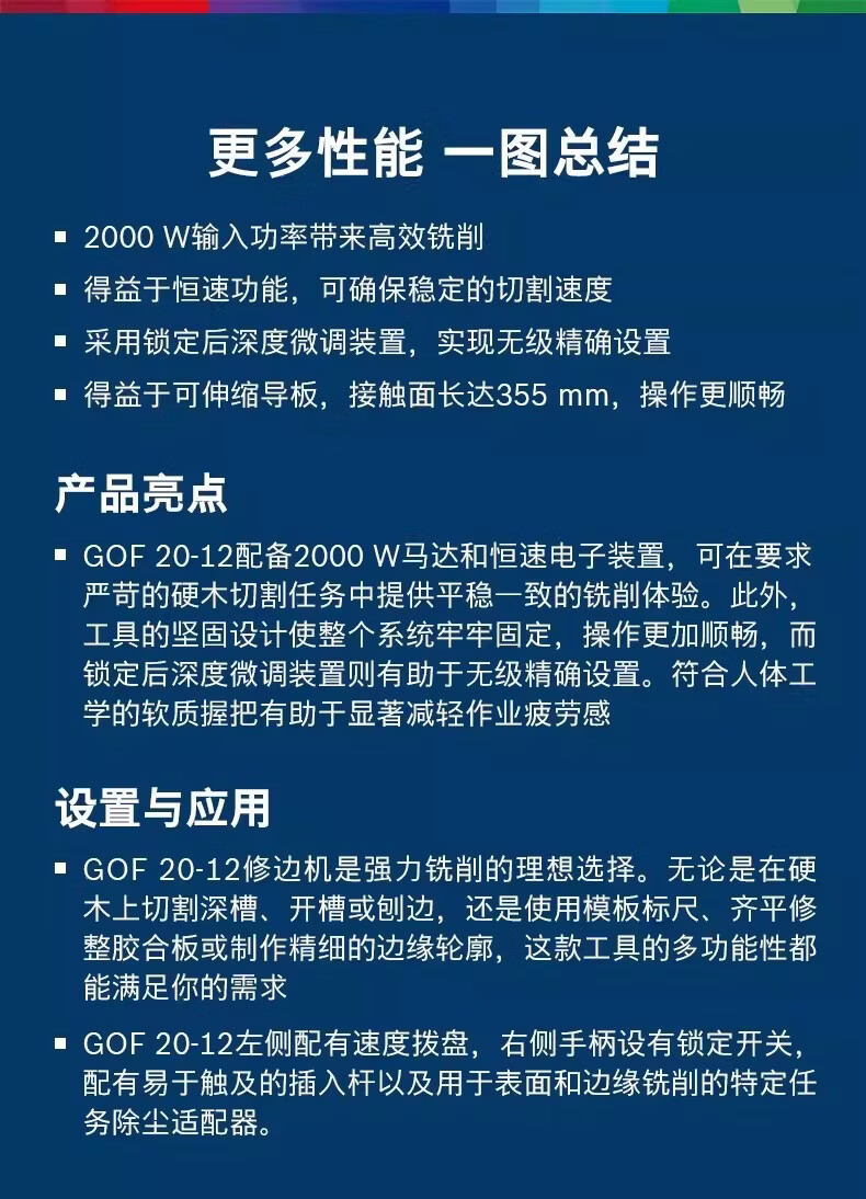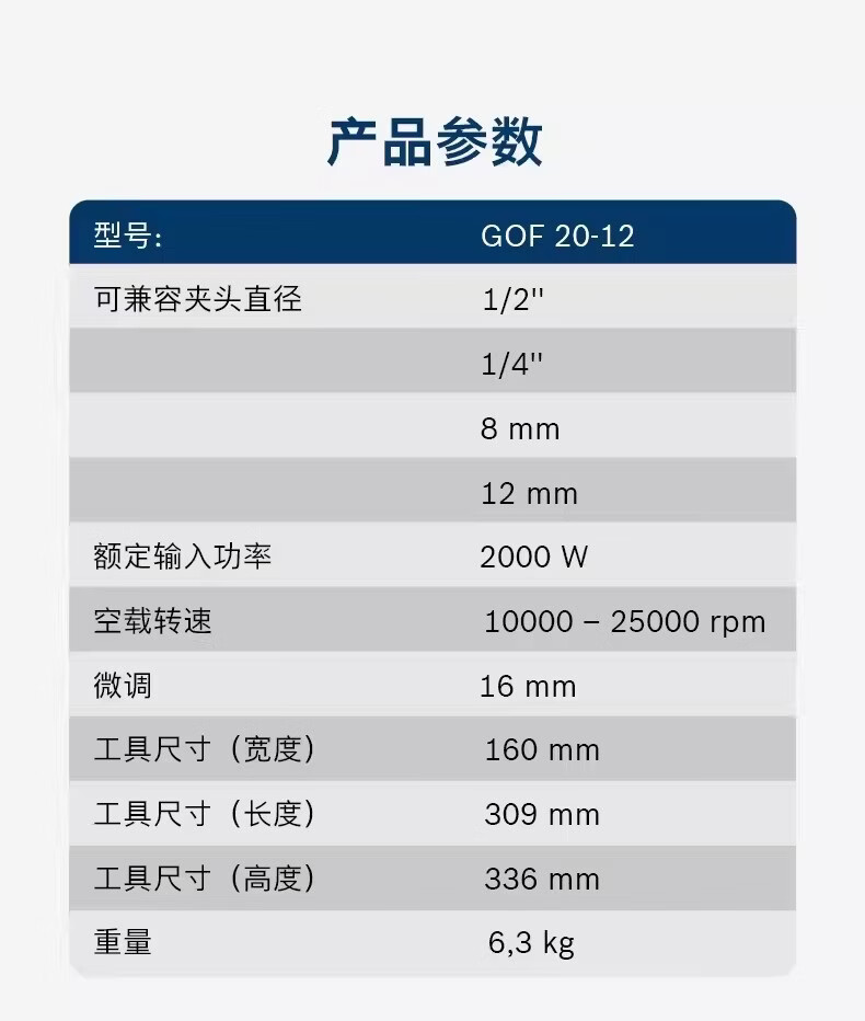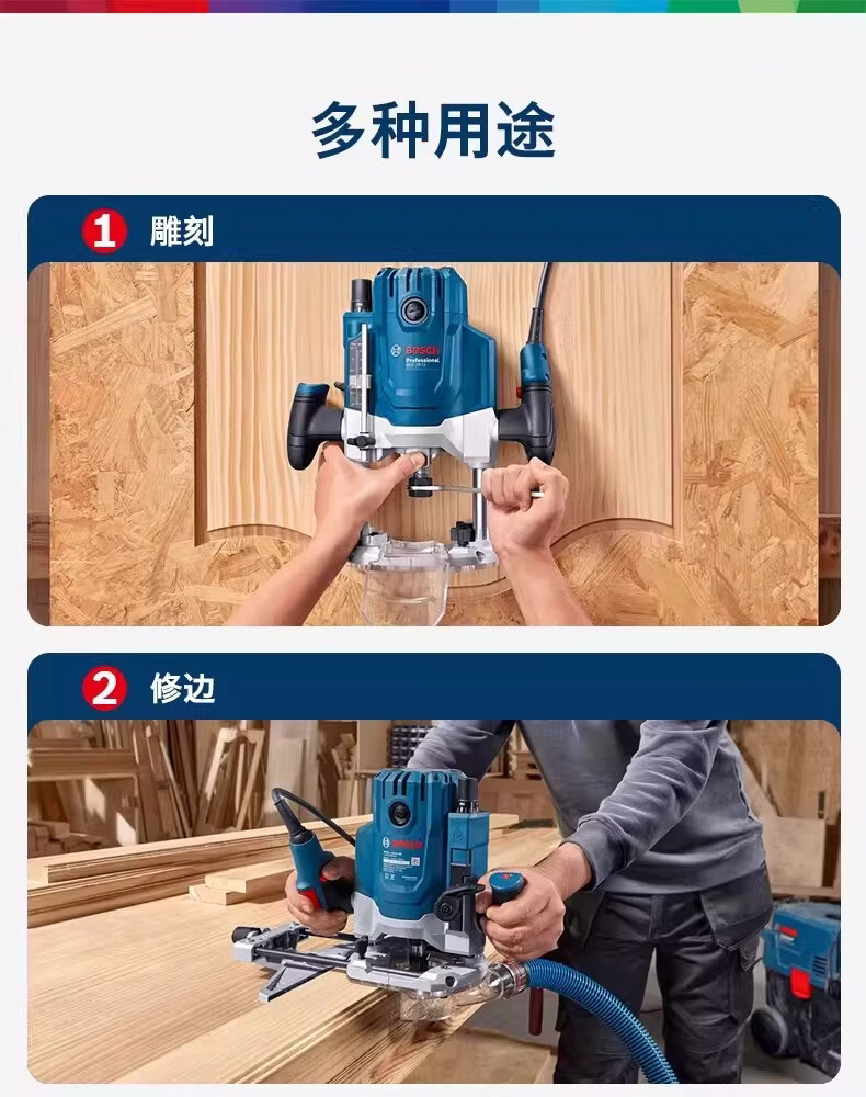 博世(BOSCH)木工雕刻机二合一开槽神器大锣机电木铣刀GOF20-12博士修边机 GOF20-12【官方标配】