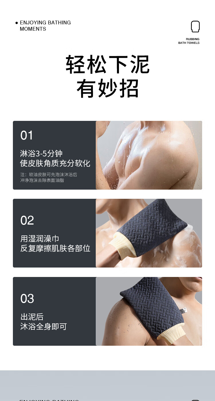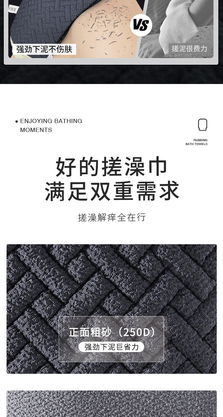 Creative art搓澡巾男士专用搓澡神器 洗澡巾搓澡神器搓泥搓澡手套粗砂7A抗菌
