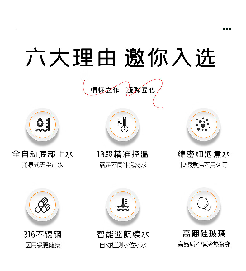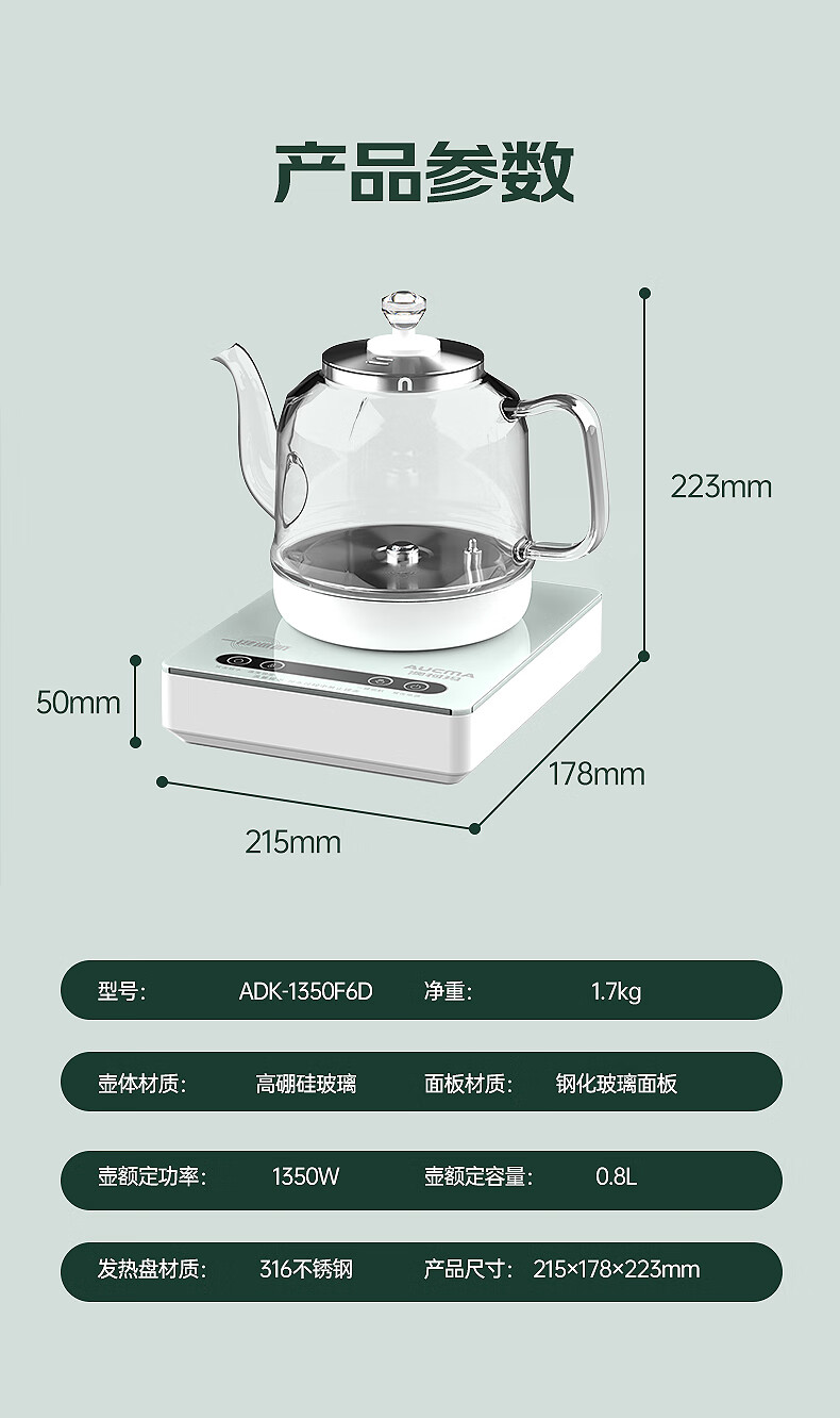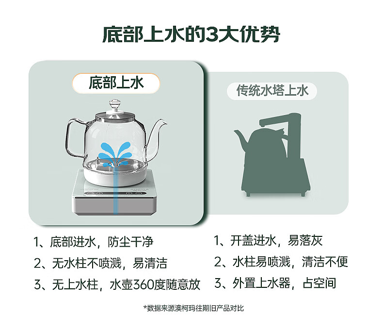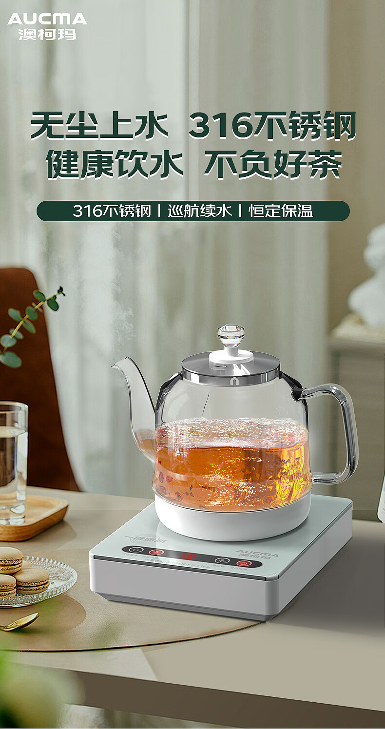 澳柯玛(AUCMA)全自动上水烧水壶 单壶底部上水一体电热水壶 316不锈钢0.8L小容量恒温烧水器抽水电茶炉茶具F6