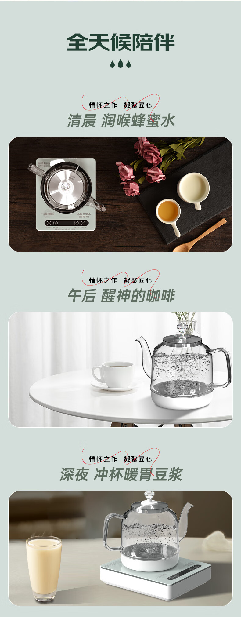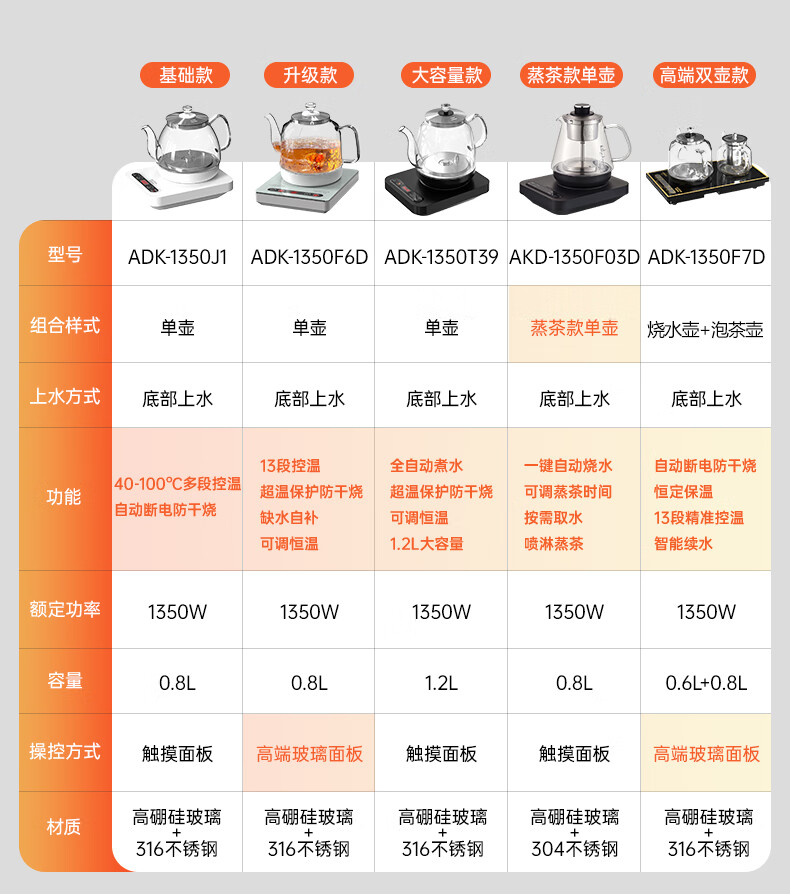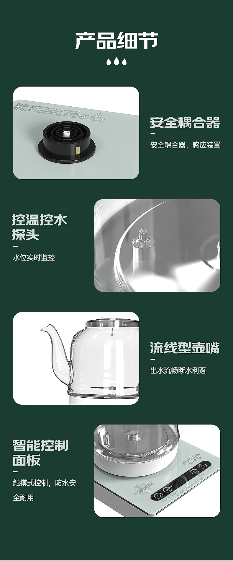 澳柯玛(AUCMA)全自动上水烧水壶 单壶底部上水一体电热水壶 316不锈钢0.8L小容量恒温烧水器抽水电茶炉茶具F6